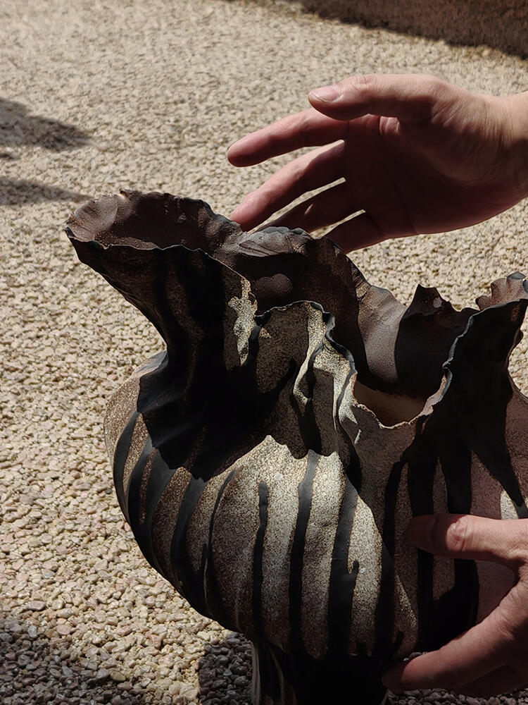 The surface, alive with subtle textures and tones, evokes the impressionist spirit—where boundaries dissolve, and color becomes movement. Each curve feels organic, as if grown rather than shaped, transforming clay into a living memory of nature’s rhythm.
