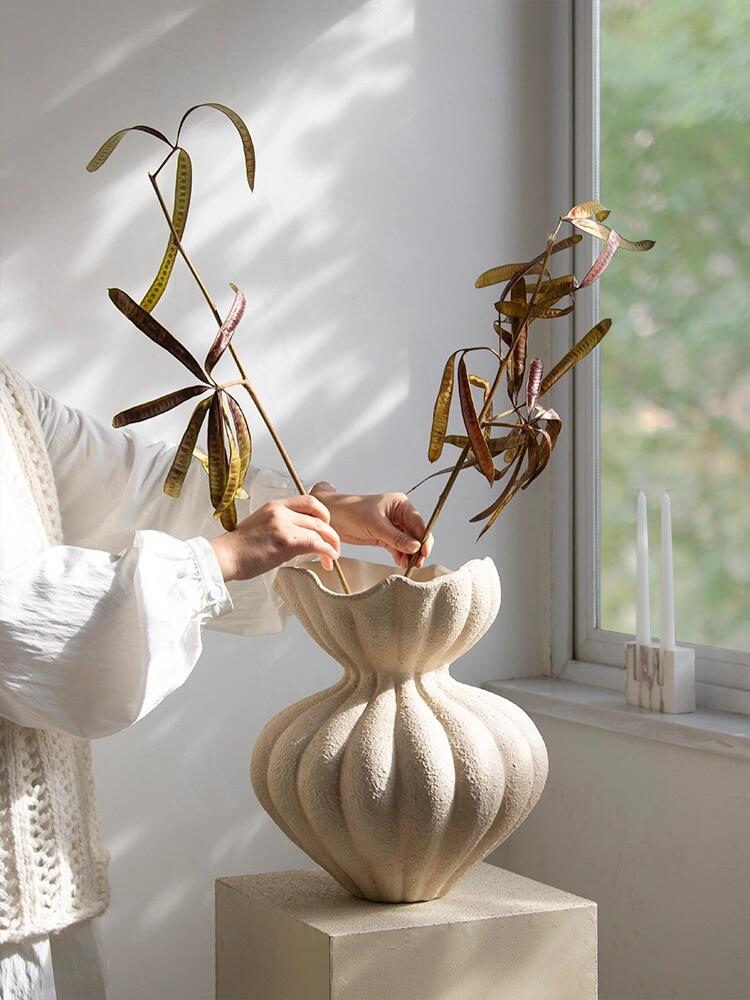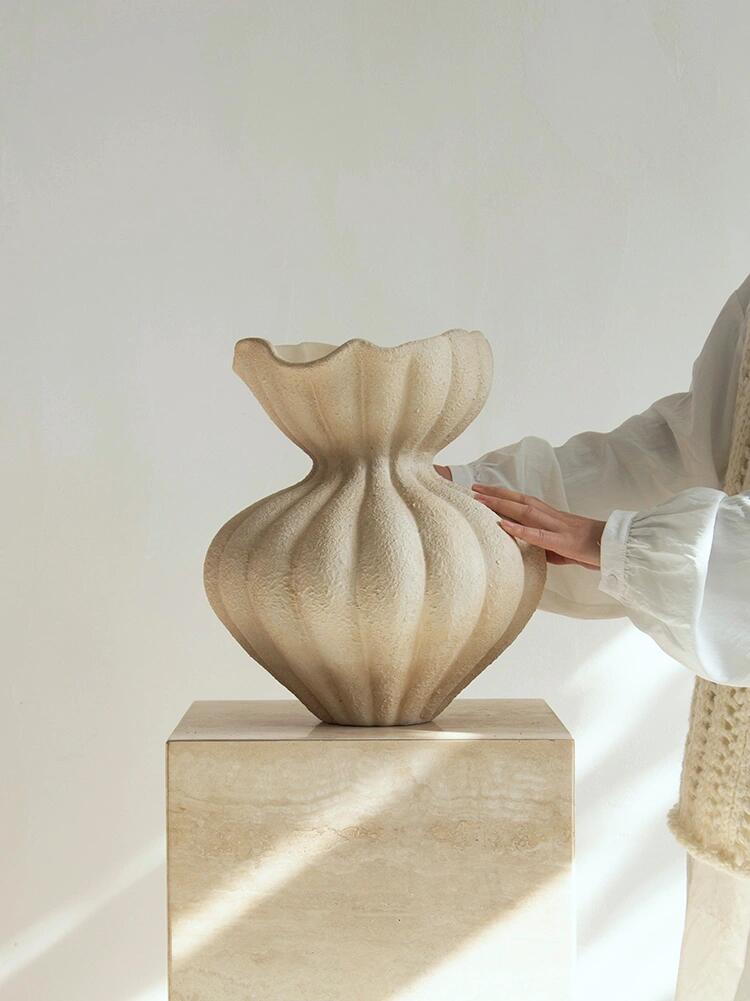 The neutral hue harmonizes effortlessly with any interior, while the sculpted surface plays with light and shadow, creating a quiet rhythm of depth and movement. Perfect for lush bouquets or minimalist stems, Botticelli’s Hem elevates every arrangement into an artful display.