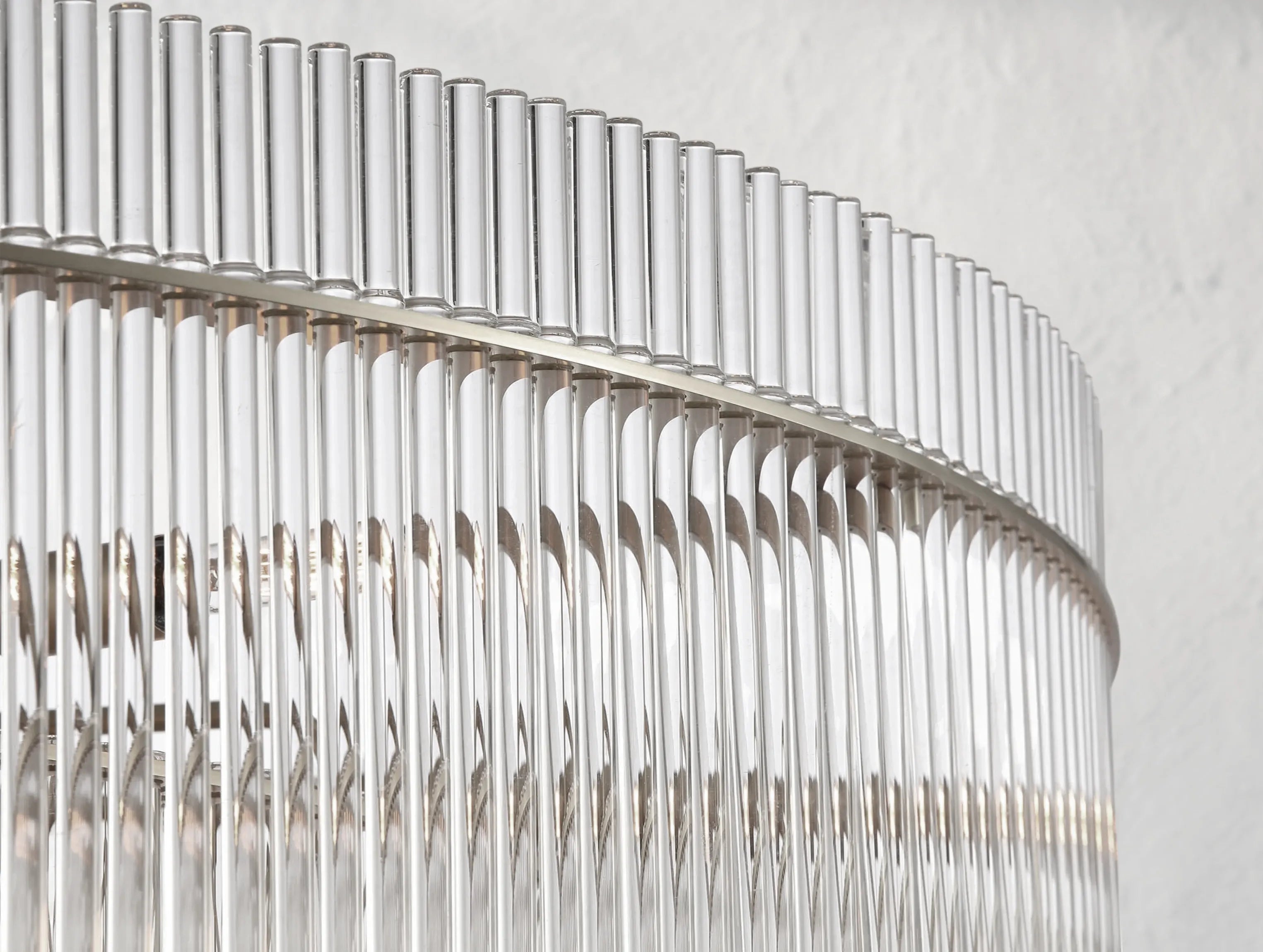 An icon of symmetry and light. The Astrielle Chandelier by Ardenel is crafted from tiered concentric rings of precision-cut fluted glass, radiating in perfect harmony around a warm brass frame. Light dances through the cascading layers like falling starlight, filling grand interiors with sculptural brilliance. Available in three statement sizes, it is designed to transform foyers, dining halls, and ballrooms into luminous showcases of form and refinement.