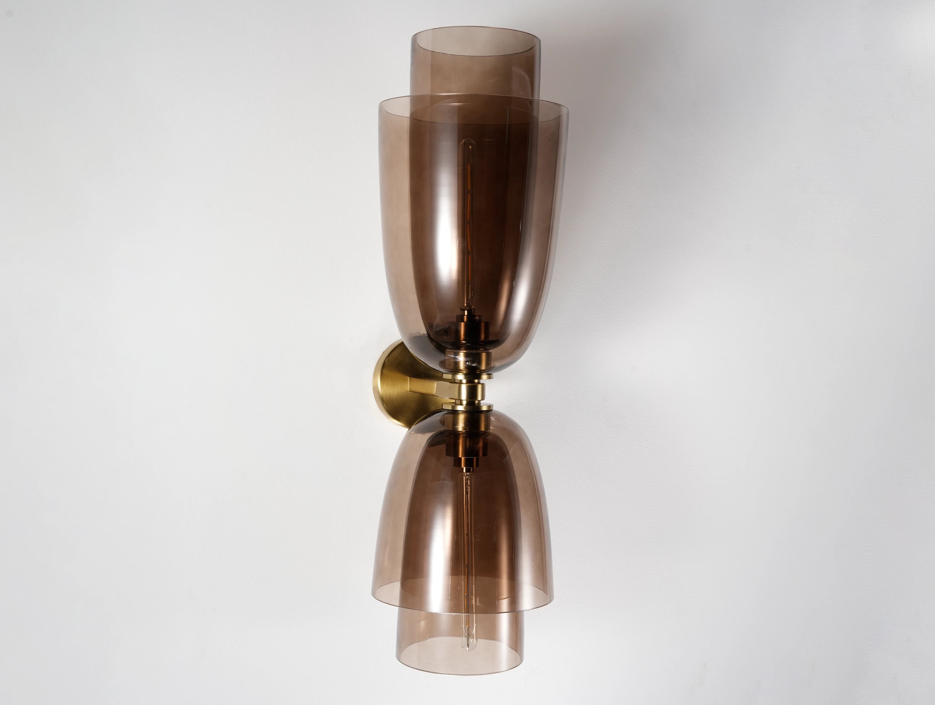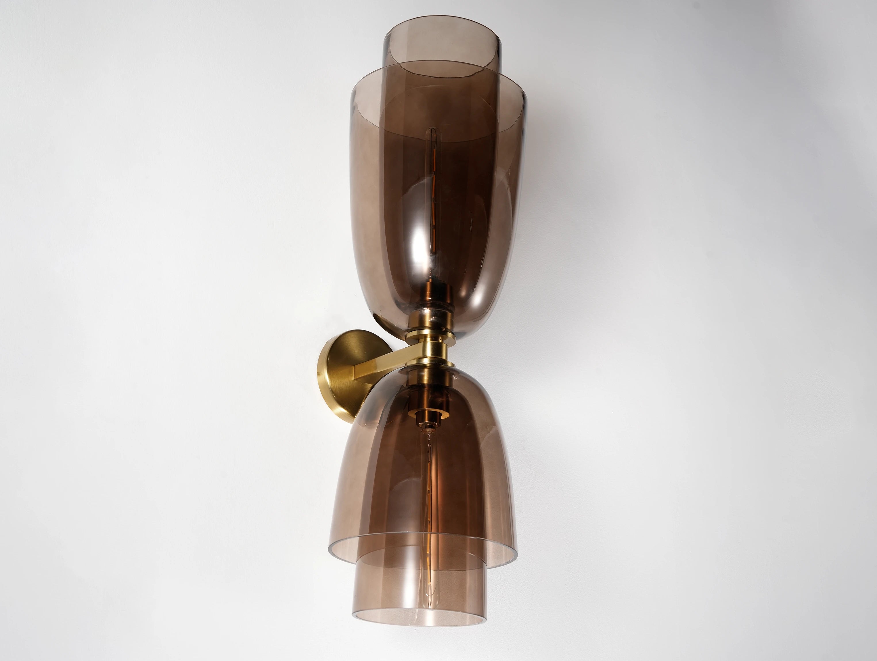Inspired by late 19th-century Scandinavian design, the Blum Double Glass Sconce by Ardenel brings the serenity of nature indoors. Two concentric domes of molded glass, flame-polished by hand, echo the petals of a flower in bloom. Balanced atop a sleek hand-finished steel frame, this sculptural piece glows with warmth and refinement — a subtle nod to modernist proportion and Nordic poetics.