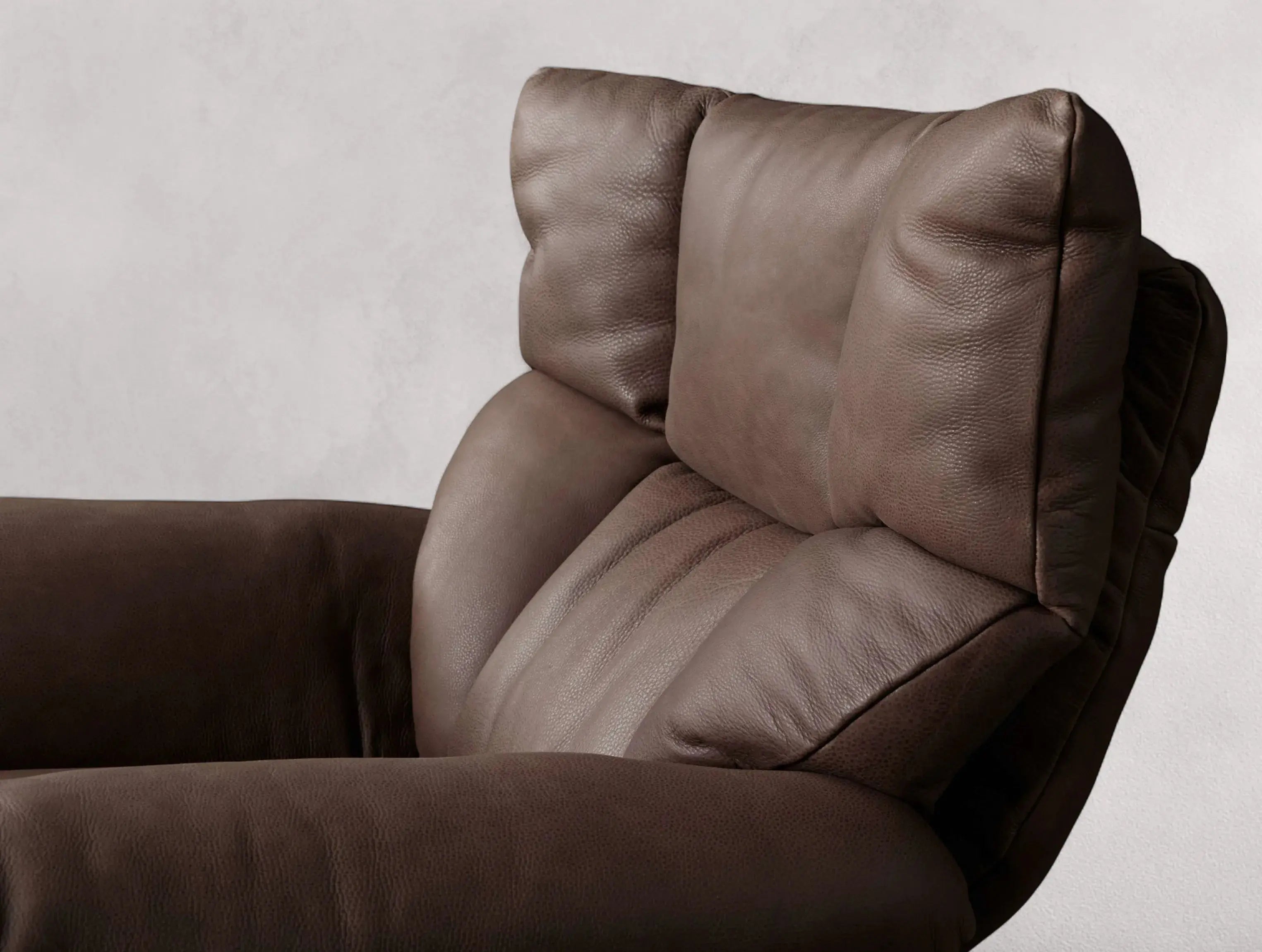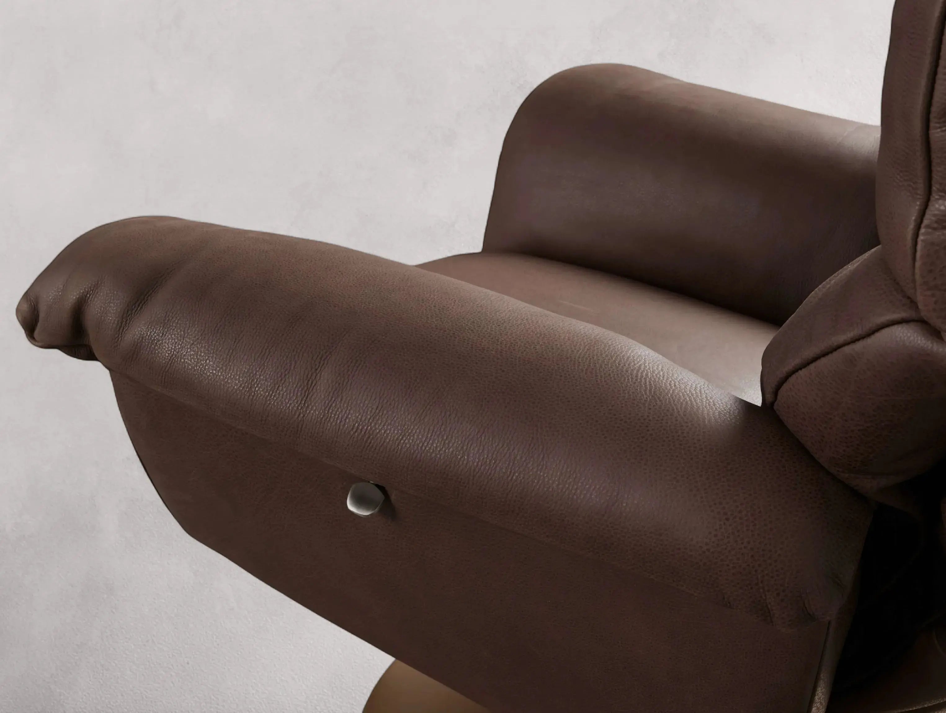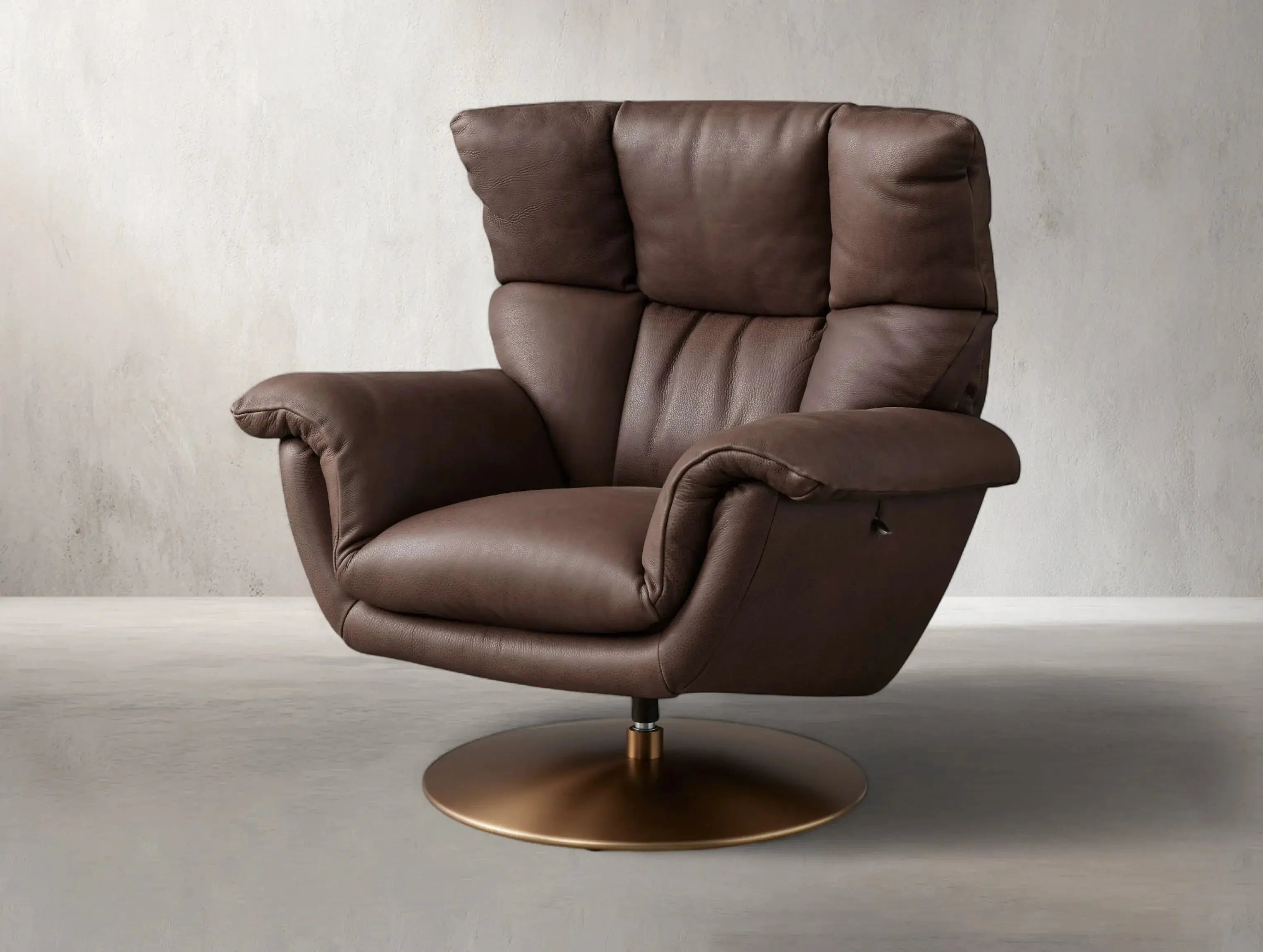 Combining timeless comfort with sleek motion, this leather recliner features a supportive silhouette and smooth 360-degree swivel. Upholstered in supple top-grain leather, it’s grounded by a low-profile steel base and reclines easily with a side lever—making it the perfect balance of form and function.