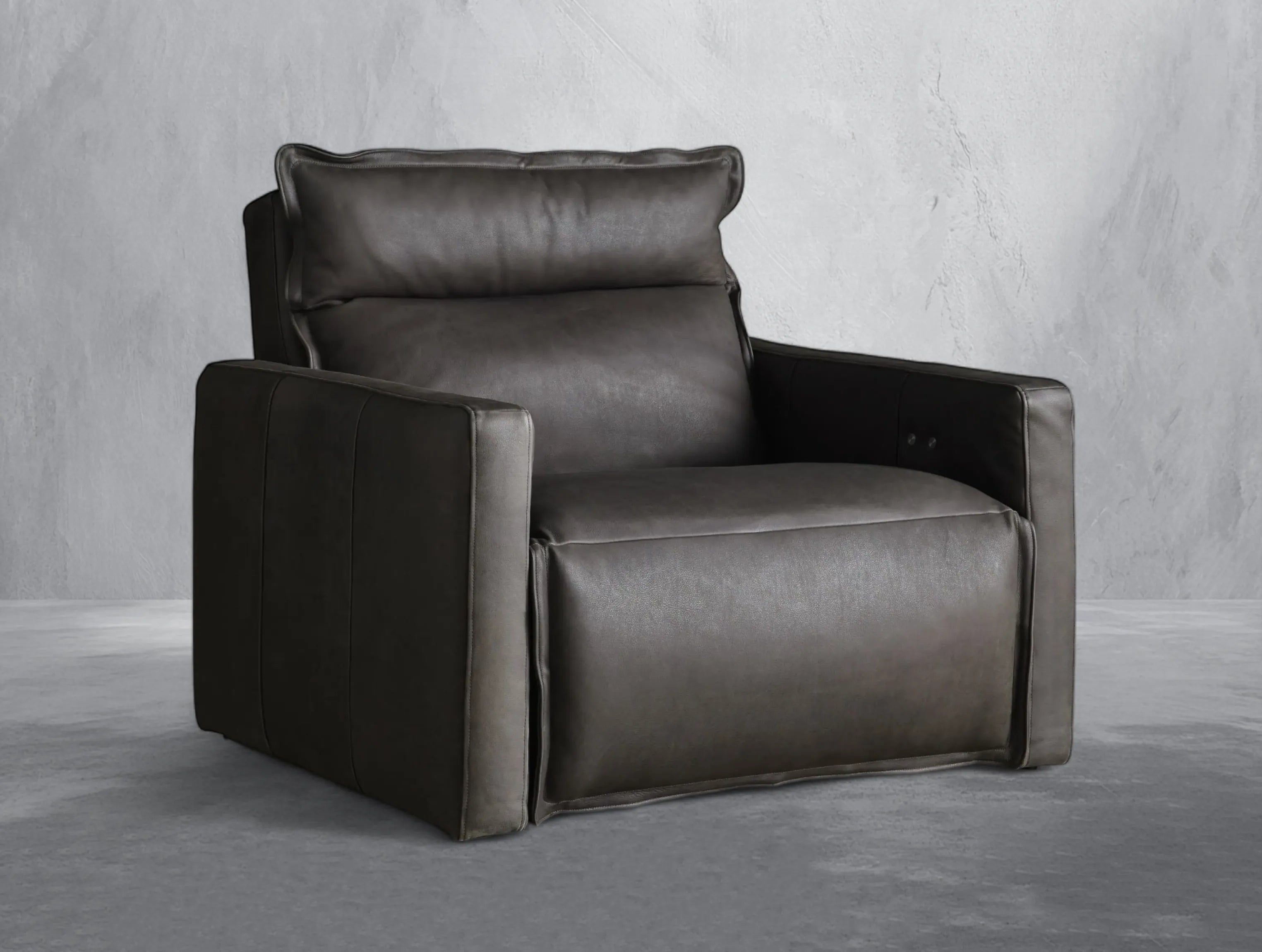 Wrapped in rich, artisan-finished leather, this power recliner brings a casual elegance to any living space. The soft, sink-into cushioning is finished with flanged edges for a relaxed, tailored look, while two-button controls offer smooth, motorized reclining. Built for comfort and crafted to last, it’s a timeless place to unwind.