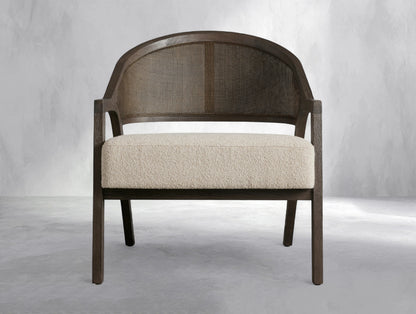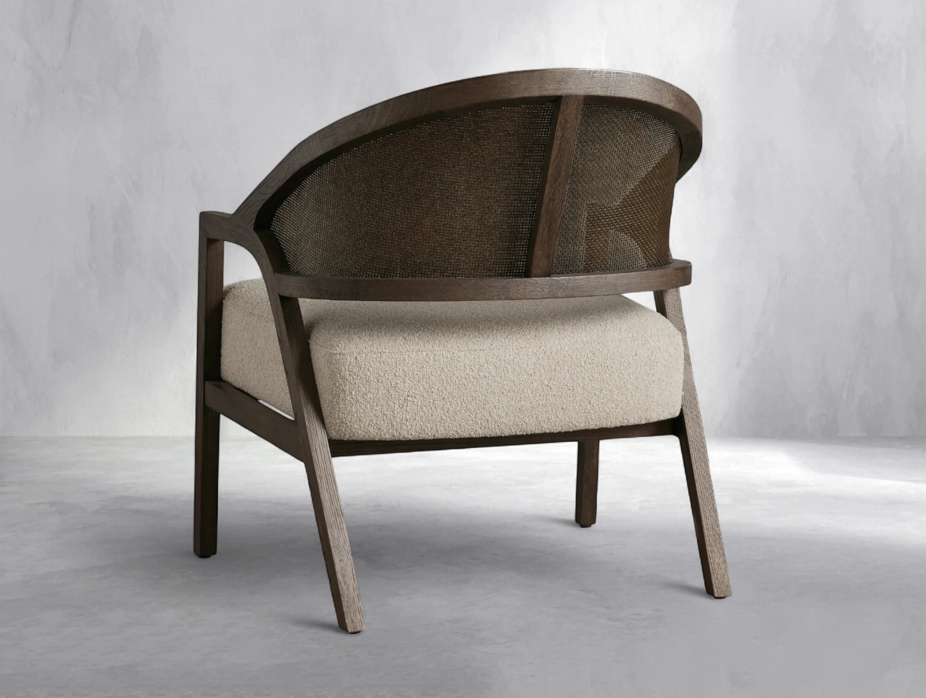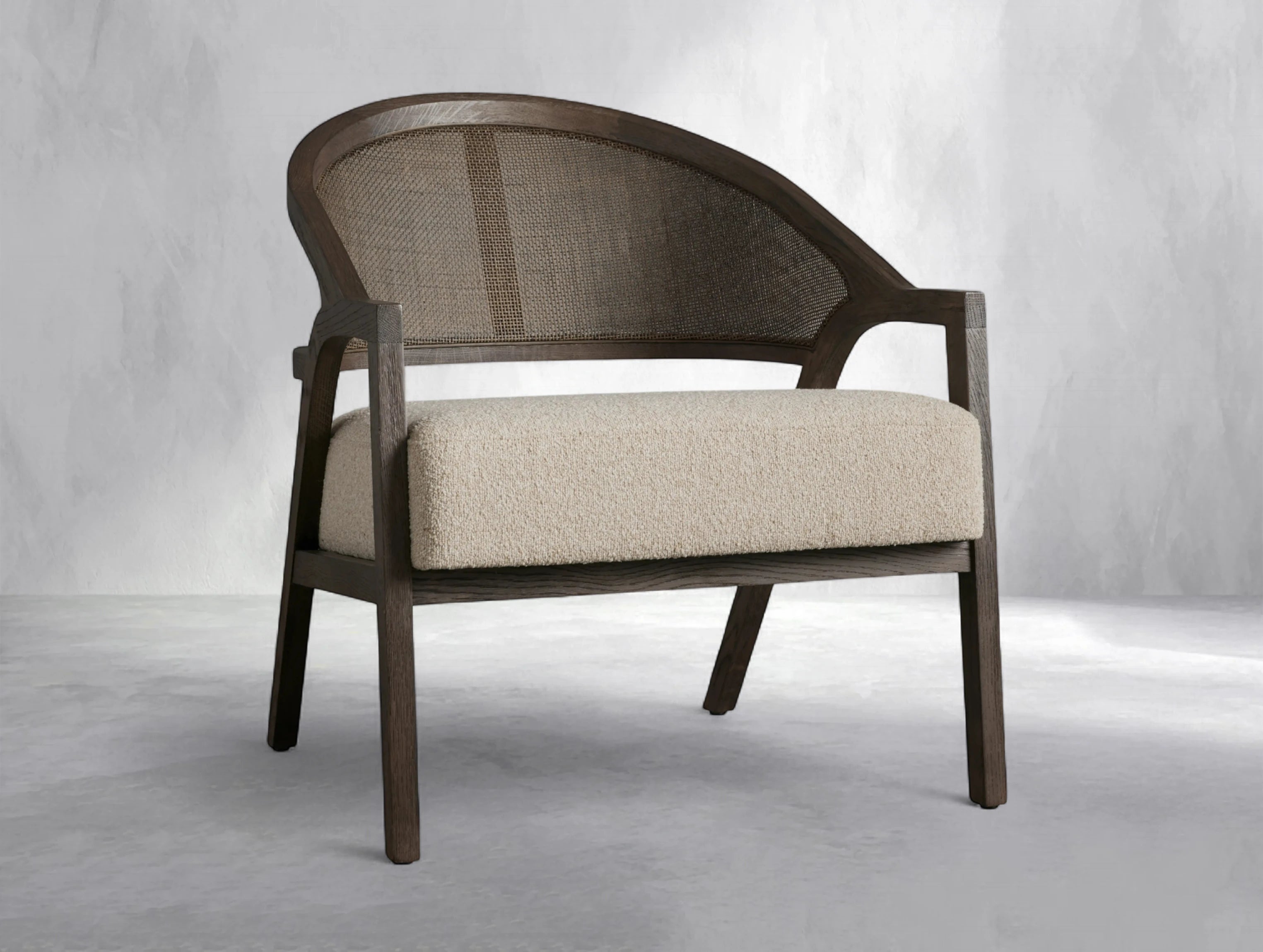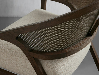 The Emily Chair combines timeless French charm with mid-century sophistication. Featuring a gently curved back, rattan cane detailing, and elegantly flared legs, it brings warmth and texture to any space. A subtle lacquered sheen enhances the solid oak frame, while the plush upholstered seat ensures exceptional comfort for everyday living.