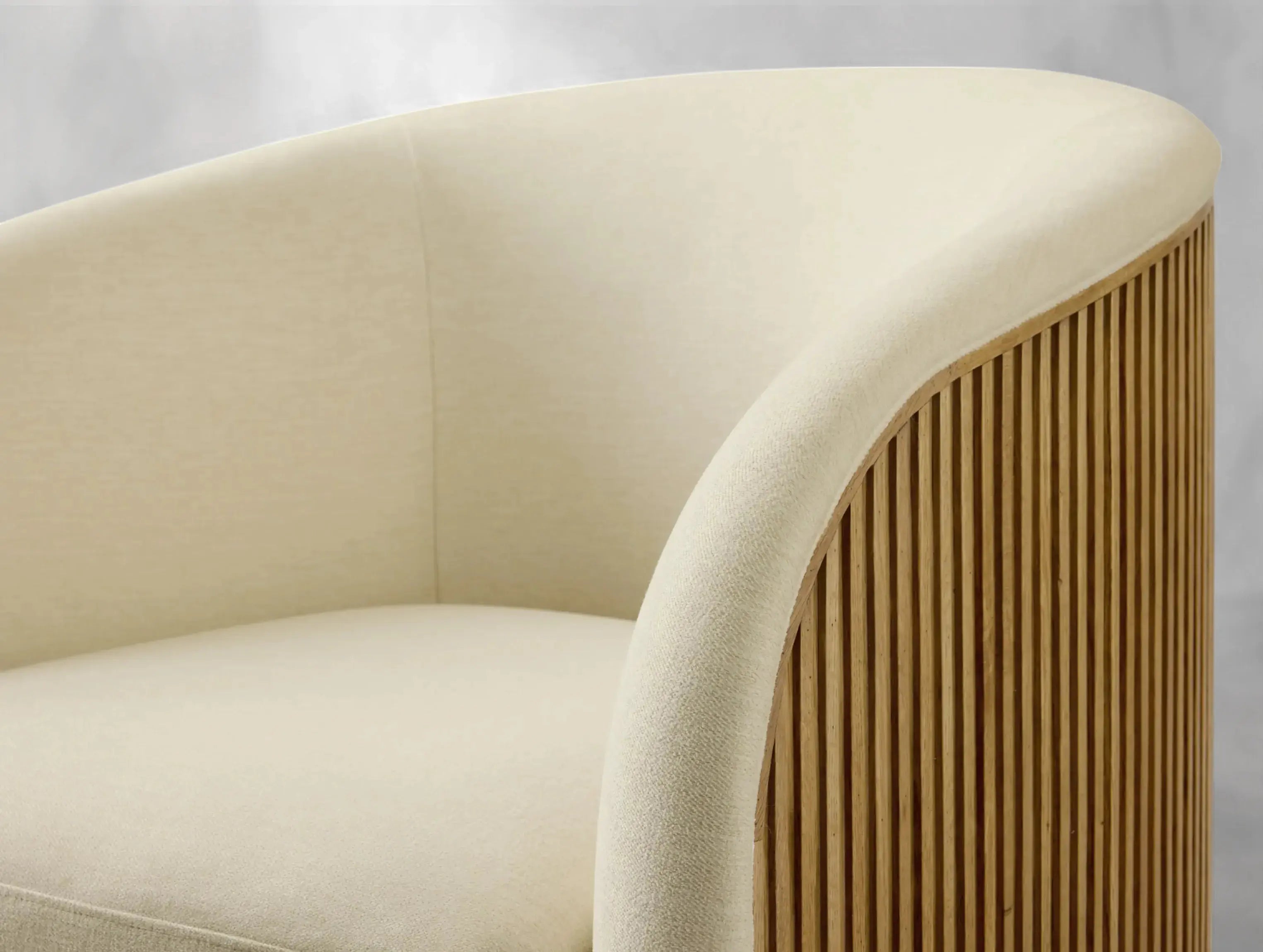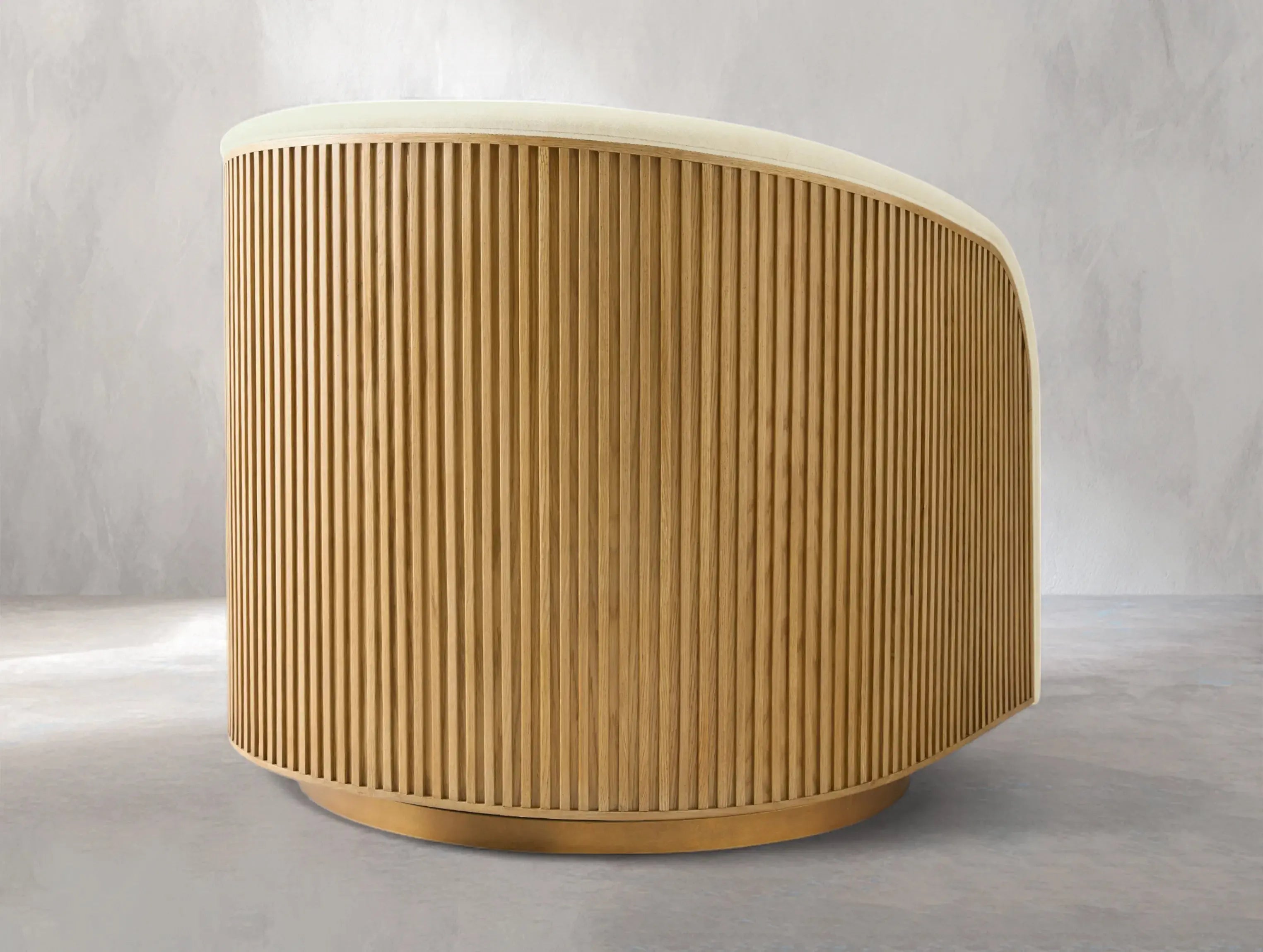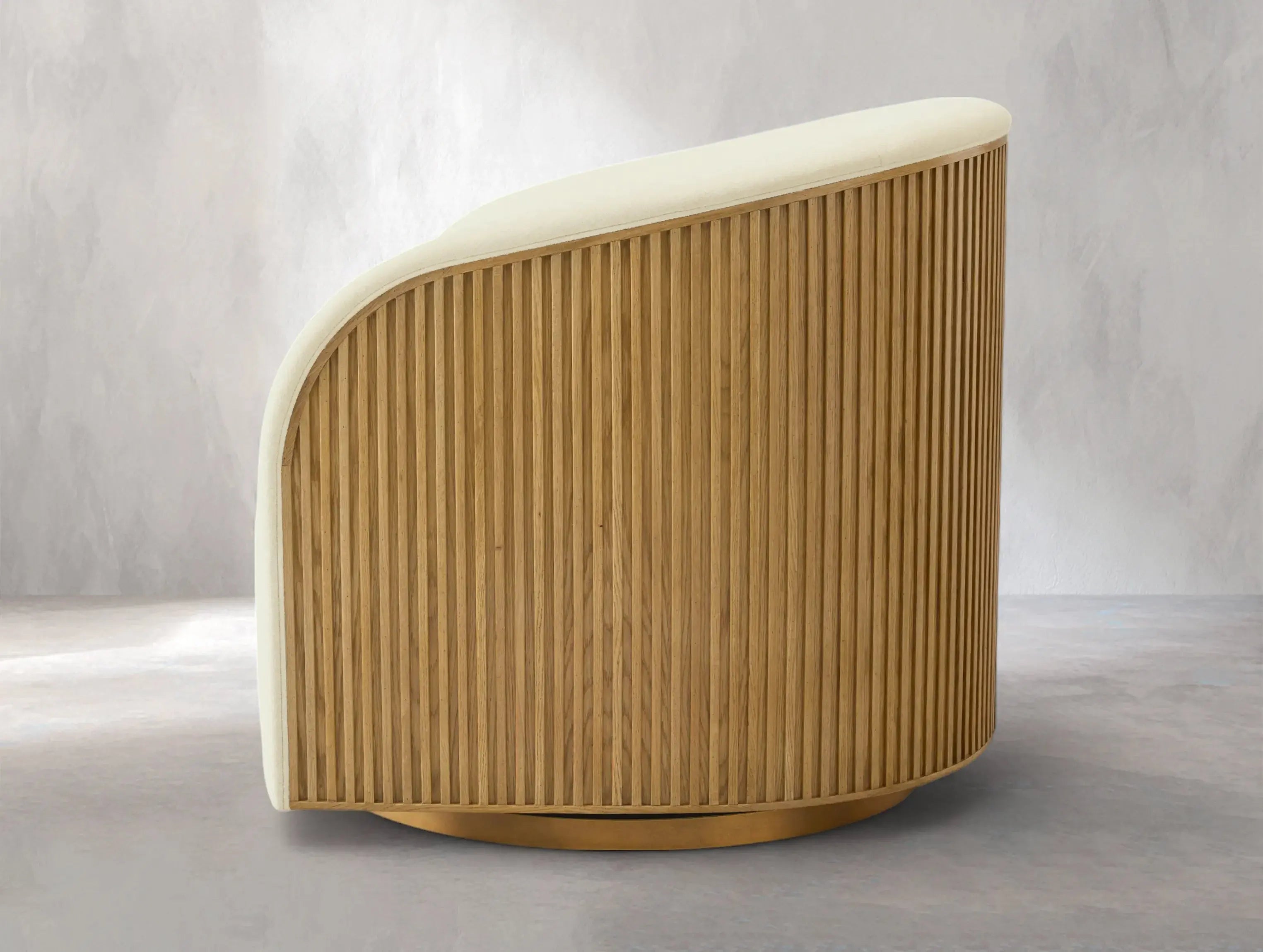 Blending artisan craftsmanship with modern comfort, this swivel chair from Ardenel brings character and sophistication to any space. Crafted from solid red or white oak with elegant reeded wood accents, it pairs rich textures with performance upholstery. A smooth 360-degree swivel base adds versatility, making it ideal for both relaxed lounging and stylish entertaining.