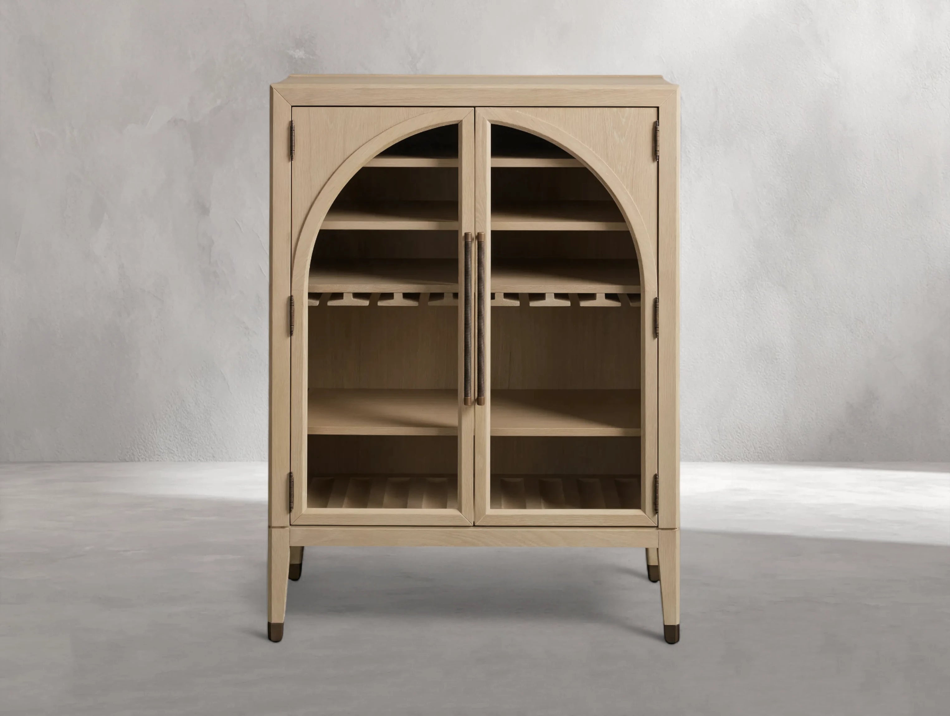 Handcrafted in Indonesia, it offers generous storage with adjustable shelves, stemware holders, and space for your favorite bottles. Brass-capped feet add a touch of elegance, while thoughtful details make it as functional as it is beautiful—ready to serve in any room.
