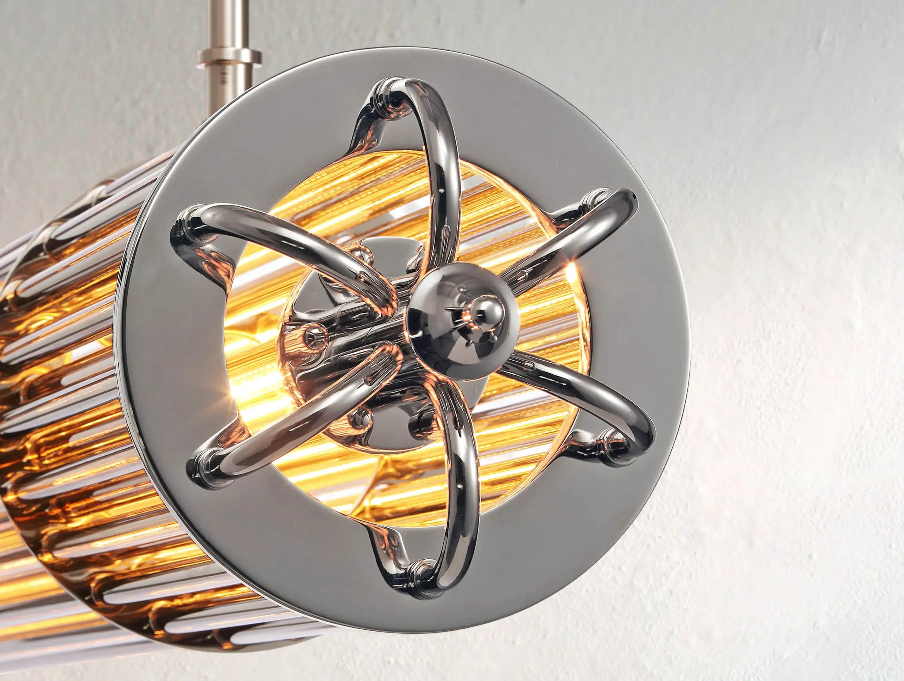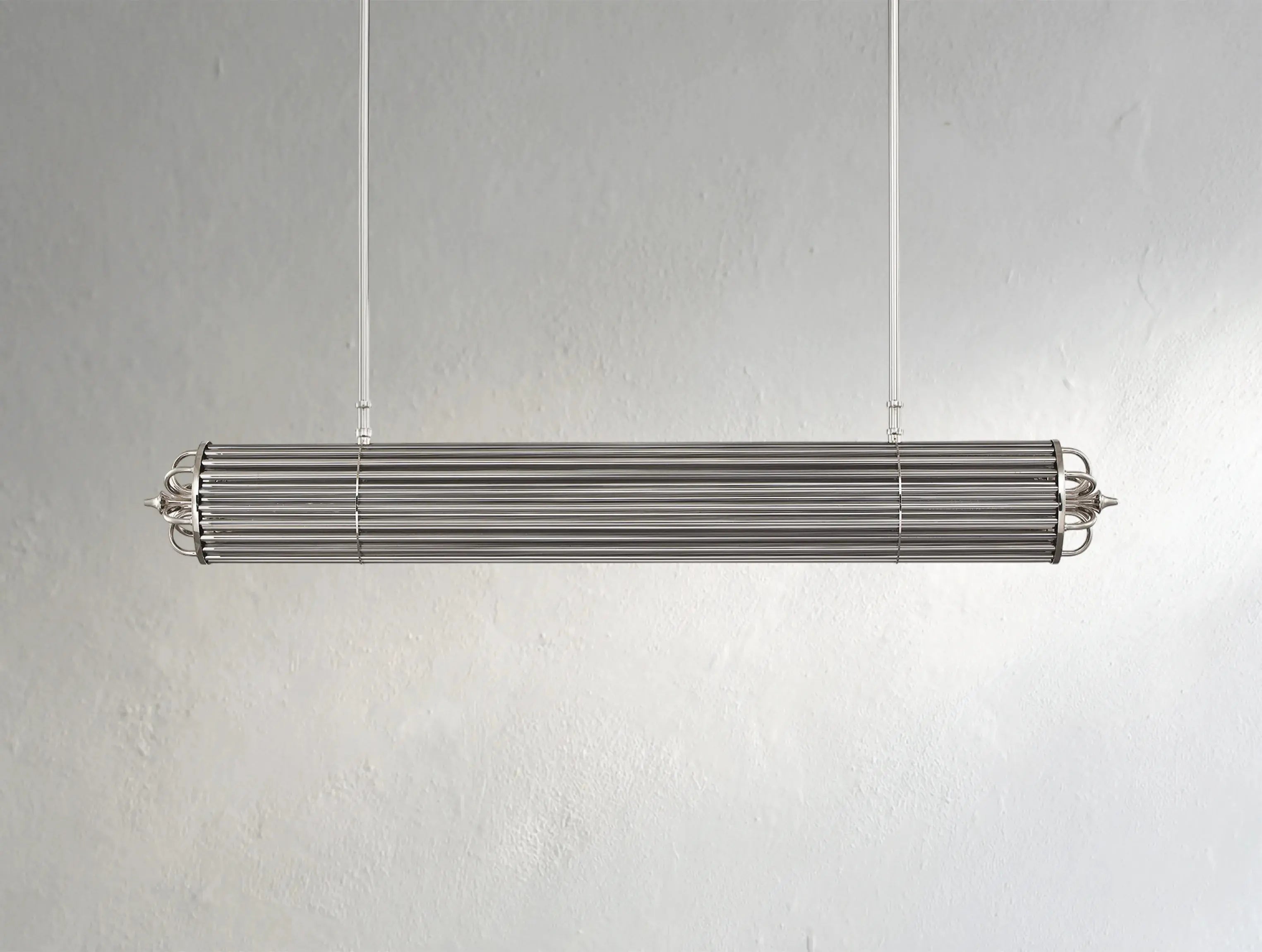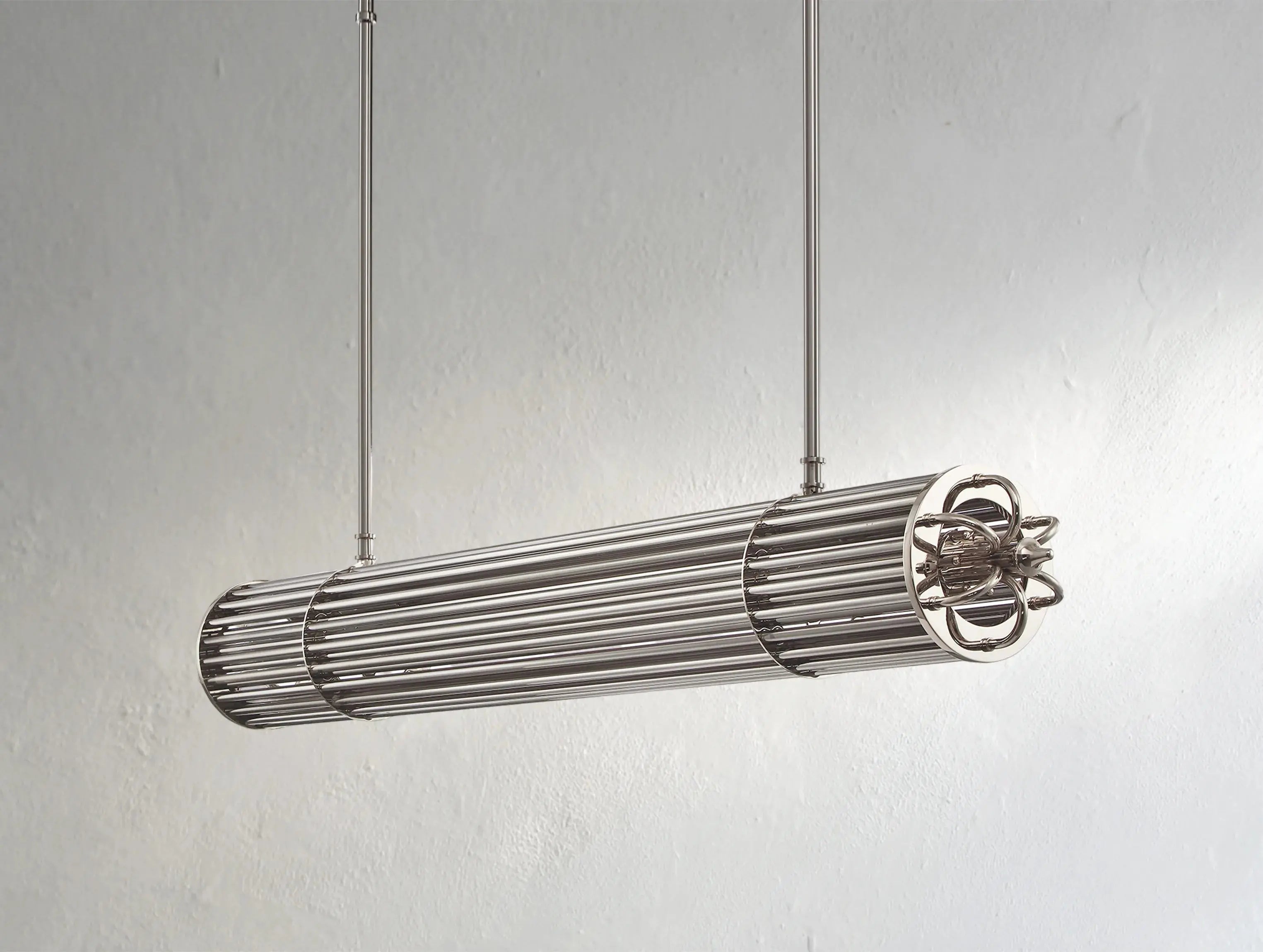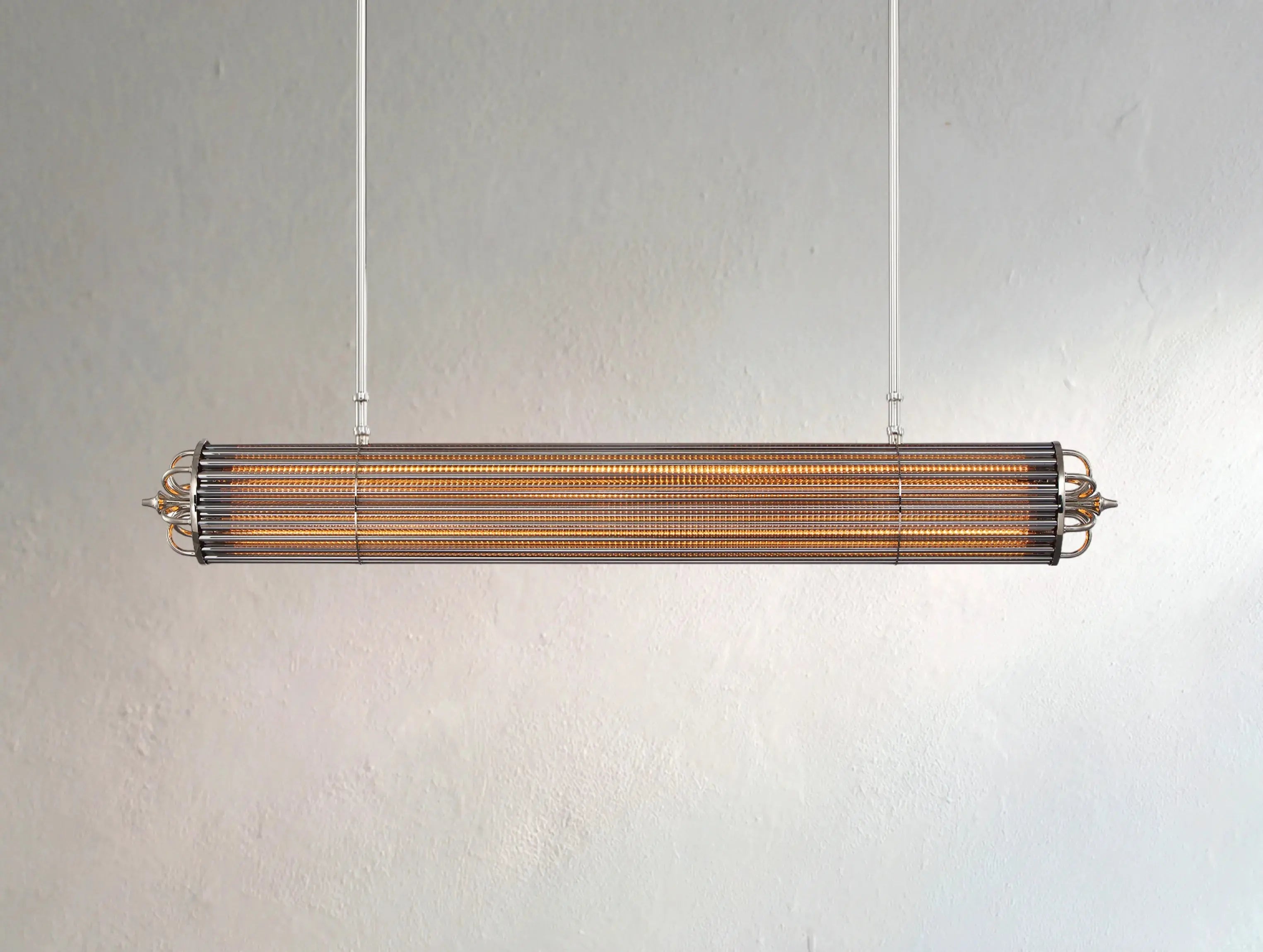 Drawing inspiration from vintage astronomical instruments, the Astrolume Linear Chandelier captures the spirit of exploration in a striking, elongated form. Sleek glass rods are suspended between two magnifying-style ends, echoing the precision and romance of celestial observation.