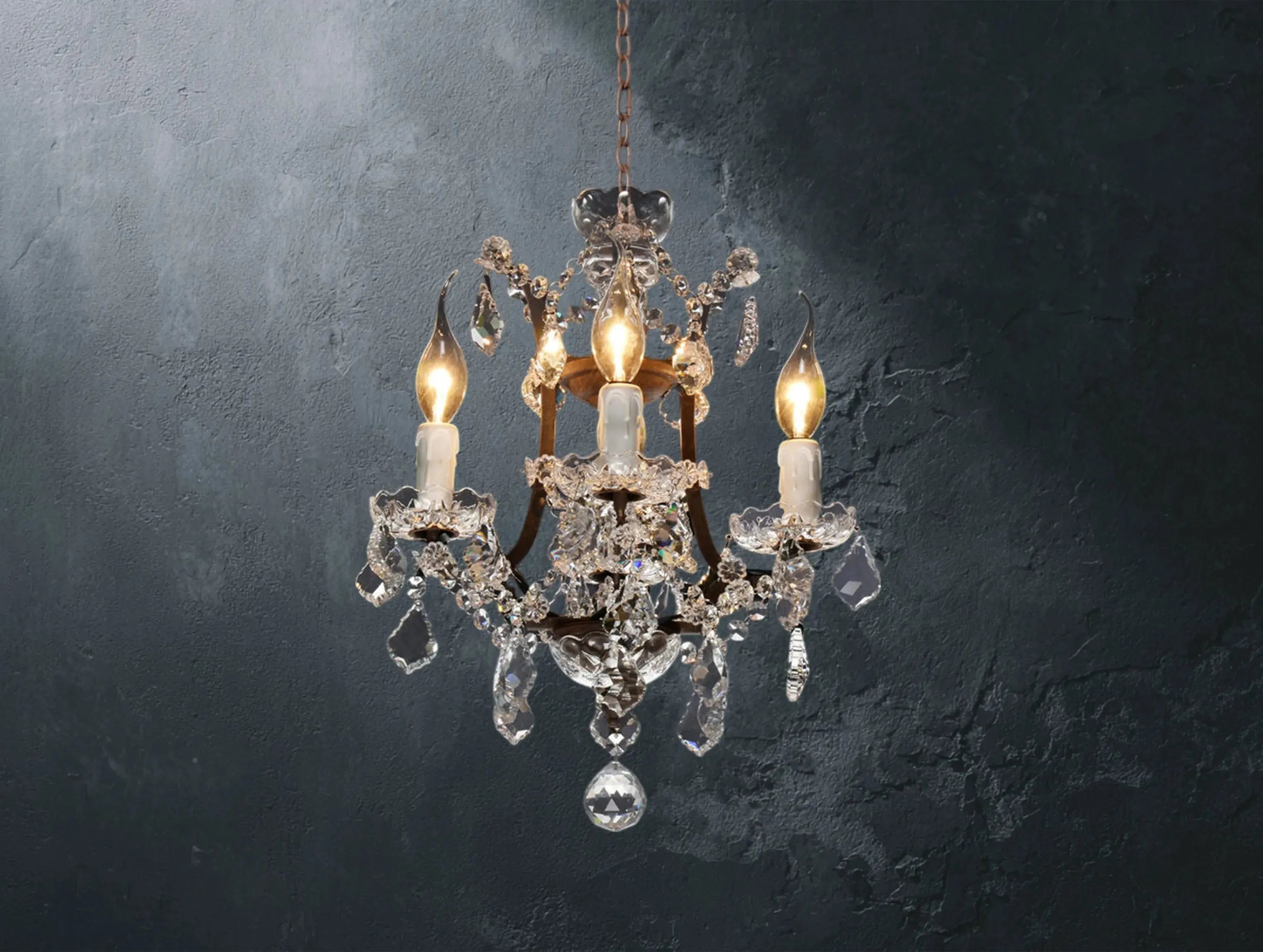 A tribute to the refined elegance of 18th-century European design, the Aurum Regent Chandelier blends hand-finished metalwork with brilliant, faceted crystal detailing. At its heart lies a sculptural crystal baluster, surrounded by delicate glass drops and traditional candle-style lights—each resting on classic bobeche dishes, once used to catch wax. The refined silhouette is offset by a rich, time-worn patina in our signature Antique Rust finish, creating a striking contrast of grandeur and rusticity. Available in Antique Rust with white candle sleeves or Natural Metal with matching holders.