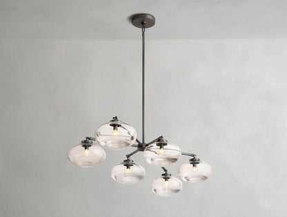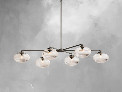 An exploration of form and restraint, the Cabret Linear Chandelier features six oval glass globes suspended in seamless alignment. Handblown and delicately anchored to slender steel arms, each globe appears to float midair—lightweight in spirit, yet grounded in exceptional craftsmanship. Designed in San Francisco by Jonathan Browning, it’s a sculptural statement for dining rooms, kitchen islands, and beyond.