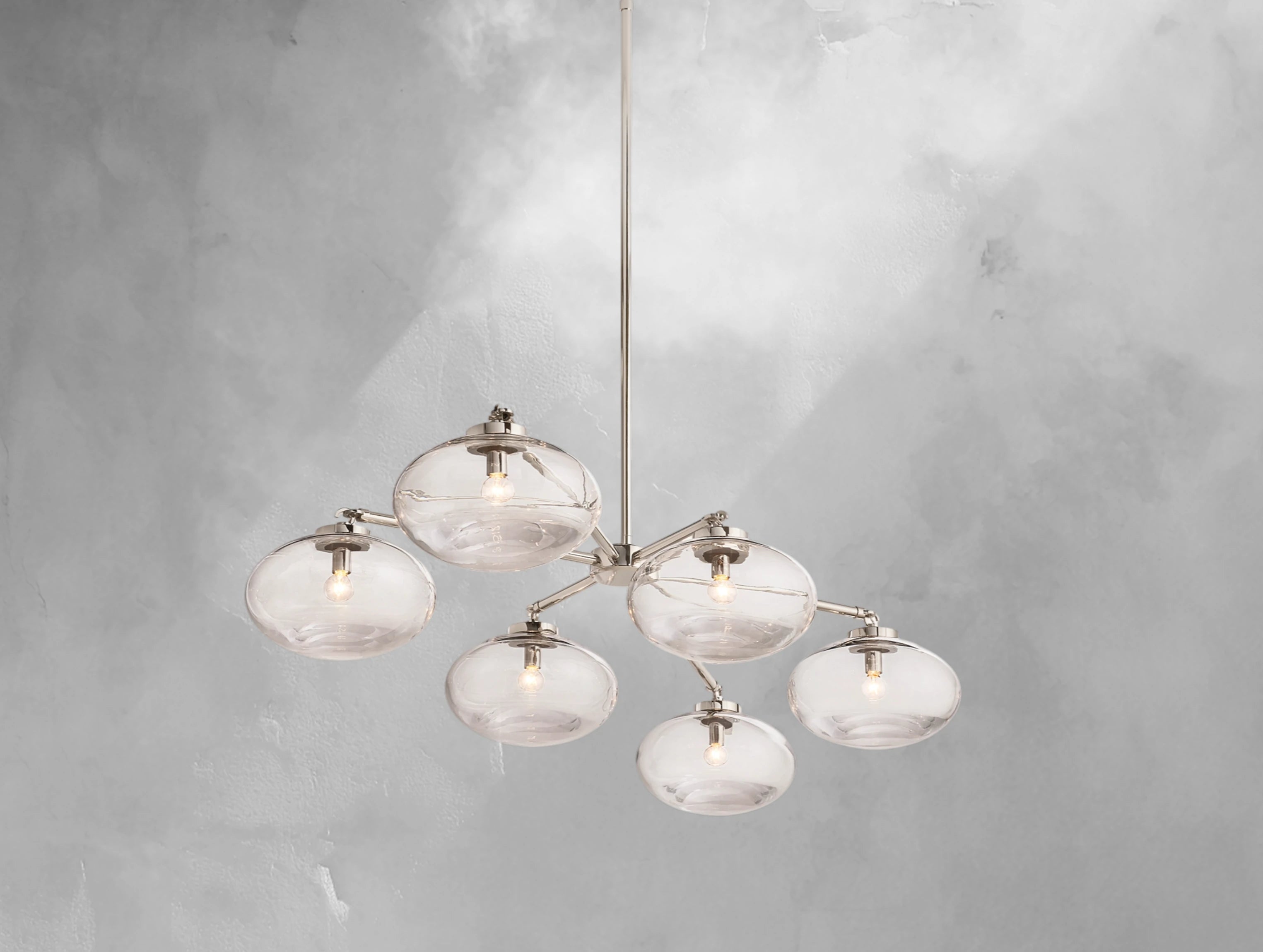 • Features 6 oval glass globes suspended from slim metal arms