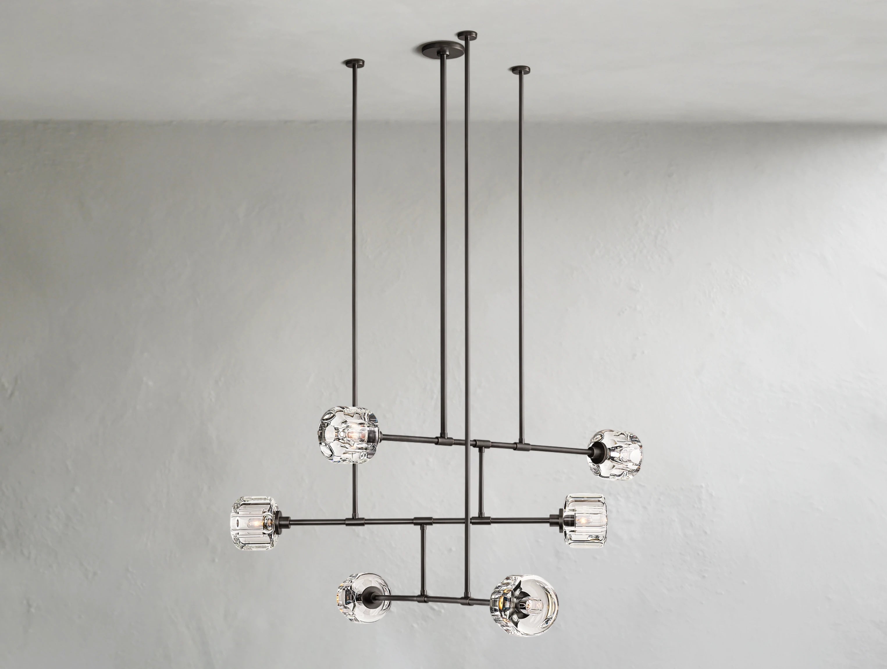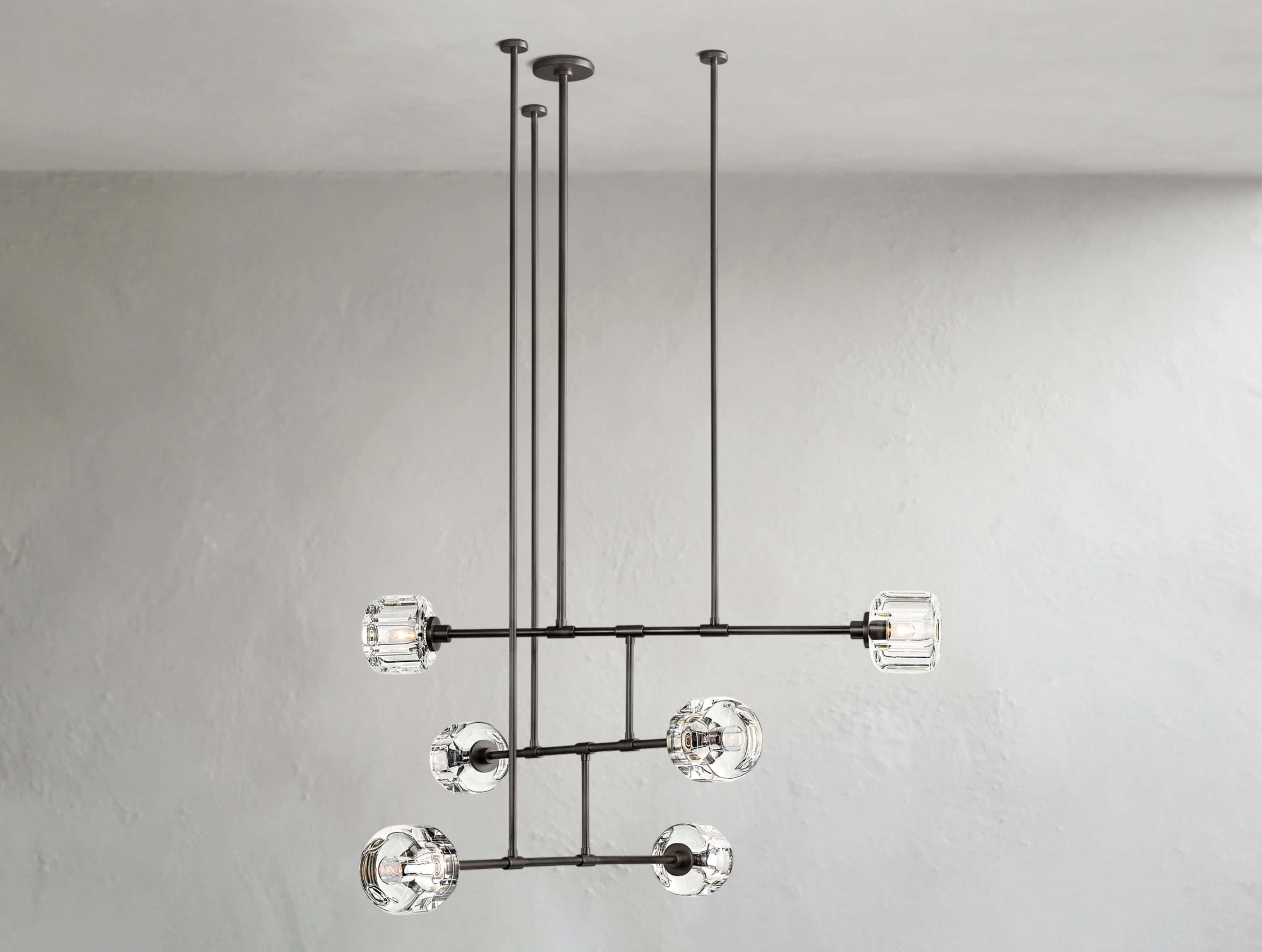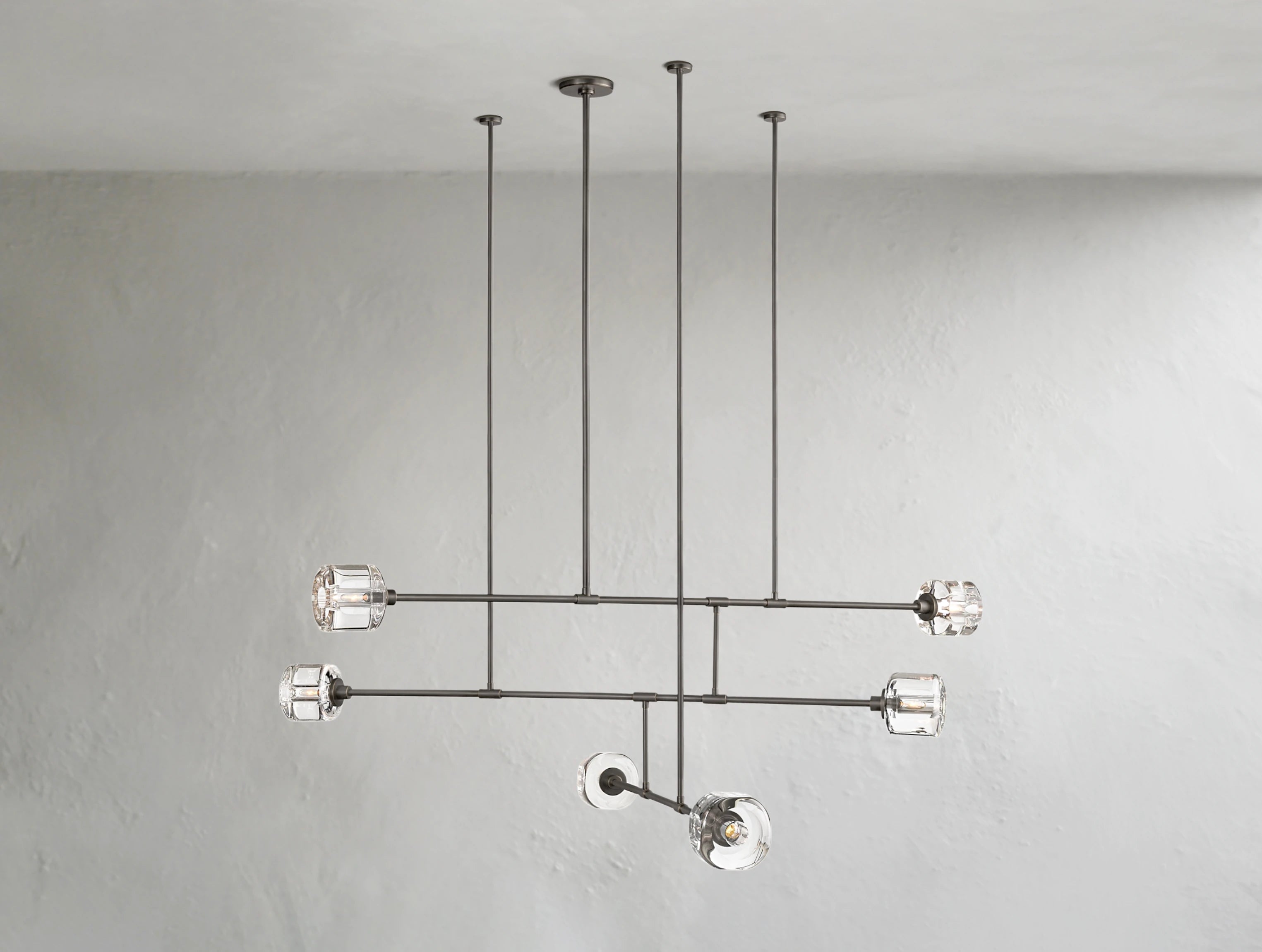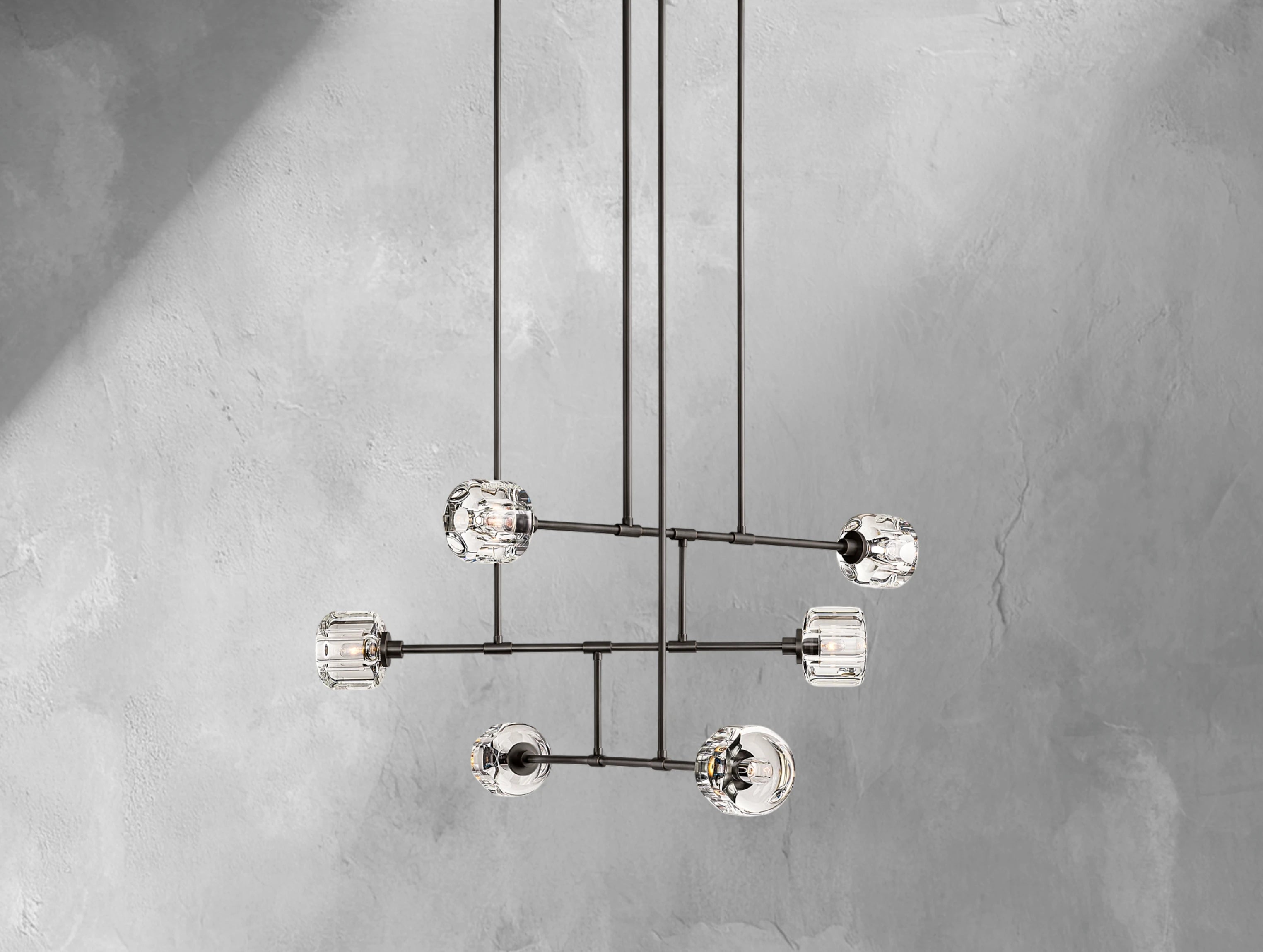 Sculptural clarity meets subtle movement in this mobile-inspired take on Ardenel’s signature crystal chandelier. Precision-cast K9 crystal panels—oval-faceted and hand-polished—are suspended from a minimalist steel frame that echoes the elegance of kinetic balance. Light flows through the clear crystal from within, casting soft refractions while maintaining a clean visual line. Ideal for spaces seeking refined presence with a touch of modern dynamism.