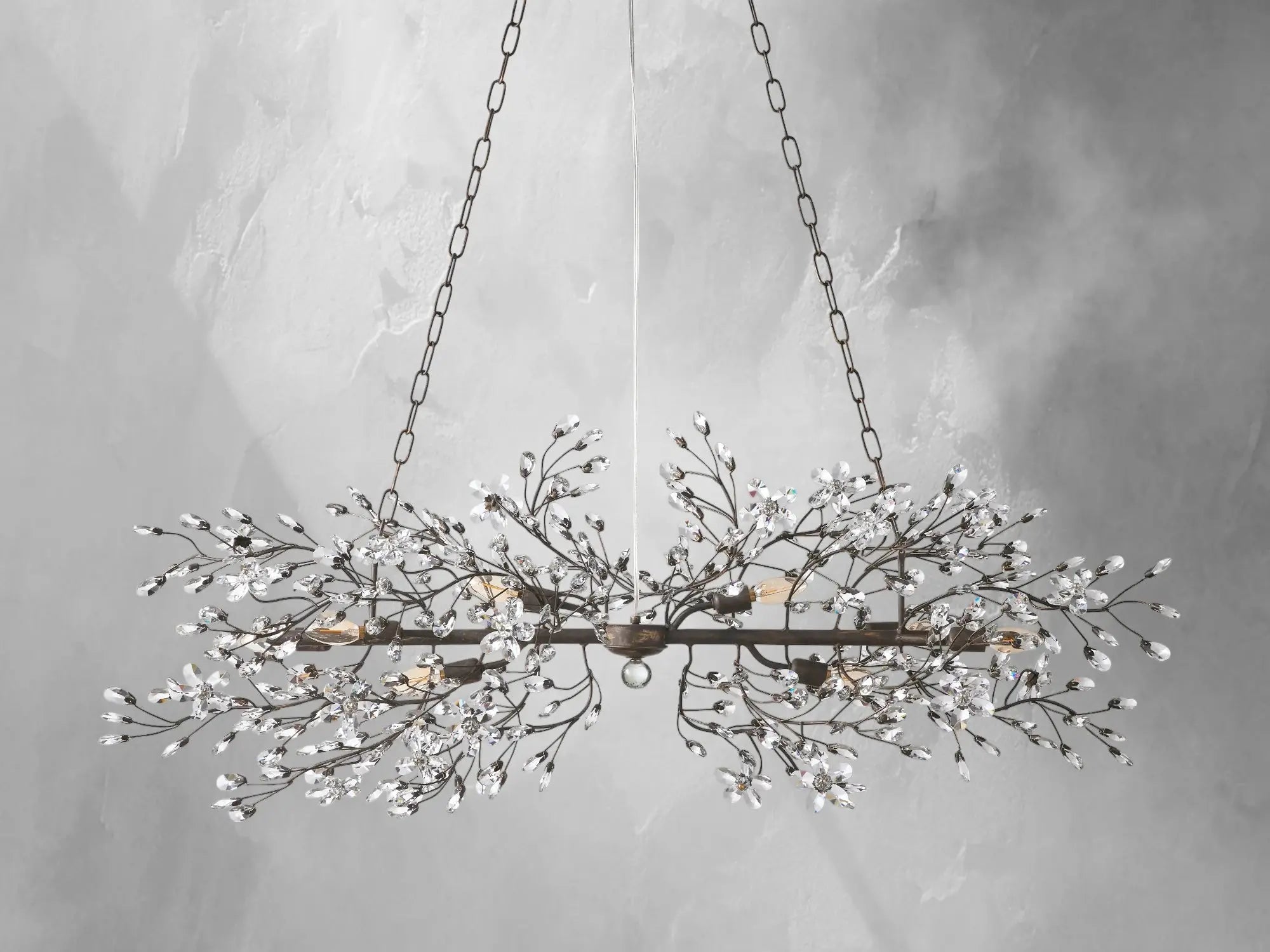 Airy and sculptural, the Fiona Linear Chandelier brings the elegance of Italian garden florals indoors. Featuring hand-applied silver, gold, or bronze finishes and delicate crystal accents, each piece is crafted in Italy to honor natural beauty and timeless craftsmanship. Available in two sizes with E12 bulbs included, it’s a stunning centerpiece for long dining tables or kitchen islands.