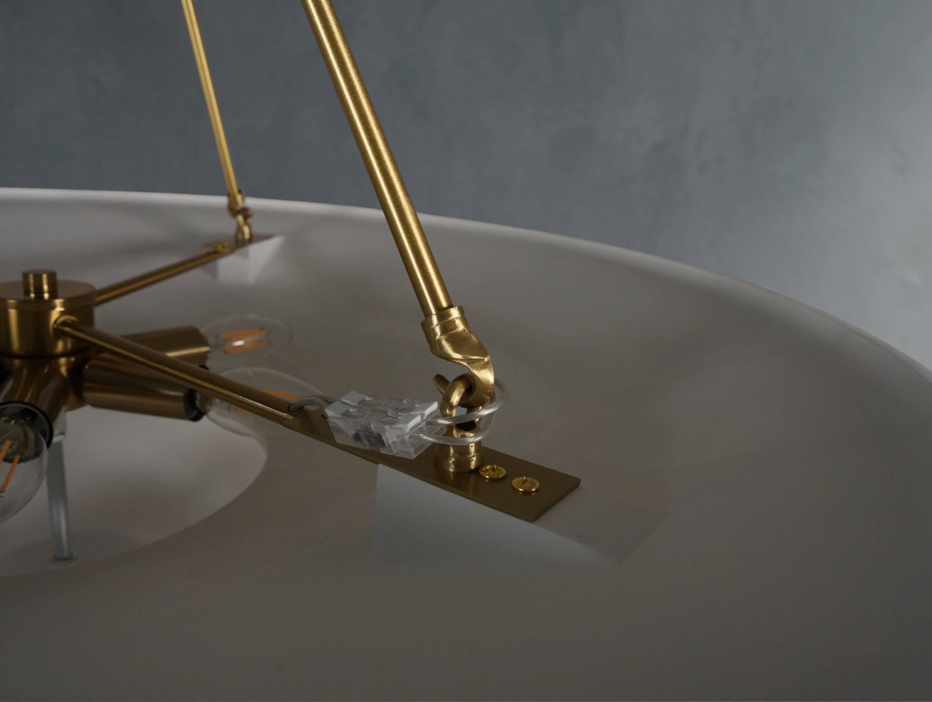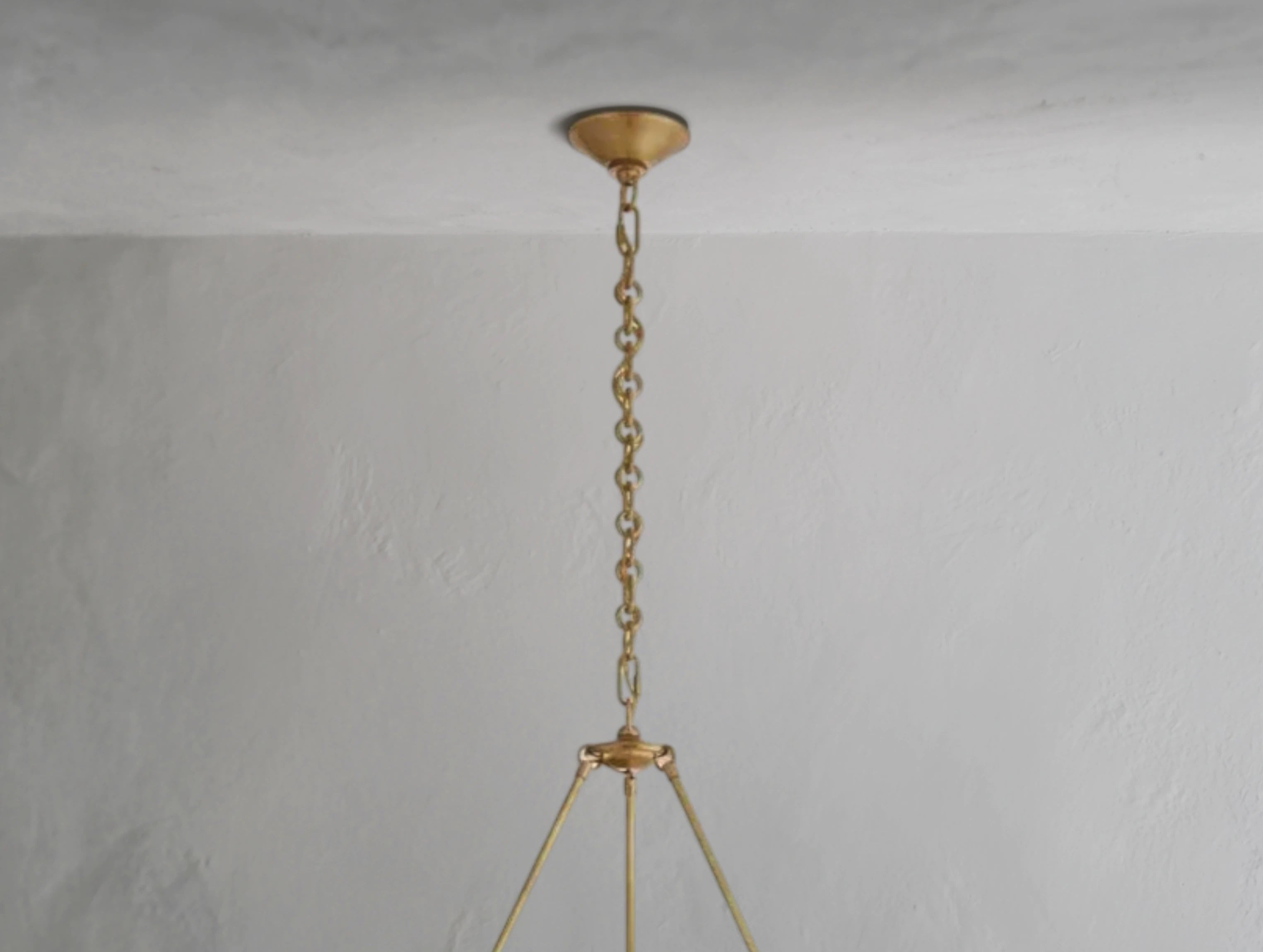 Inspired by the refined minimalism of 1930s France, the Fioroy Chandelier blends sculptural form with luxurious materials. Its hand-cast plaster shade, paired with a slender brass and steel frame, evokes both biomorphic elegance and modern restraint. A statement piece that brings quiet sophistication to any space.