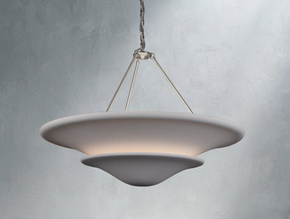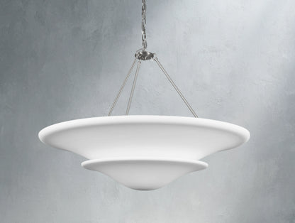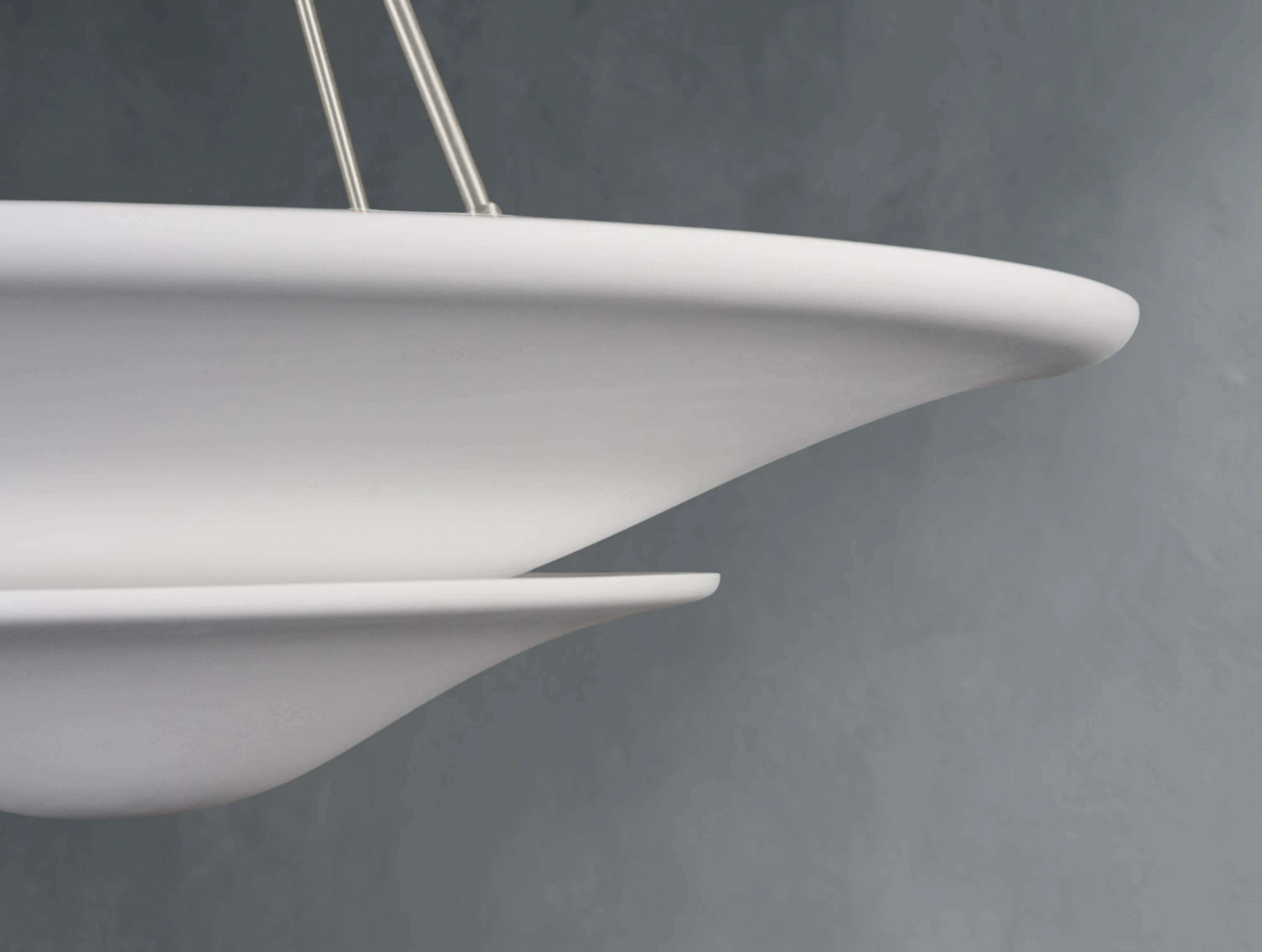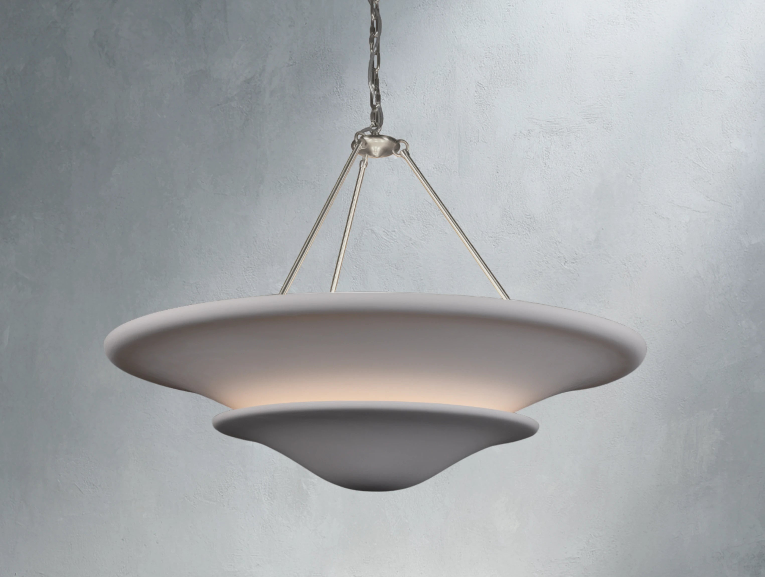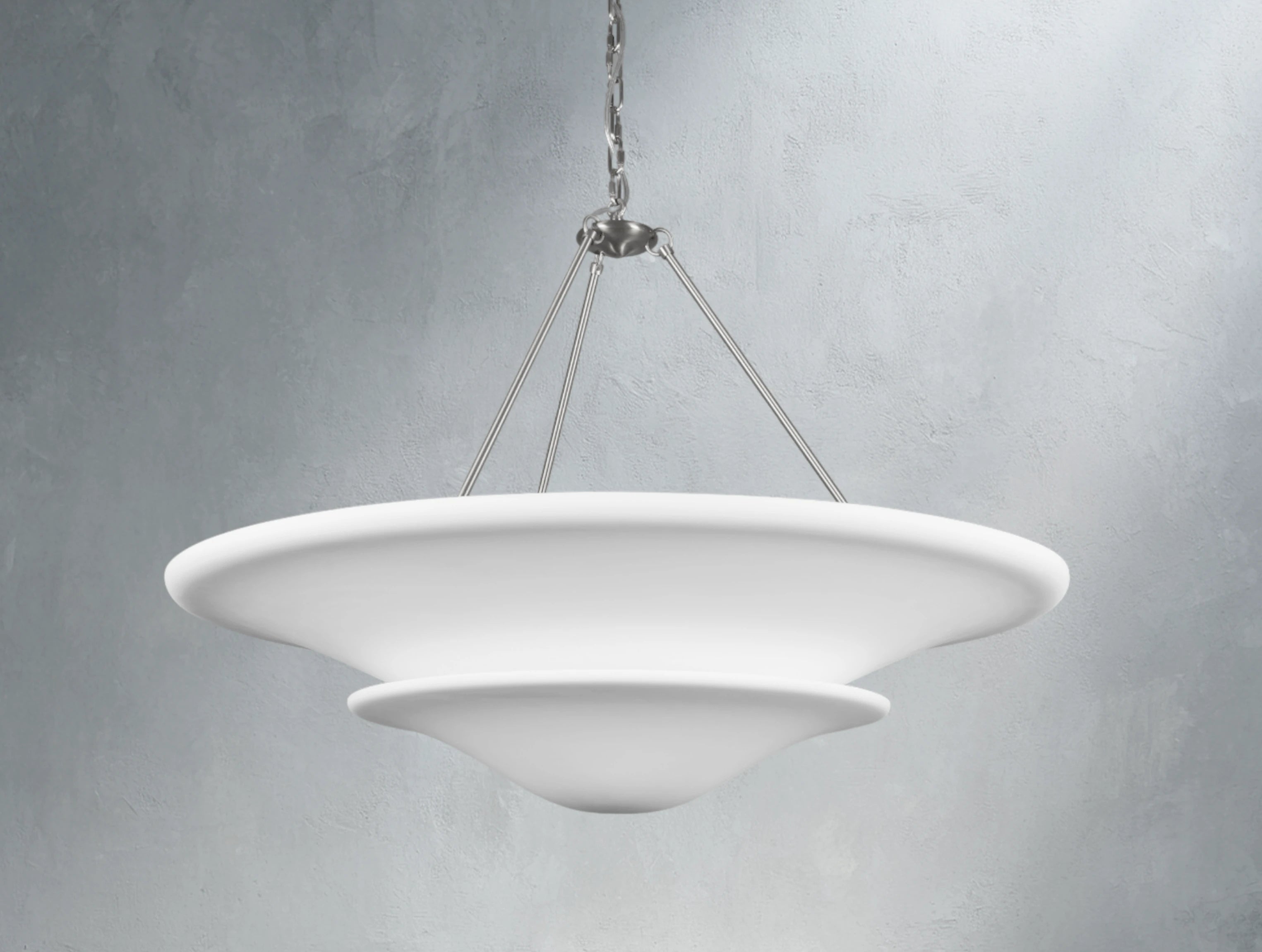 Inspired by the refined minimalism of 1930s France, the Fioroy Chandelier blends sculptural form with luxurious materials. Its hand-cast plaster shade, paired with a slender brass and steel frame, evokes both biomorphic elegance and modern restraint. A statement piece that brings quiet sophistication to any space.