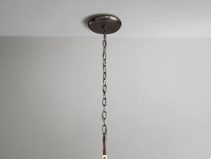 • Suspended from metal chain and canopy (chain may be shortened during installation)
