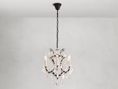 Inspired by the opulent elegance of Victorian English lighting, this chandelier contrasts a rustic iron frame with a cascade of precisely cut crystal glass. Each crystal is meticulously polished to maximize light refraction and brilliance, creating a dazzling play of sparkle and shadow. Graceful curved arms hold candlestick-style sockets, while crystal drops glisten below, forming a timeless centerpiece that captures the romance of old-world craftsmanship.