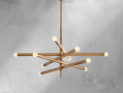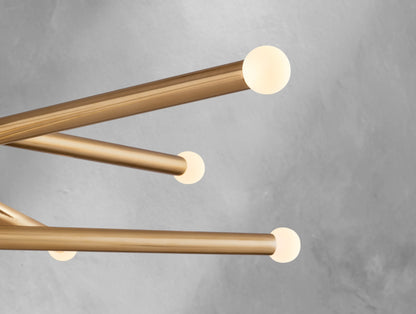 Inspired by minimalist mid-century Italian design, the Rousseau chandelier series presents a refined interpretation of modern simplicity. The collection features two elegant silhouettes — one with elongated etched glass shades and the other with spherical orbs — both crafted to create a warm, diffused glow when lit. Slender brass arms and seamless LED integration lend a sense of balance and quiet sophistication to any room.