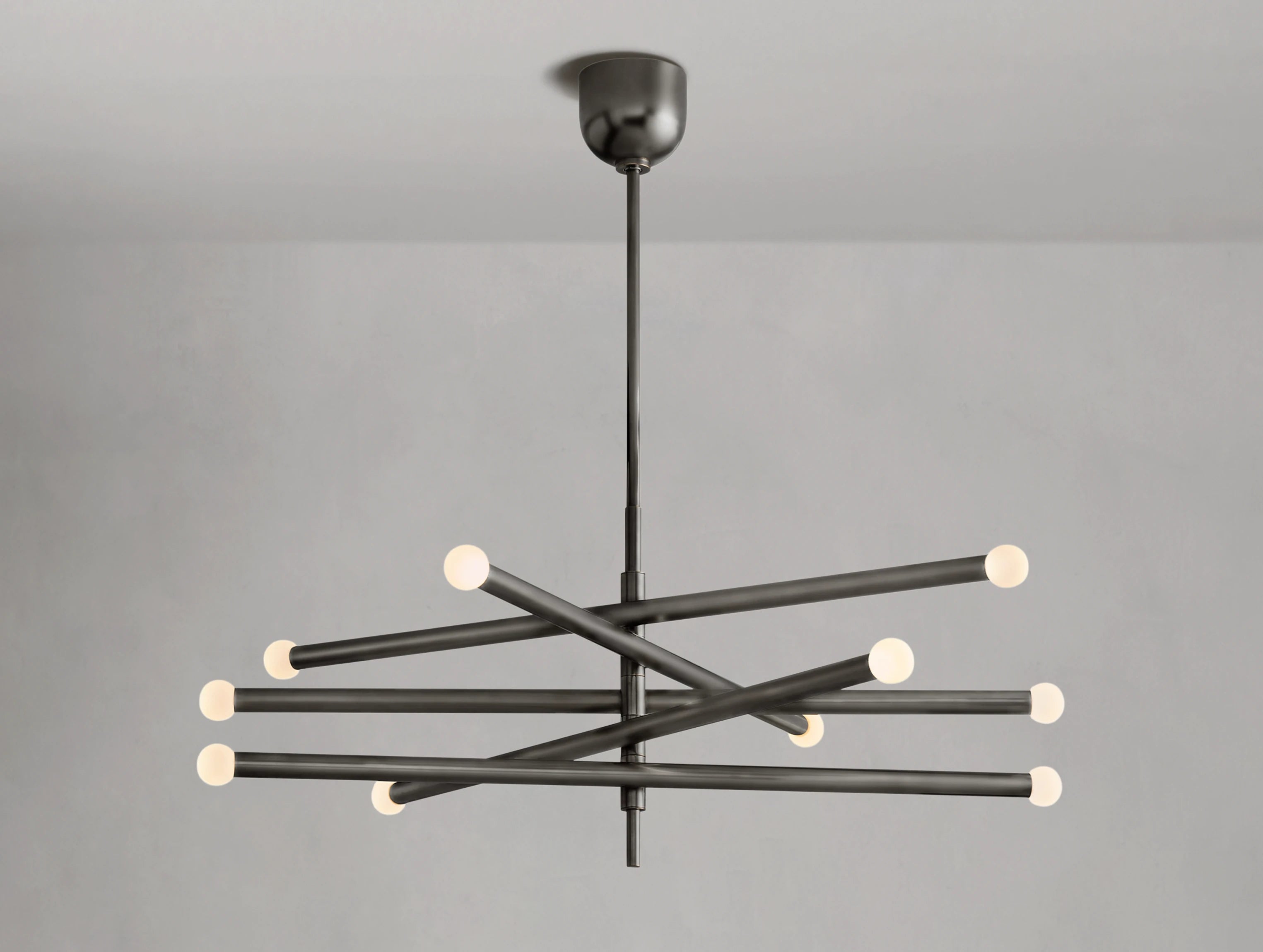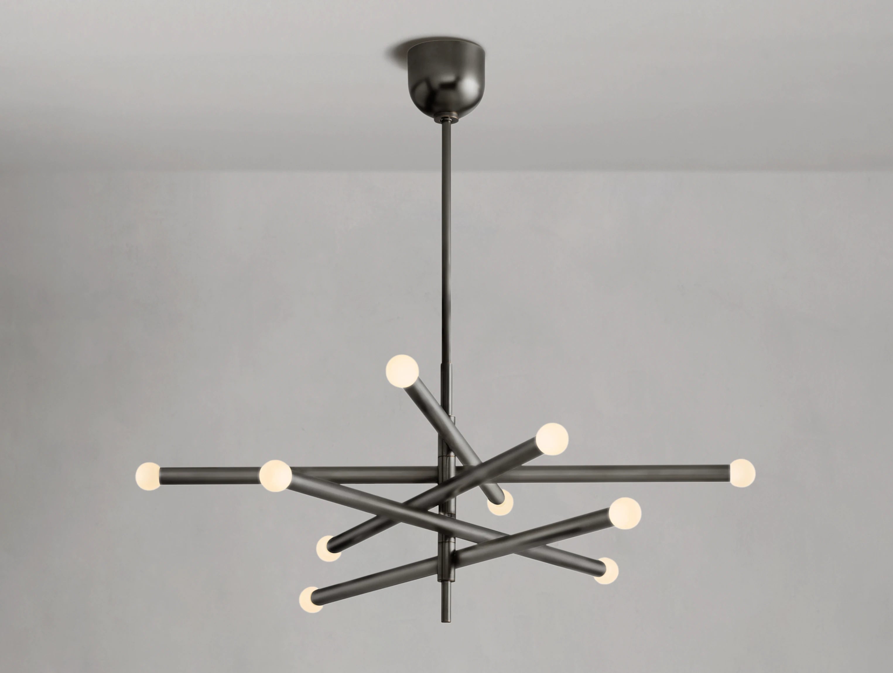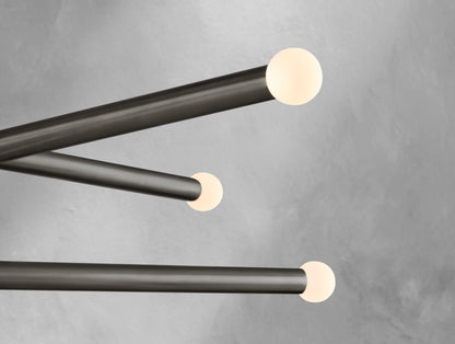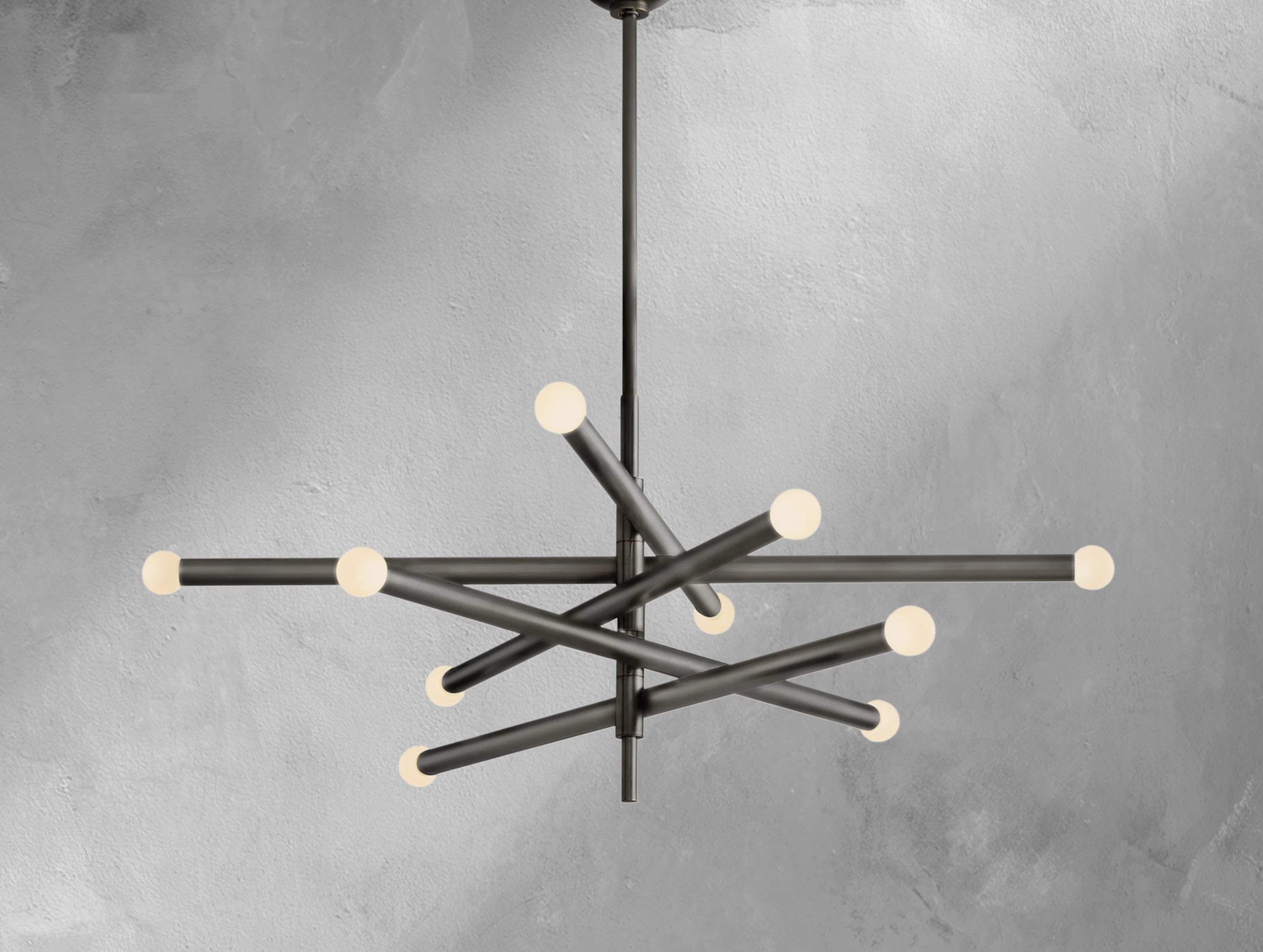 Inspired by minimalist mid-century Italian design, the Rousseau chandelier series presents a refined interpretation of modern simplicity. The collection features two elegant silhouettes — one with elongated etched glass shades and the other with spherical orbs — both crafted to create a warm, diffused glow when lit. Slender brass arms and seamless LED integration lend a sense of balance and quiet sophistication to any room.