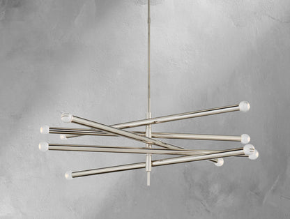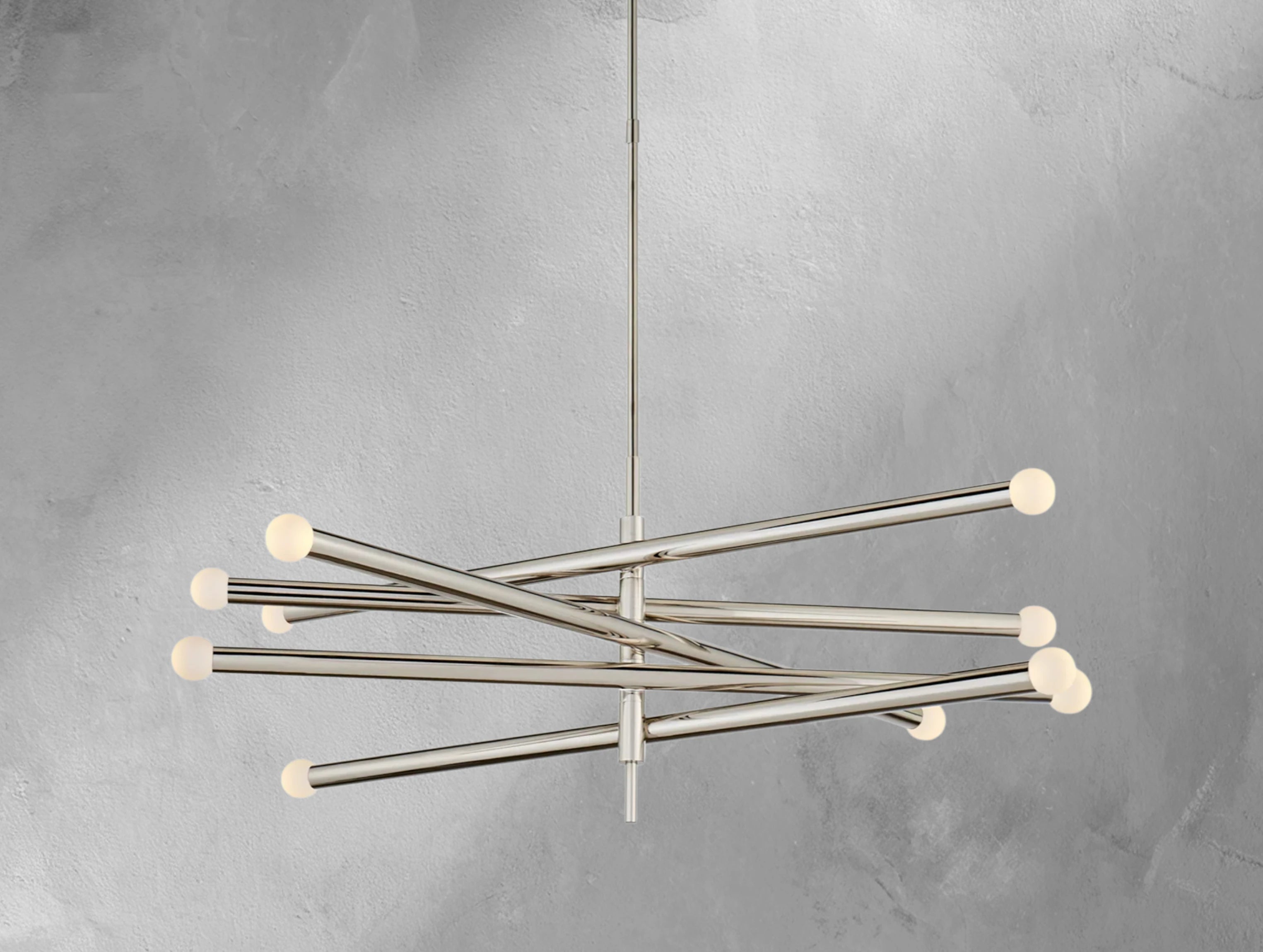 Inspired by minimalist mid-century Italian design, the Rousseau chandelier series presents a refined interpretation of modern simplicity. The collection features two elegant silhouettes — one with elongated etched glass shades and the other with spherical orbs — both crafted to create a warm, diffused glow when lit. Slender brass arms and seamless LED integration lend a sense of balance and quiet sophistication to any room.