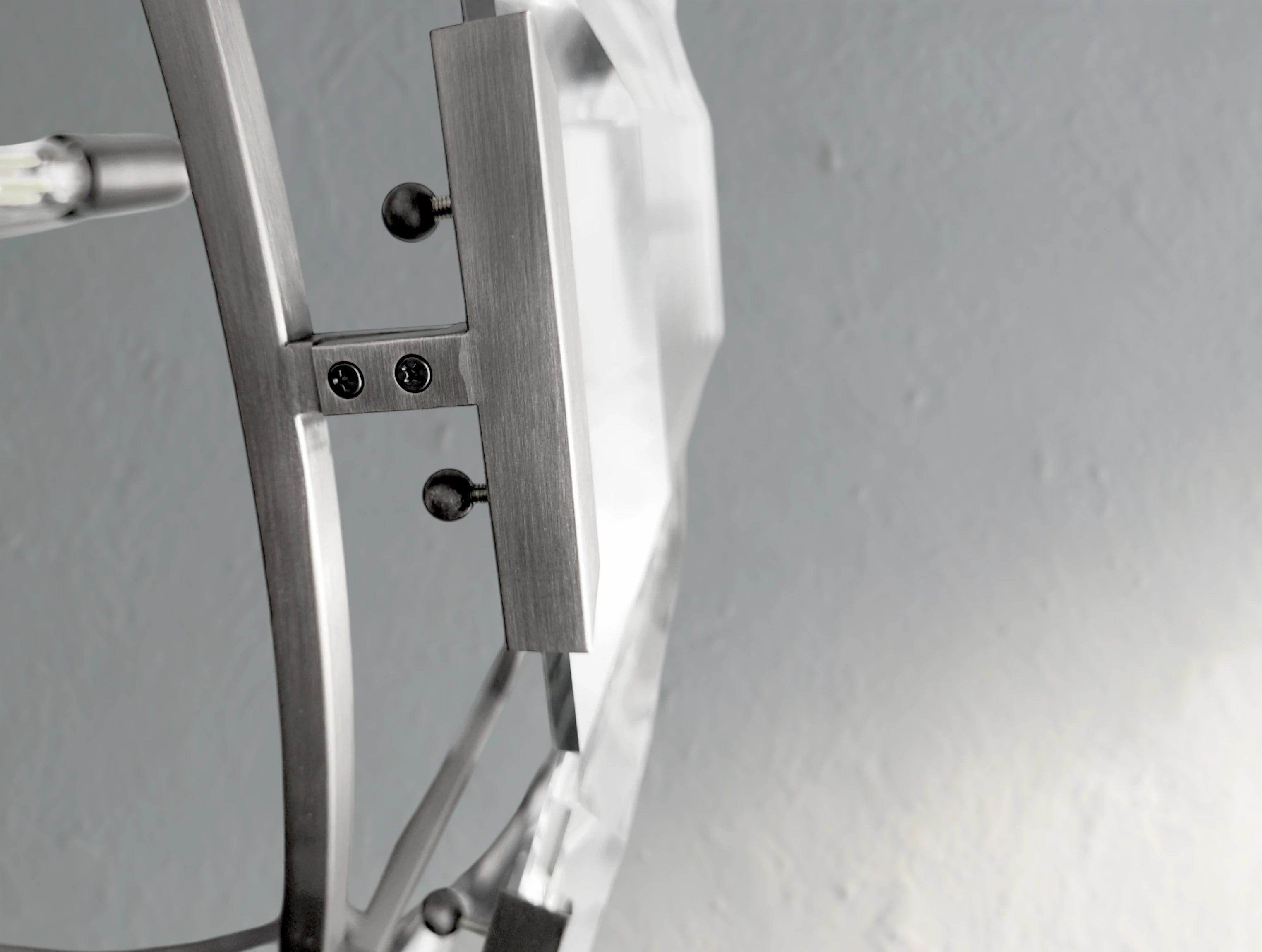 A bold interplay of structure and symmetry, the Gearra LED Round Chandelier channels the elegance of industrial engineering. Inspired by the interlocking spokes of mechanical gears, each hexagonal K9 crystal shade is precision-cut to catch and refract light with prismatic clarity. A solid brass or stainless steel frame anchors the rhythmic silhouette, making it a commanding statement in modern interiors.