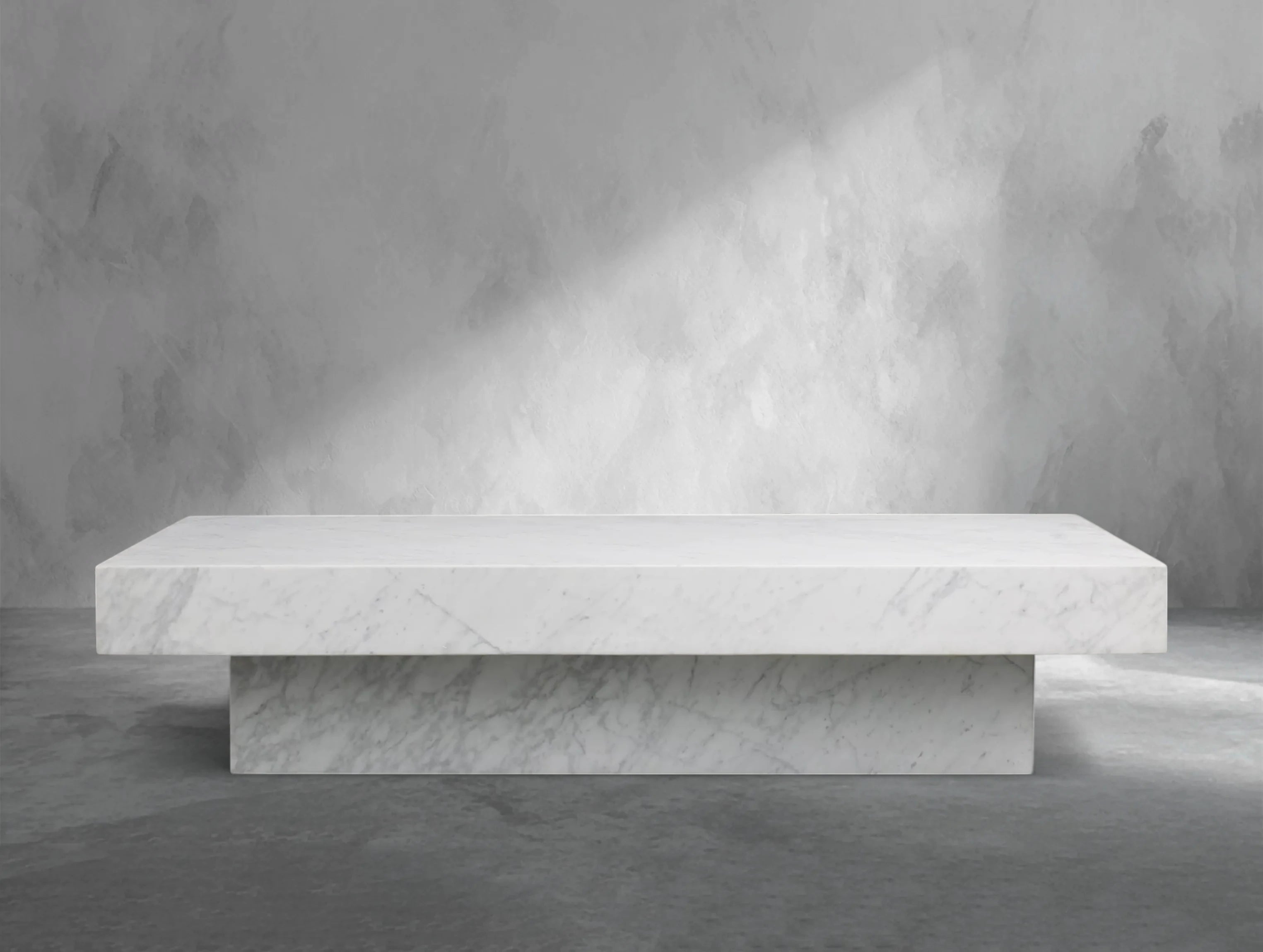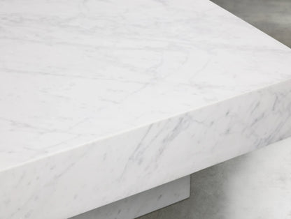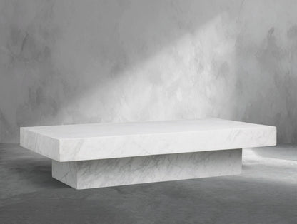With a sculptural silhouette and grounding presence, this stone coffee table brings modern refinement to your living space. The natural marble top showcases organic swirls and tonal variation, while the low plinth base provides architectural balance. Its bold profile and artisanal details make it a true statement piece.