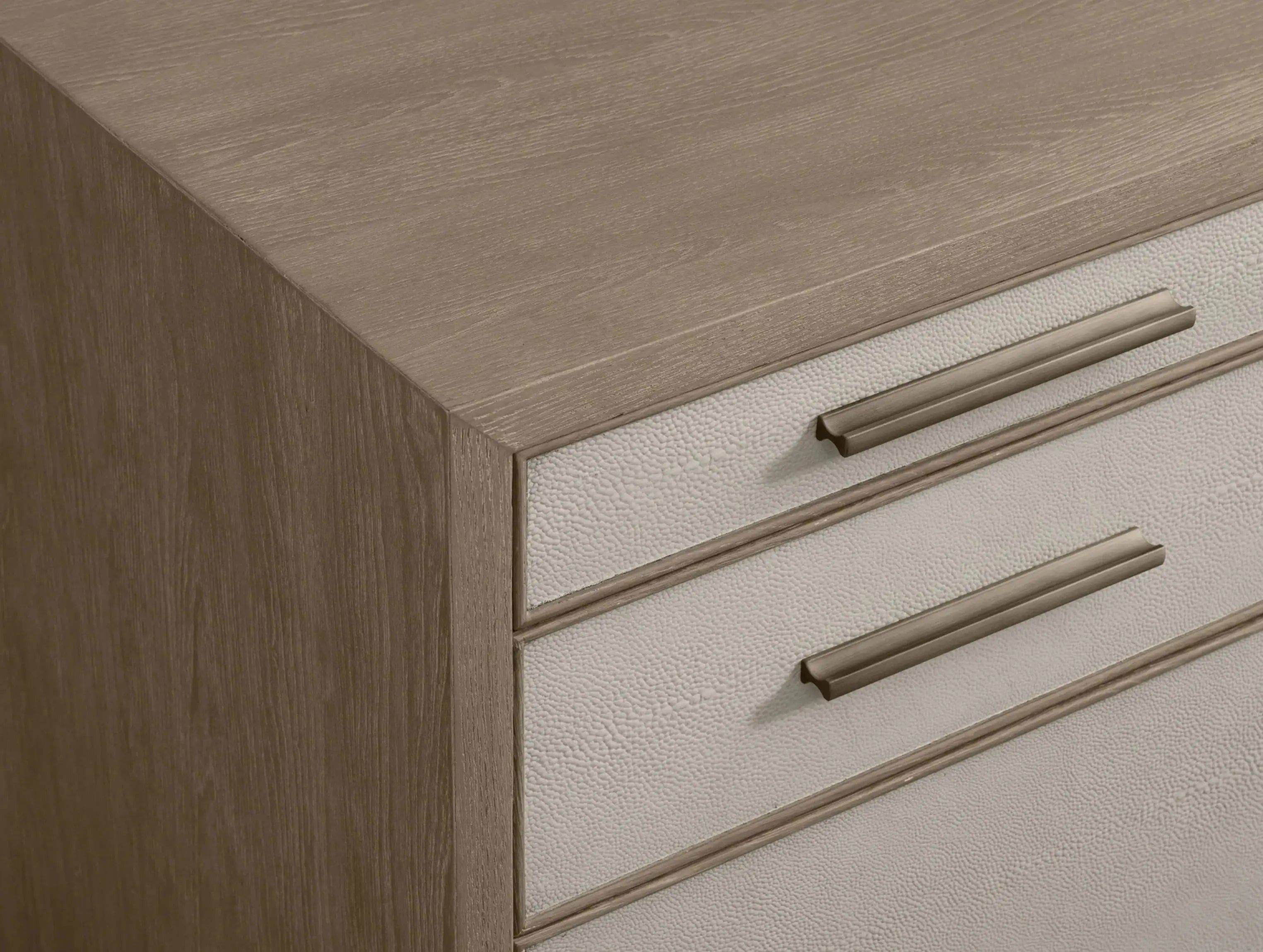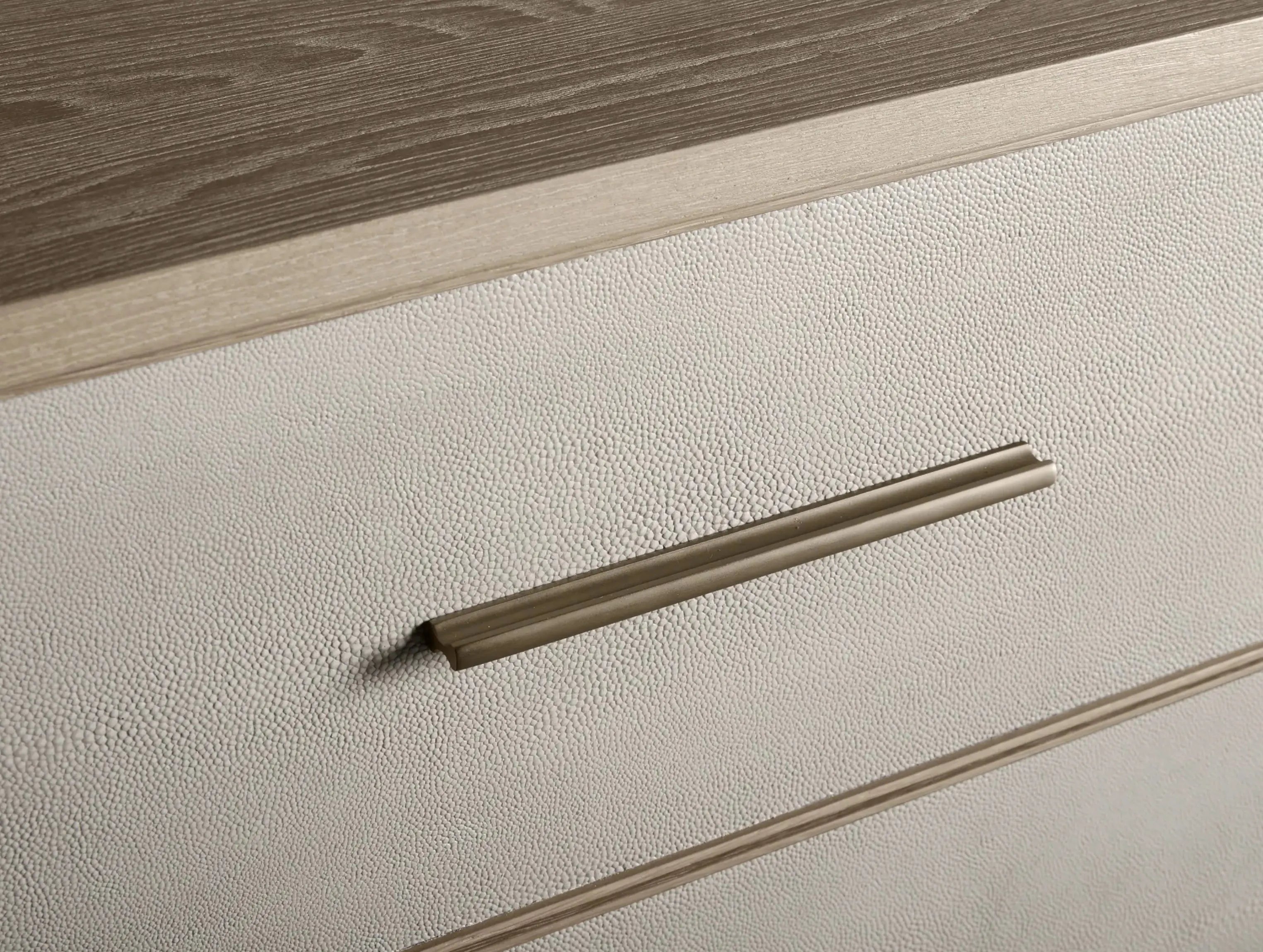 • Inset panels made from reconstituted leather with shagreen texture