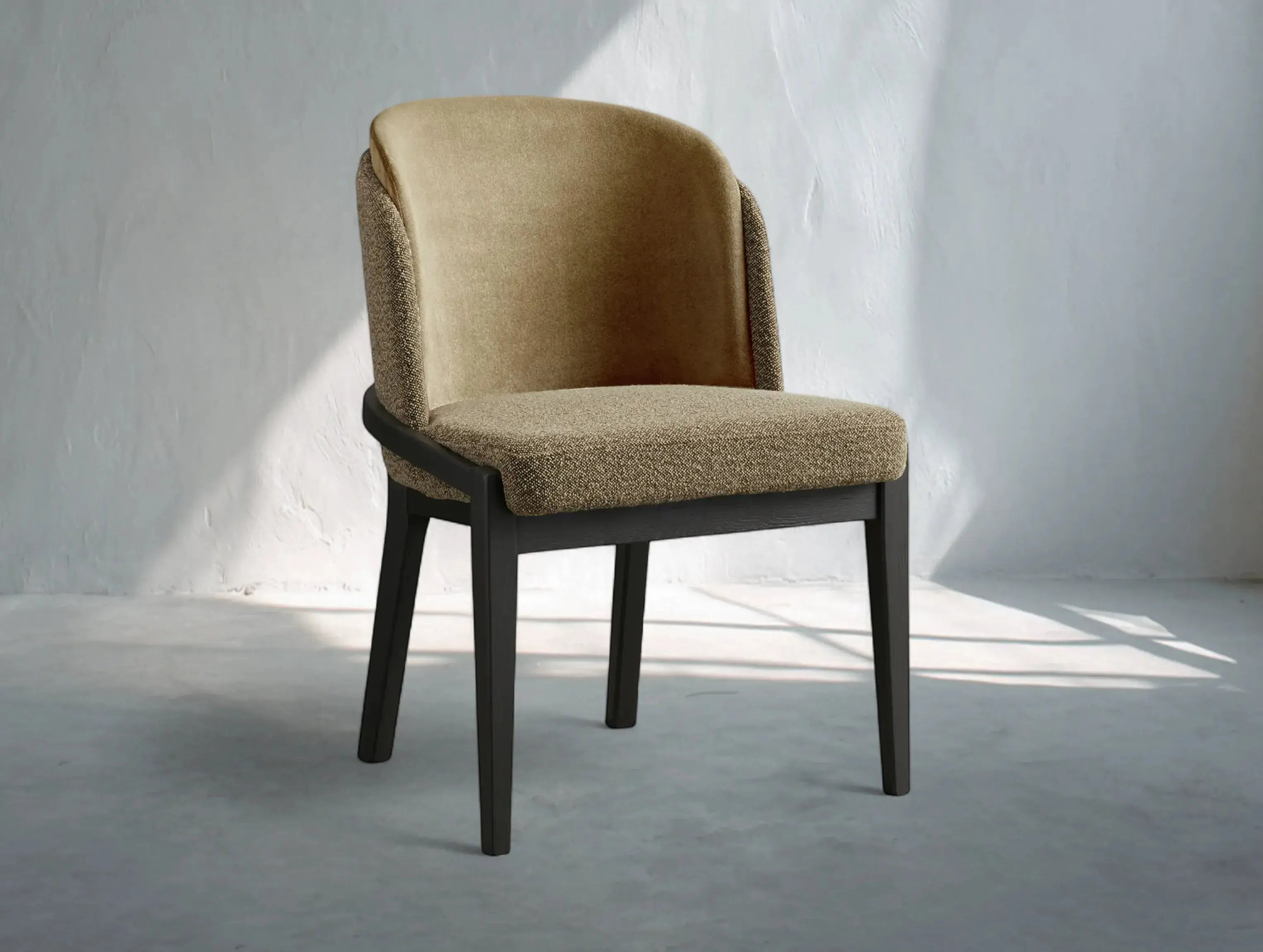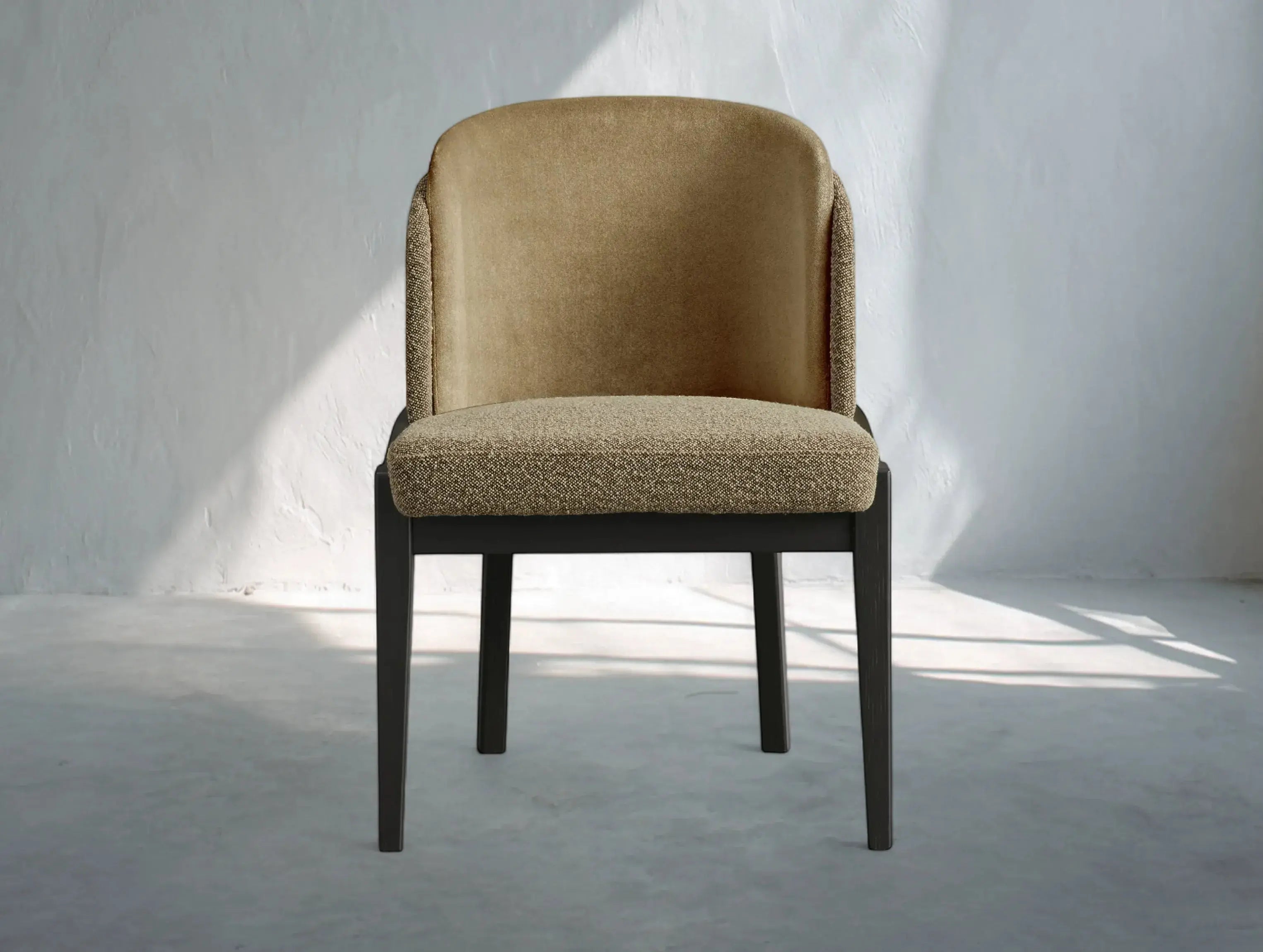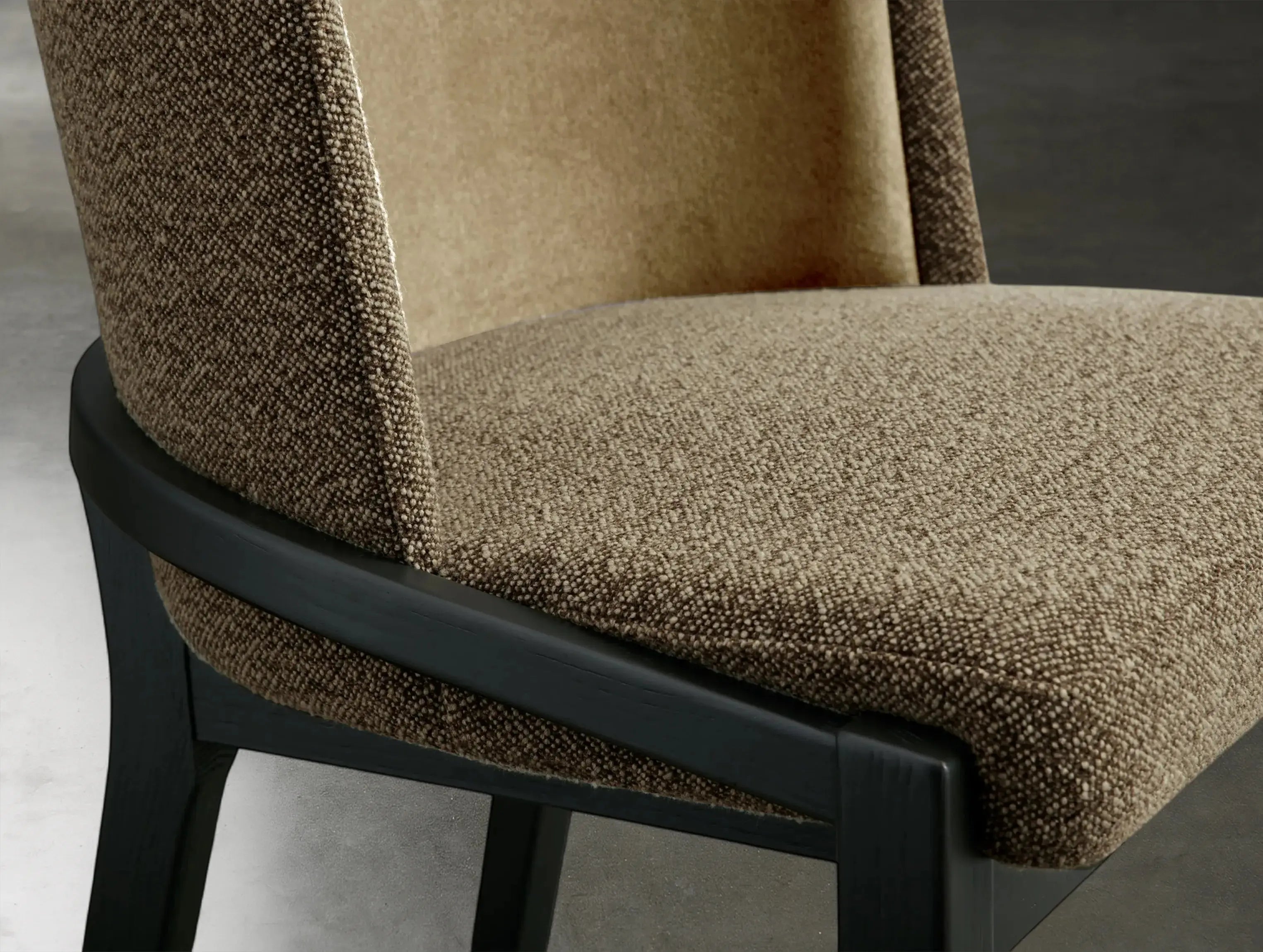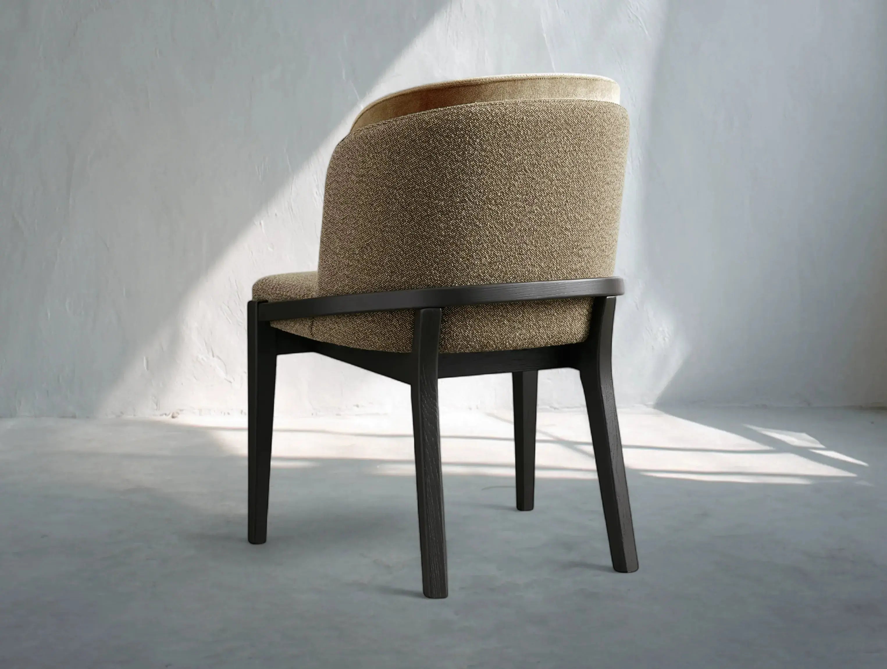 Crafted with refined Italian artistry, the Mono Dining Chair is a study in quiet sophistication. Made from solid ash wood and featuring a sculptural layered backrest, each chair is upholstered in a thoughtful pairing of soft, high-performance fabrics. Its elegant curves and leg details that wrap around the back create a graceful silhouette that complements any modern dining space.