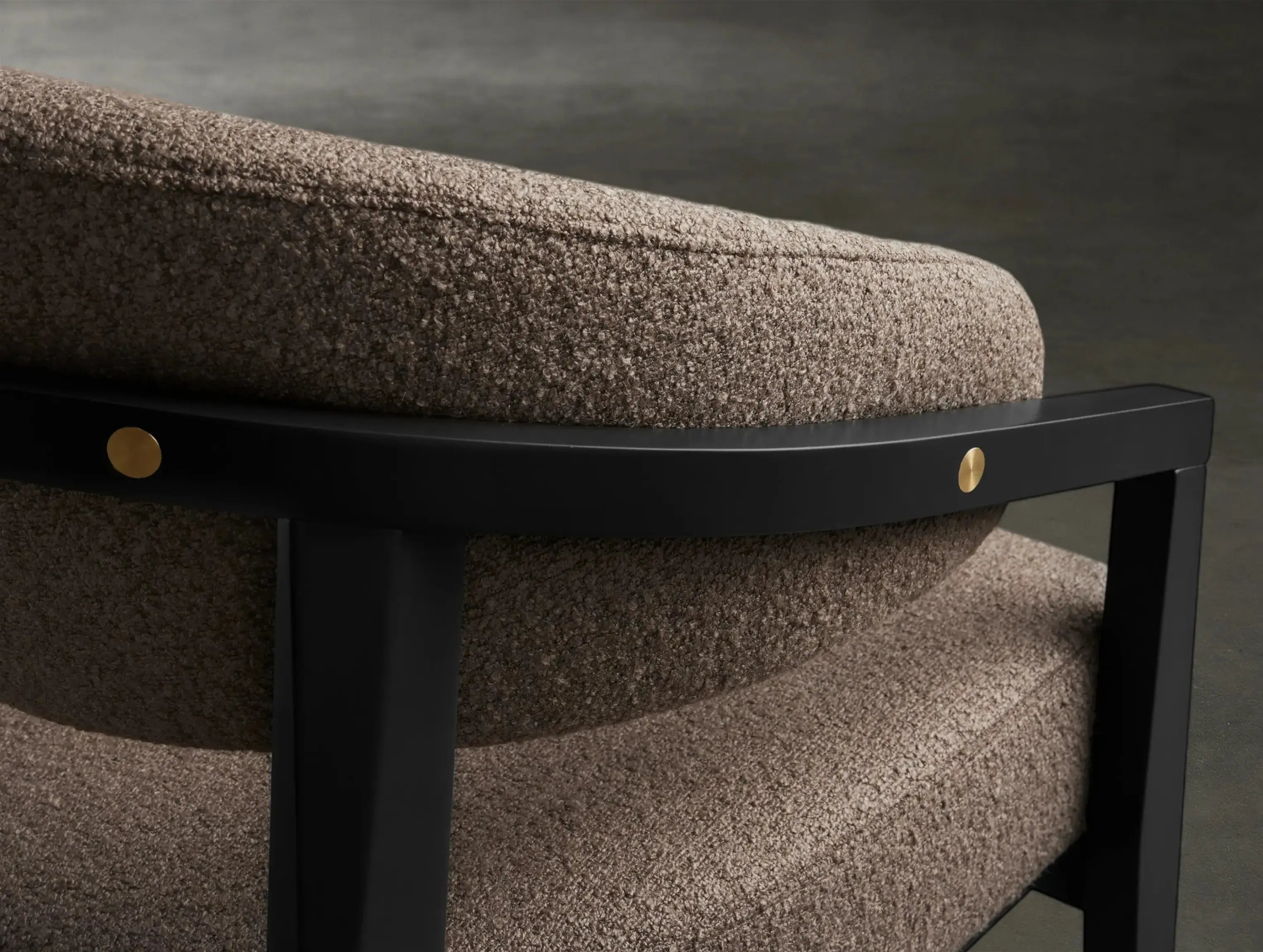 Upholstered in your choice of expertly tailored fabric, the seat and backrest are generously padded for comfort and supported by durable webbing. Subtle brass button accents add a thoughtful finishing touch, inviting you to sit, stay, and enjoy the moment just a bit longer.