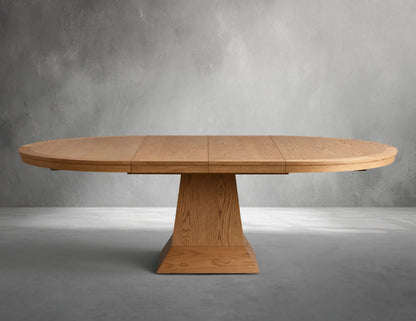 With its rack-and-pinion extension design, the table expands smoothly using the two included leaves, offering generous space for gatherings of all sizes. Built with oak veneers over a durable engineered hardwood core, it balances long-lasting strength with refined visual character.
