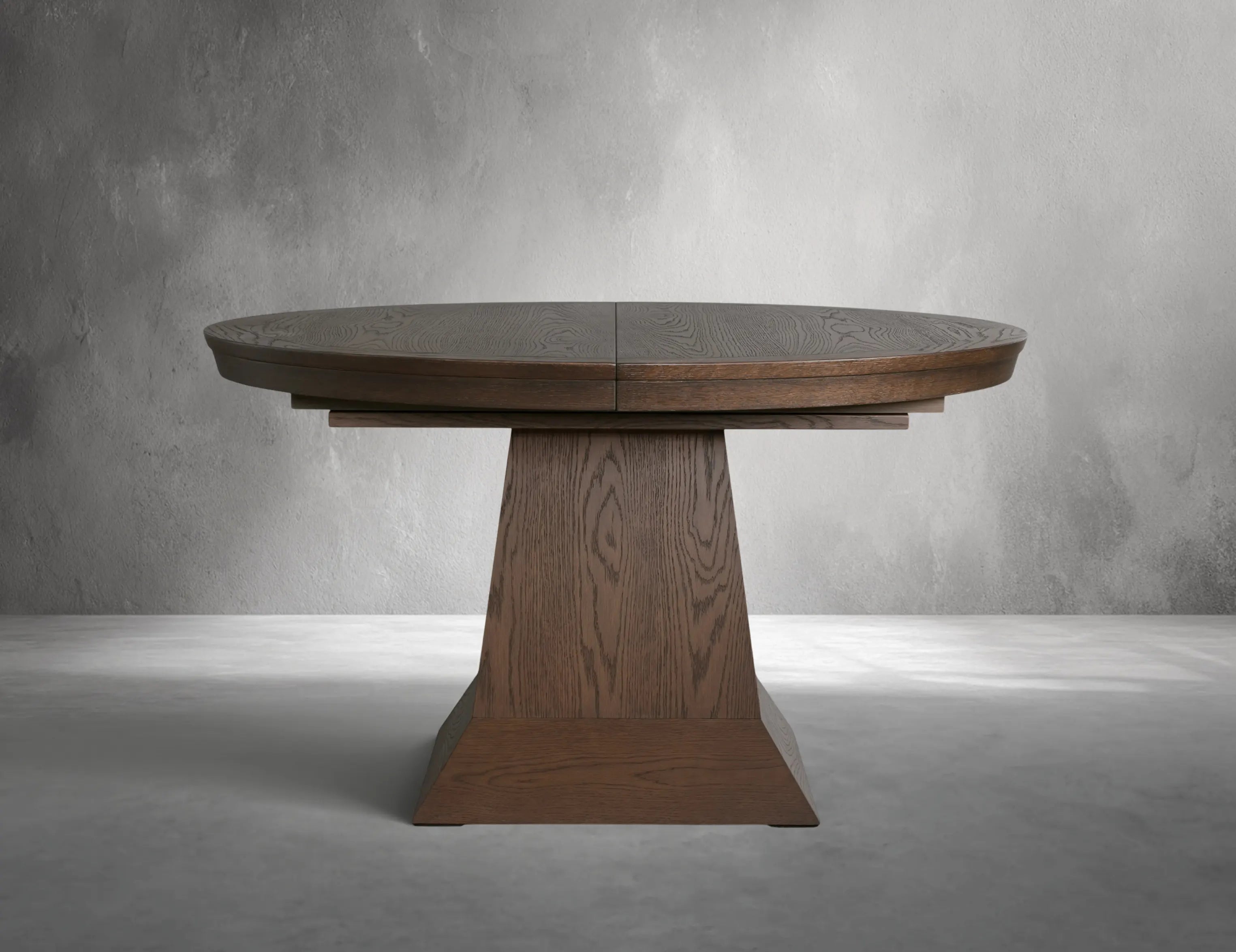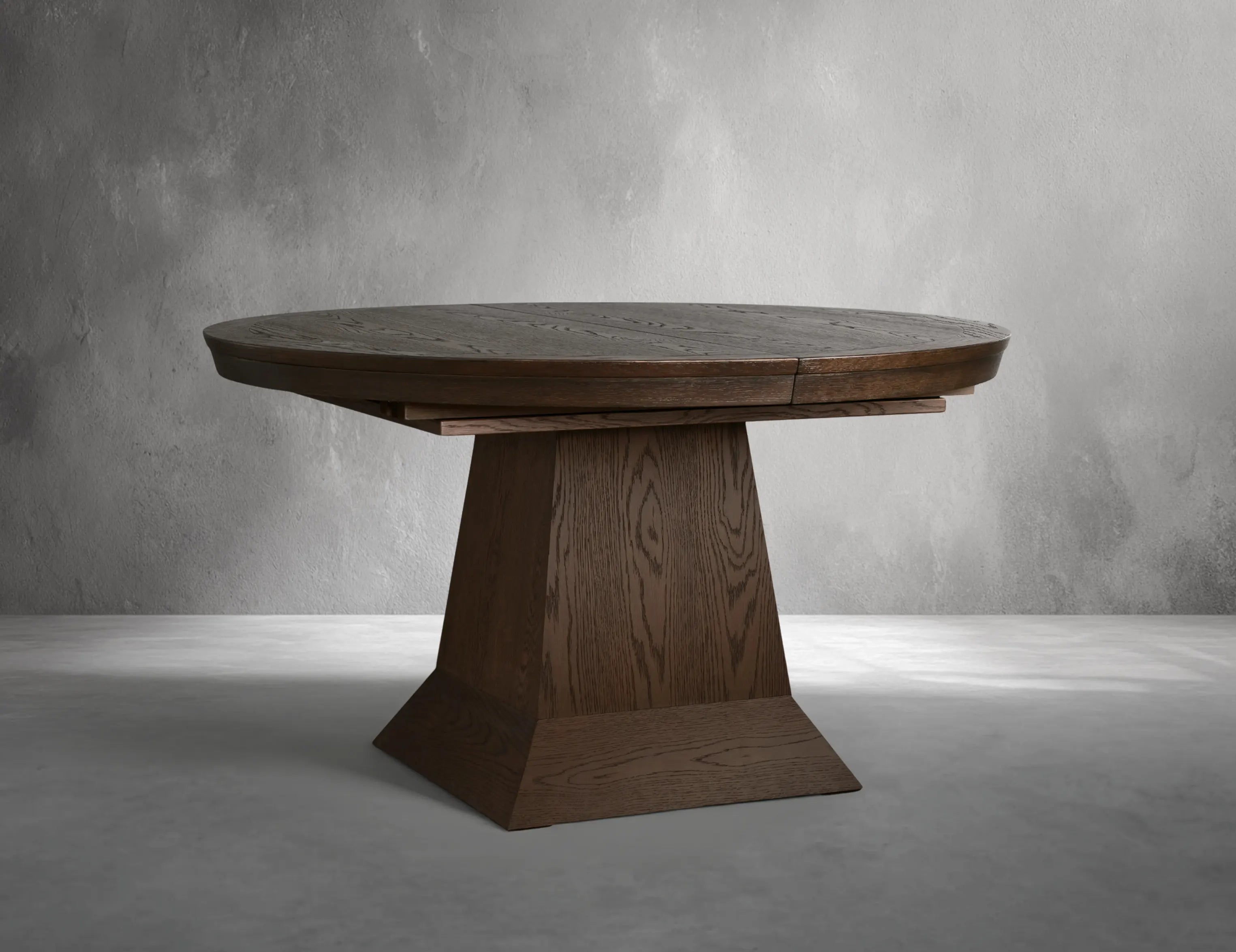 The Laindton Extension Dining Table blends timeless craftsmanship with flexible, modern functionality. Its sculpted pedestal base and hand-finished surfaces showcase the natural movement of the wood, bringing warmth and presence to any dining space. Each table is handcrafted in Chinese by skilled artisans who sand, stain, glaze, and lacquer the surface entirely by hand—creating depth, texture, and subtle variations that make every piece distinctive.