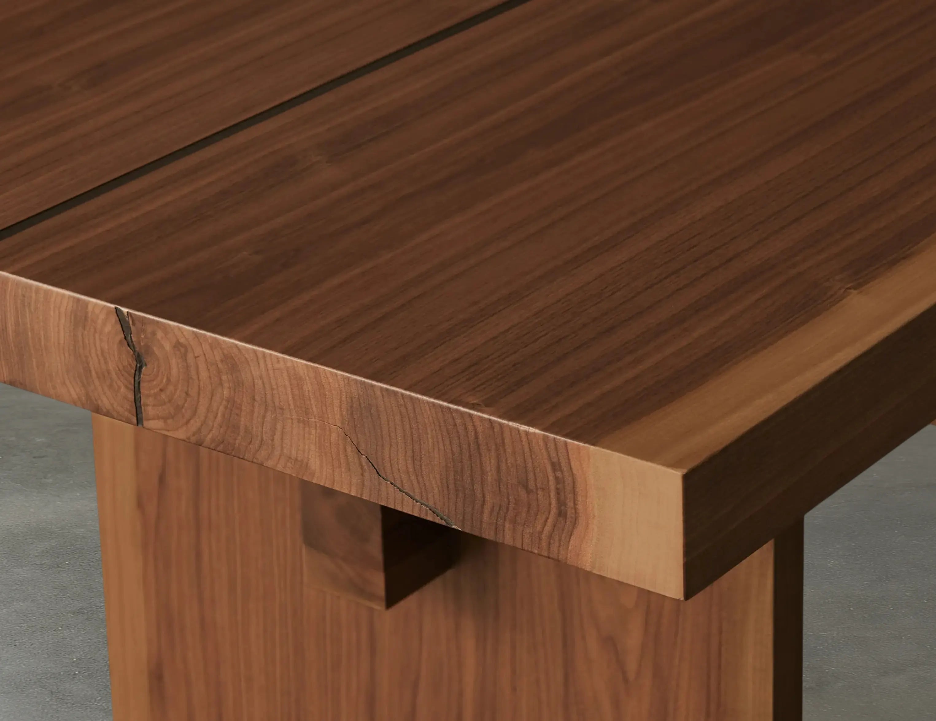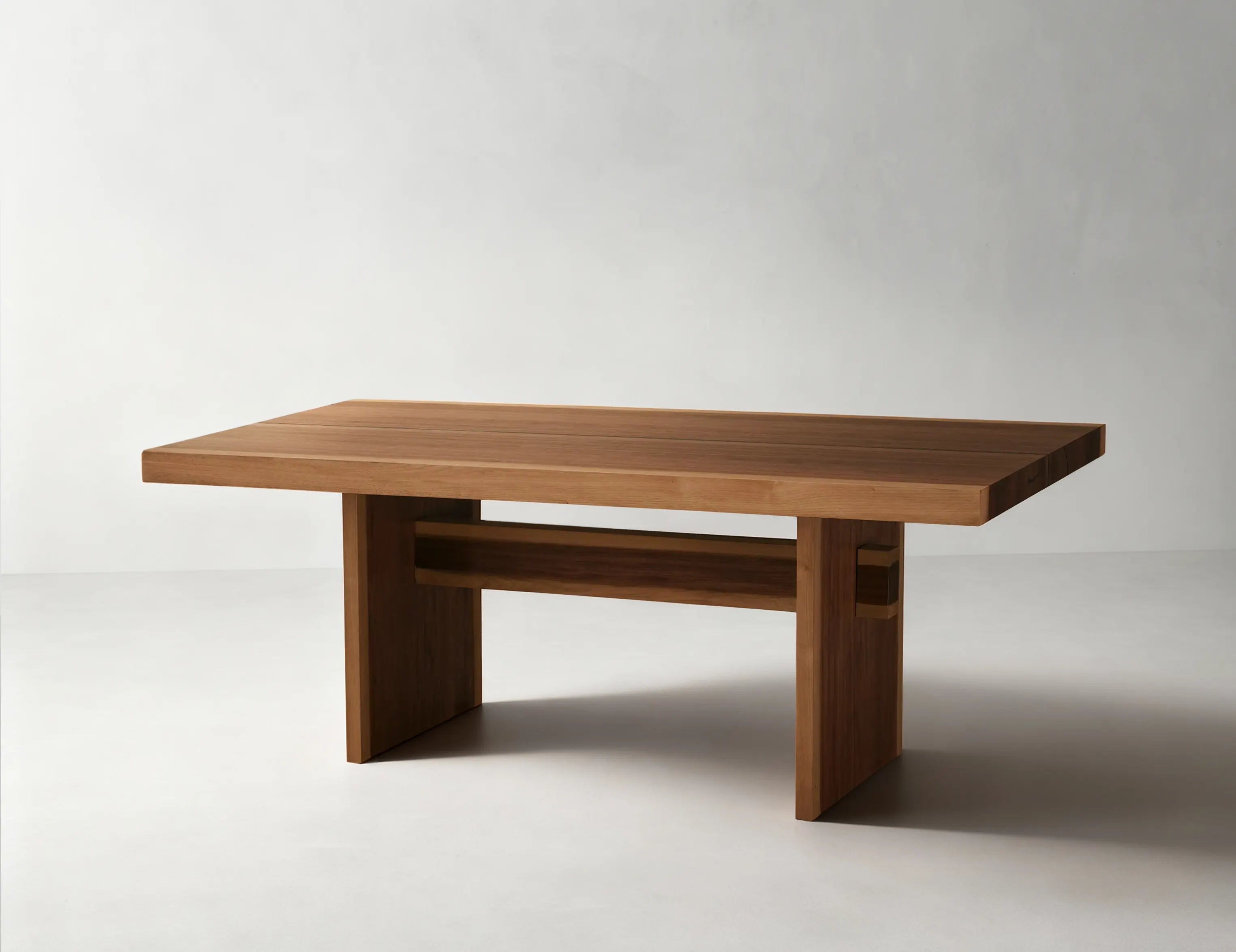 The Mihayo Dining Table brings the quiet beauty of natural wood into a modern, sculptural form. Inspired by the rich tones of wine-soaked oak and the soft warmth of sapwood, it features a bold silhouette crafted with time-honored techniques. Each piece is built in Romania by a family of artisans who layer, carve, and finish the wood entirely by hand—a process that takes days and leaves every table with its own character.