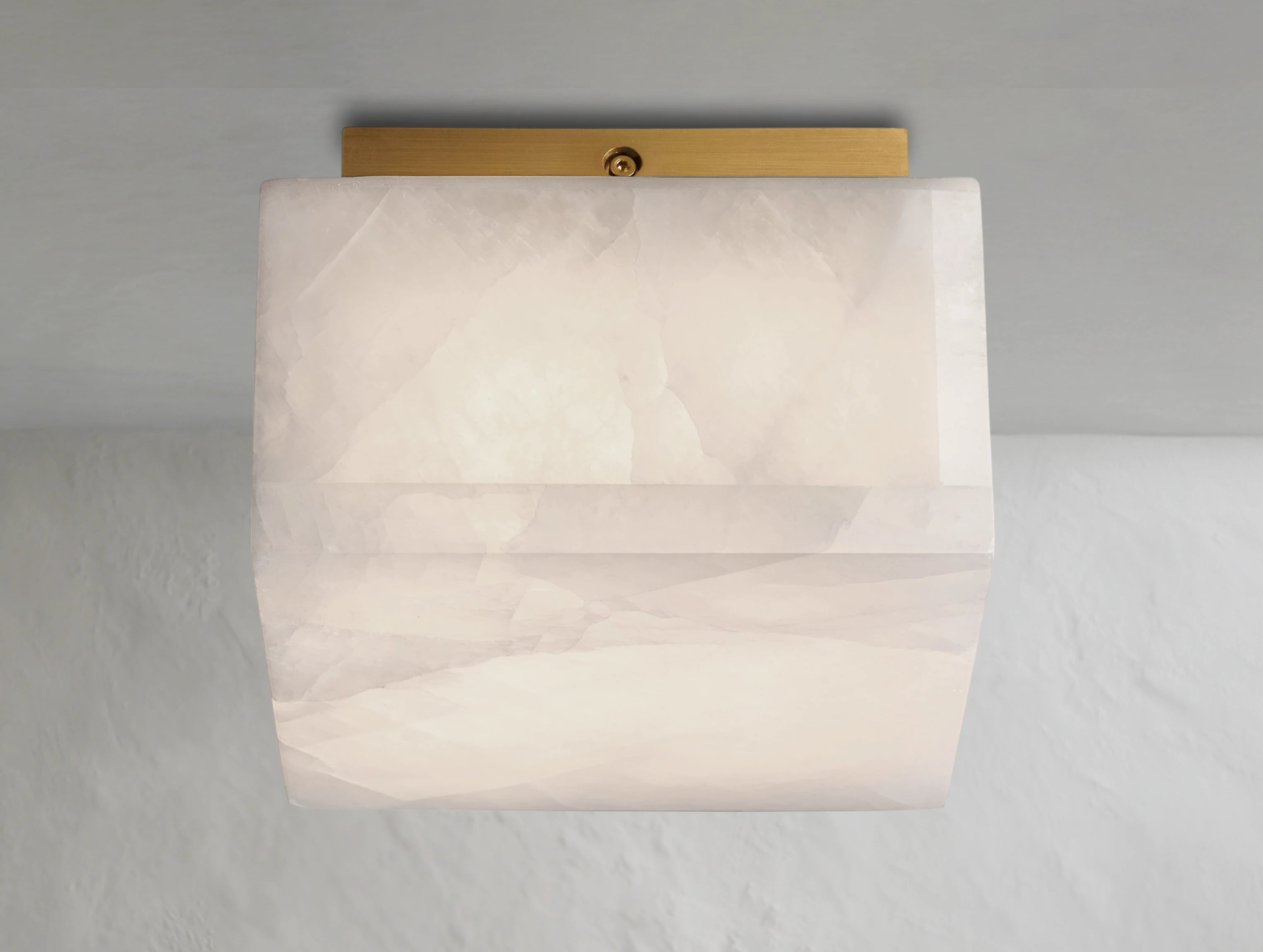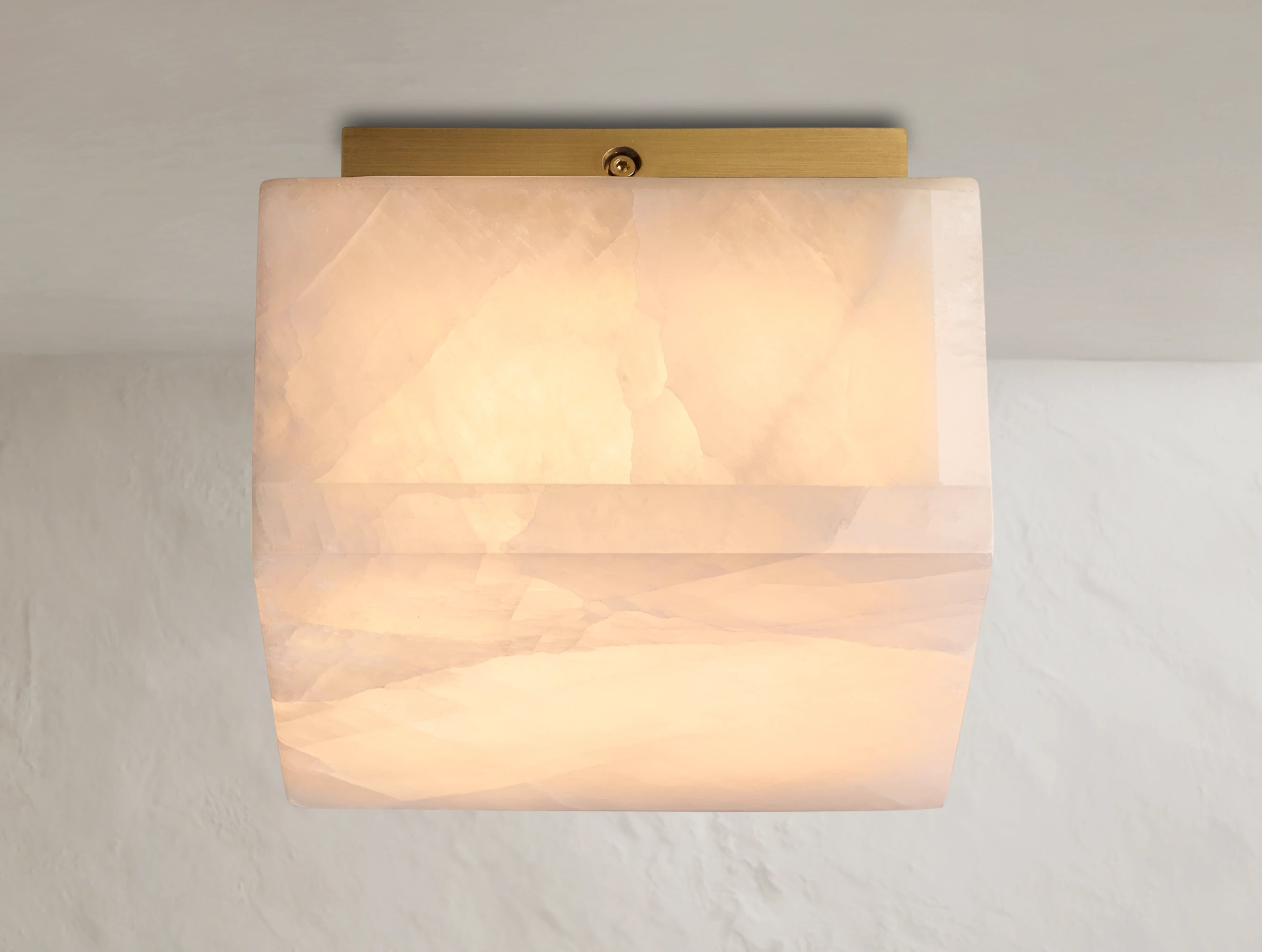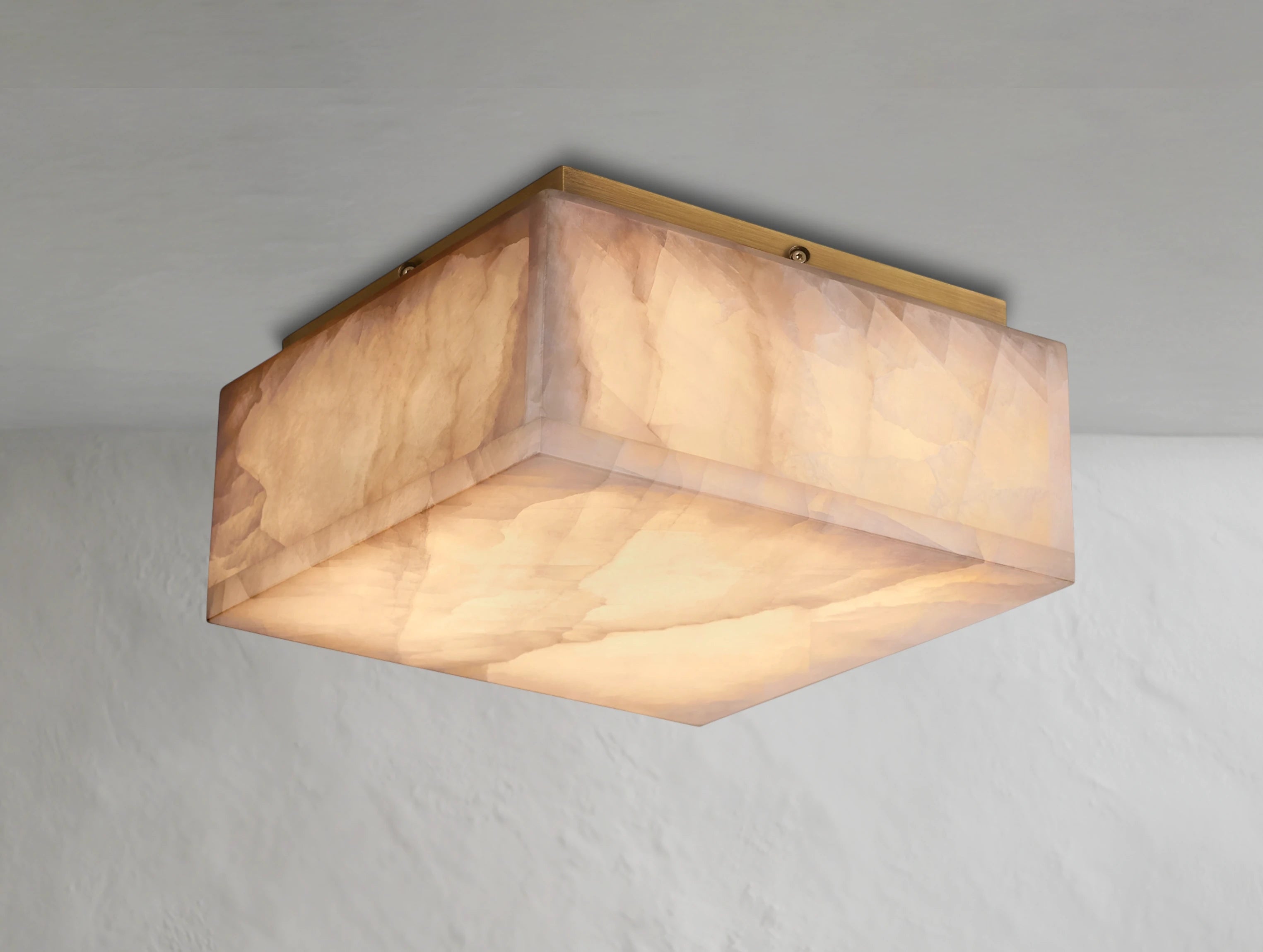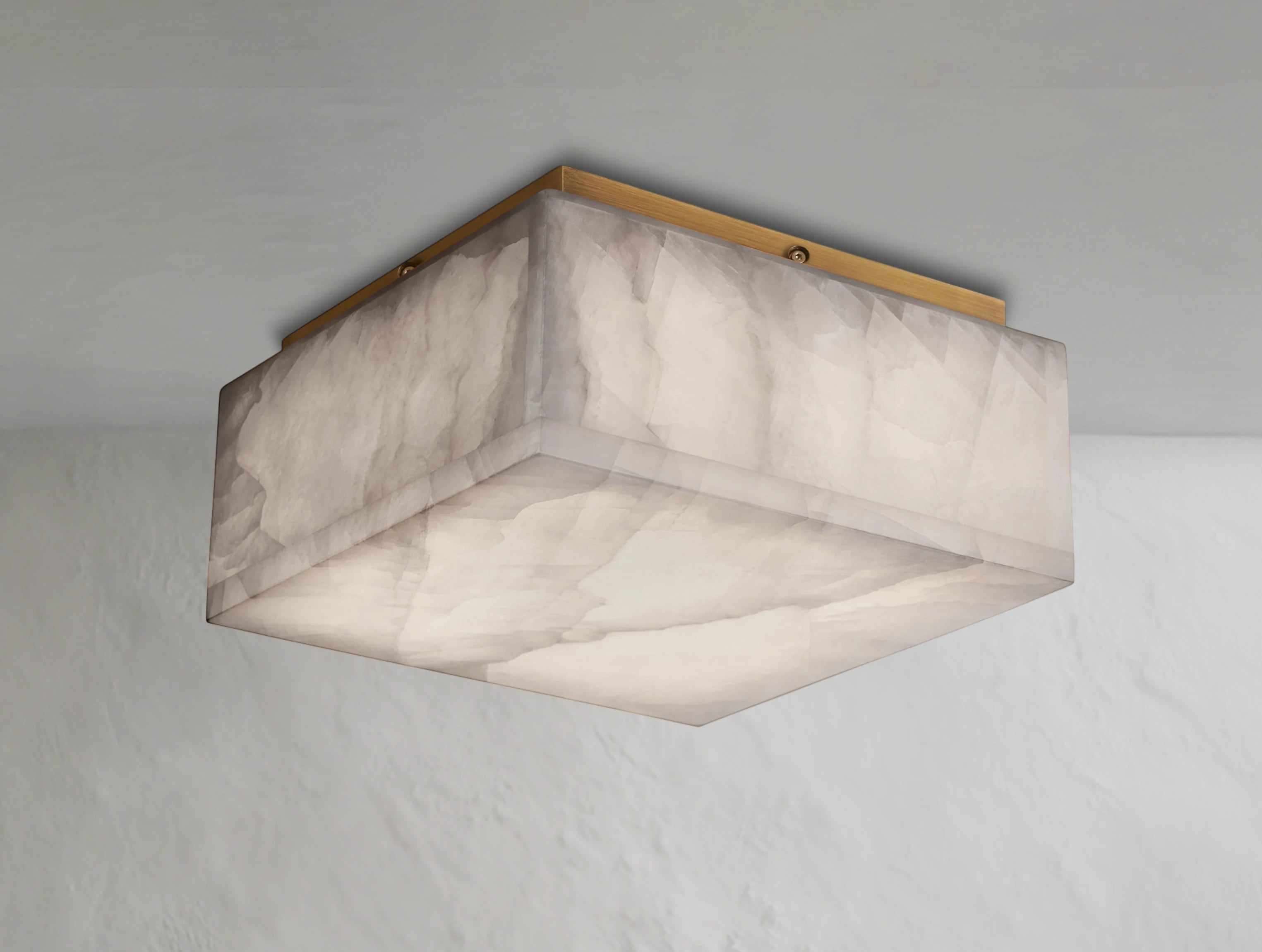 Modern in shape yet timeless in character, the Square flushmount highlights the luminous beauty of calcite stone. Handcrafted and polished to perfection, each seamless surface glows with a warm radiance that enhances the stone’s natural veining. Available in three sizes, this versatile flushmount is ideal for hallways, bathrooms, or living areas, bringing both elegance and functionality. Every piece is one of a kind.