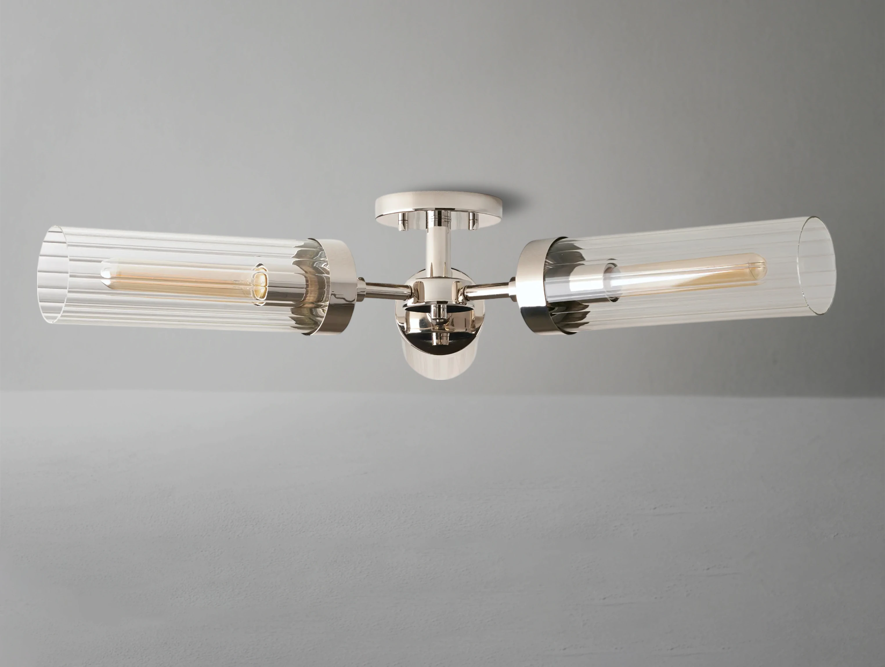 The Sarina Flush Mount balances vintage inspiration with modern refinement. Its fluted glass shade diffuses a warm, inviting glow—ideal for bathrooms, entryways, or any space with lower ceilings.