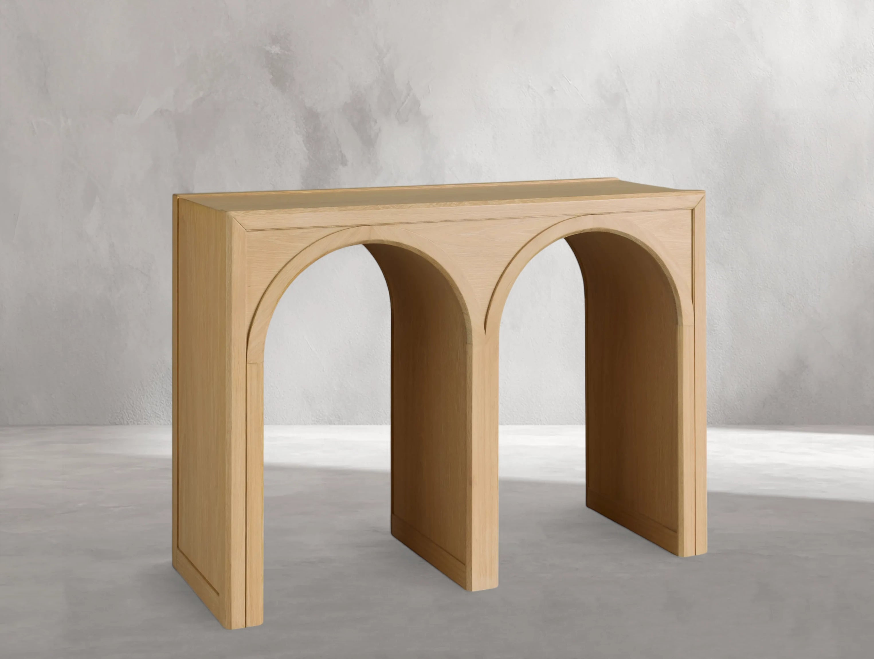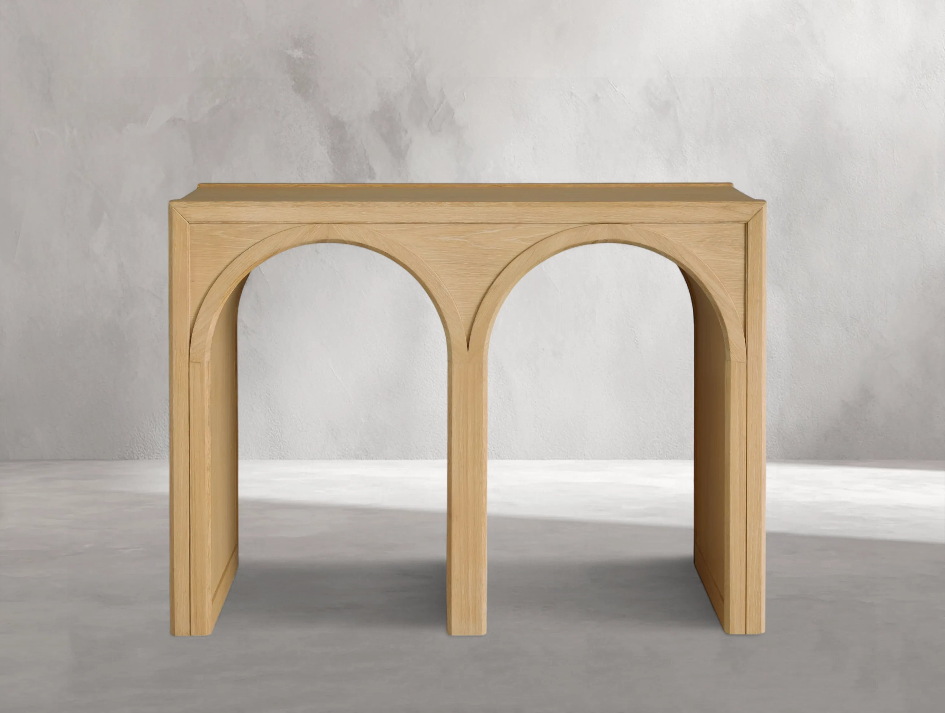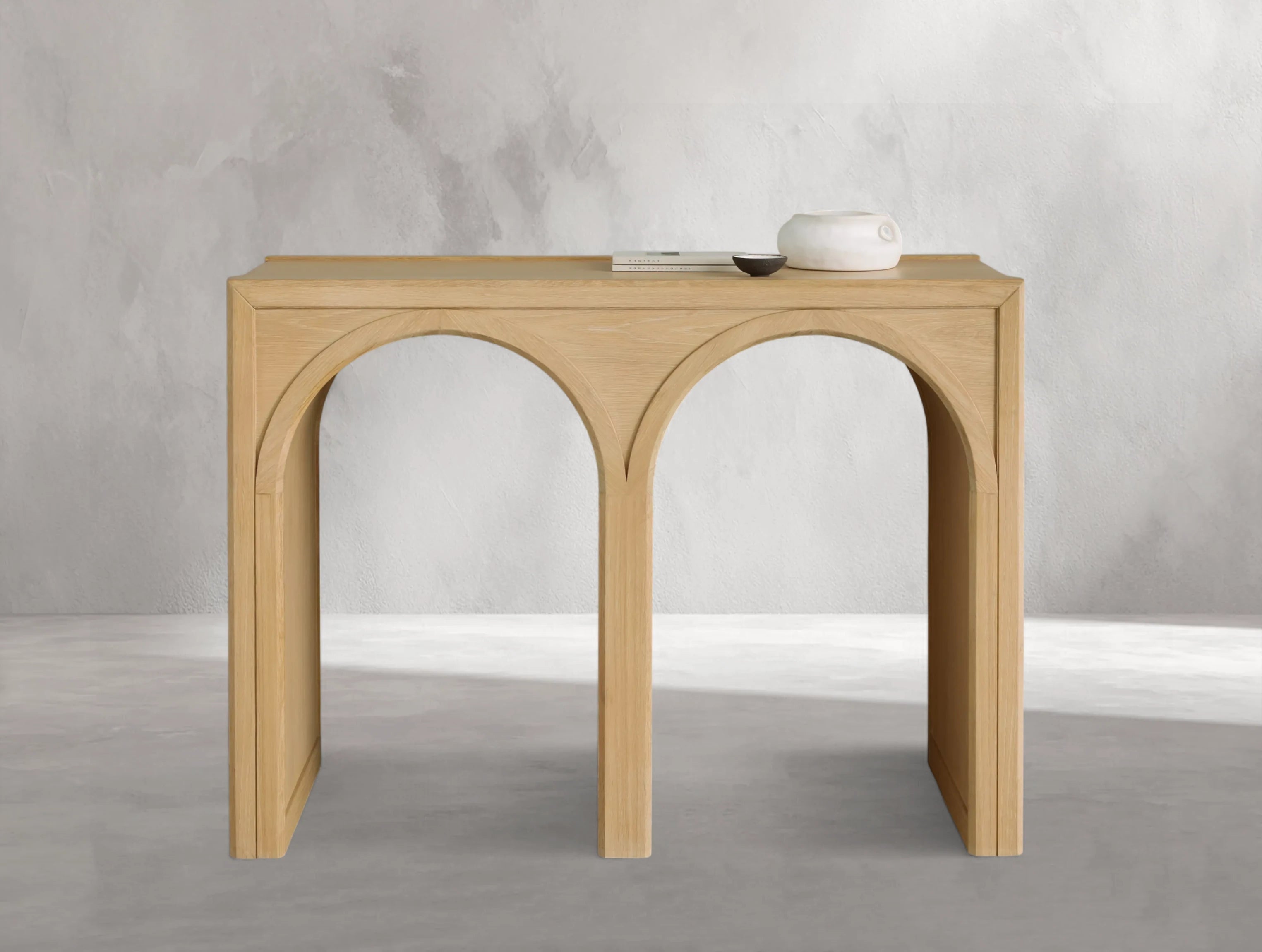 The Hottiy Console Table merges elegant curves with the refined beauty of FSC-certified European white oak, creating a statement piece with architectural charm. Expertly crafted with solid oak and premium oak veneers, each table is hand-finished to highlight the wood’s unique grain. The striking arched base features a contrasting interior finish, adding visual depth and timeless character. Perfect for an entryway, behind a sofa, or as a display surface, it combines style, craftsmanship, and versatility.