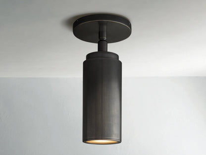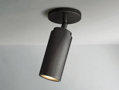 A refined reinterpretation of the 1970s can light, this pivoting flushmount combines clean geometry with modern functionality. Crafted of solid brass with luxe finishes, the design features a ball-joint swivel that allows the shade to pivot up to 18°, directing light exactly where it’s needed. Both understated and versatile, it brings sculptural elegance to bathrooms, hallways, or sheltered outdoor spaces.