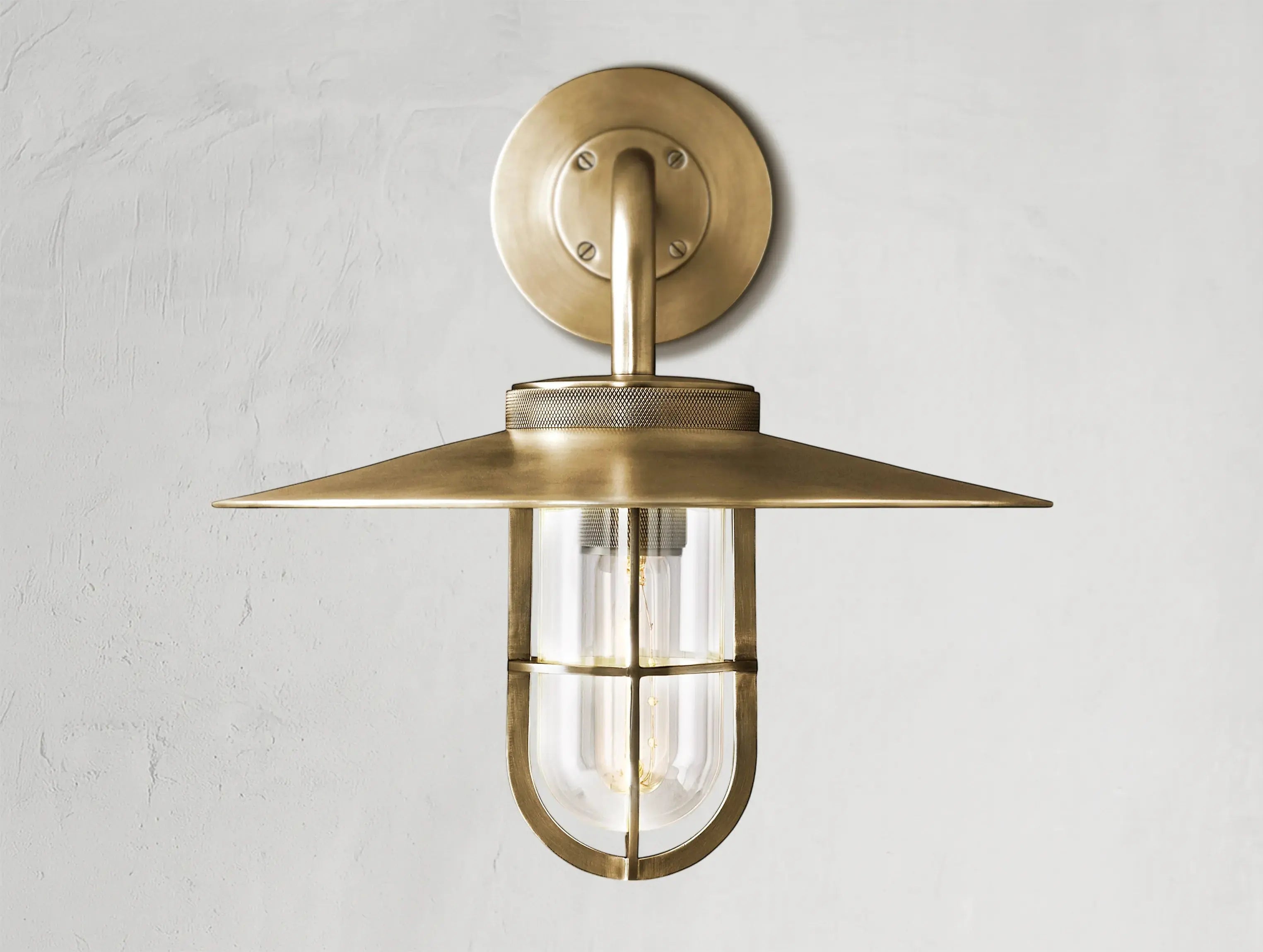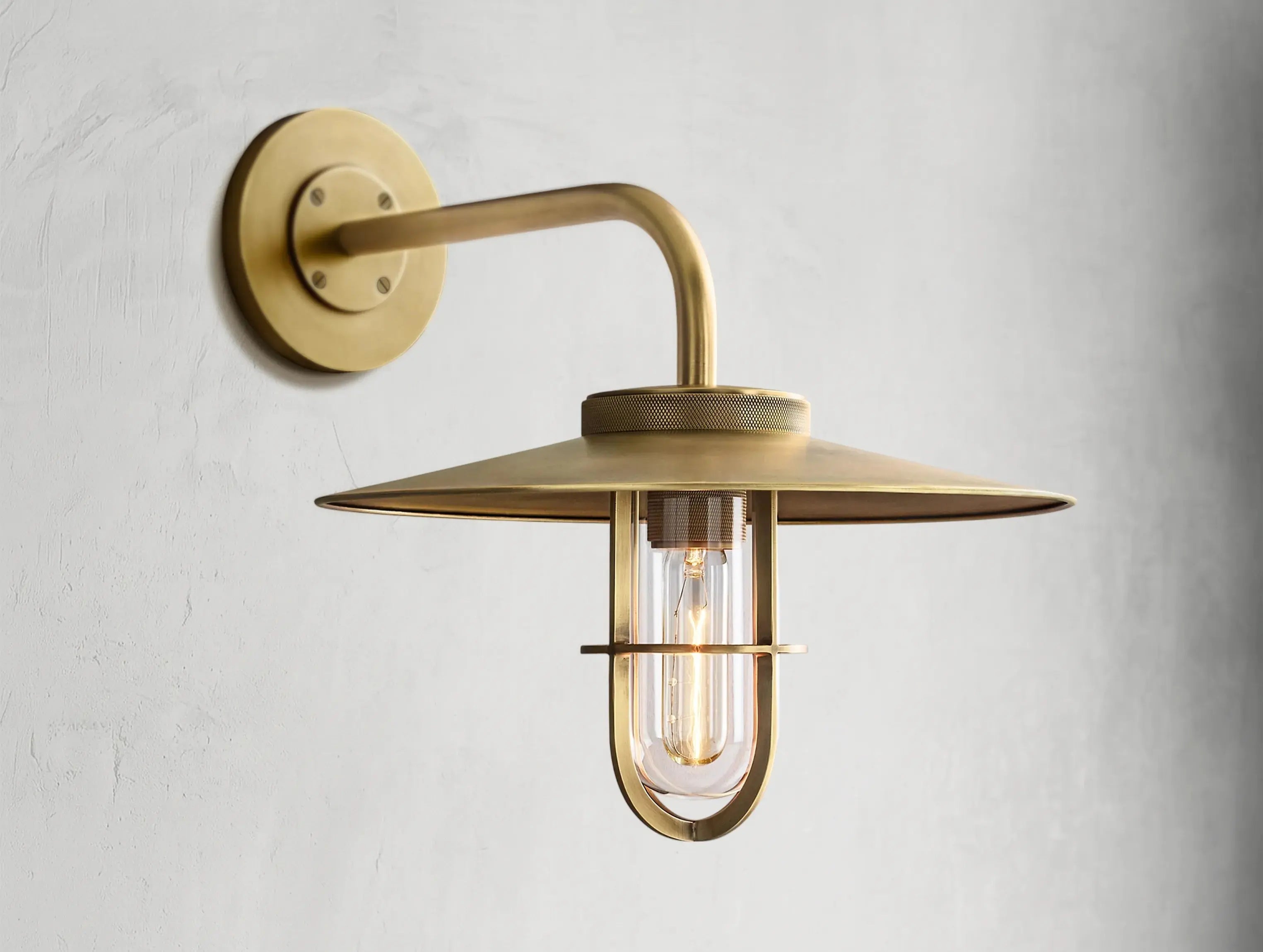 Function elevated to form. The Unilitaire Barn Outdoor Sconce by Ardenel reinterprets the classic barn light with sculptural intention. Designed by Ian K. Fowler, the fixture features industrial elements—a knurled socket, exposed screws, and protective light cage—refined through precise proportions and expert craftsmanship. Suitable for wet-rated environments, it brings considered utility to both indoor and outdoor spaces.
