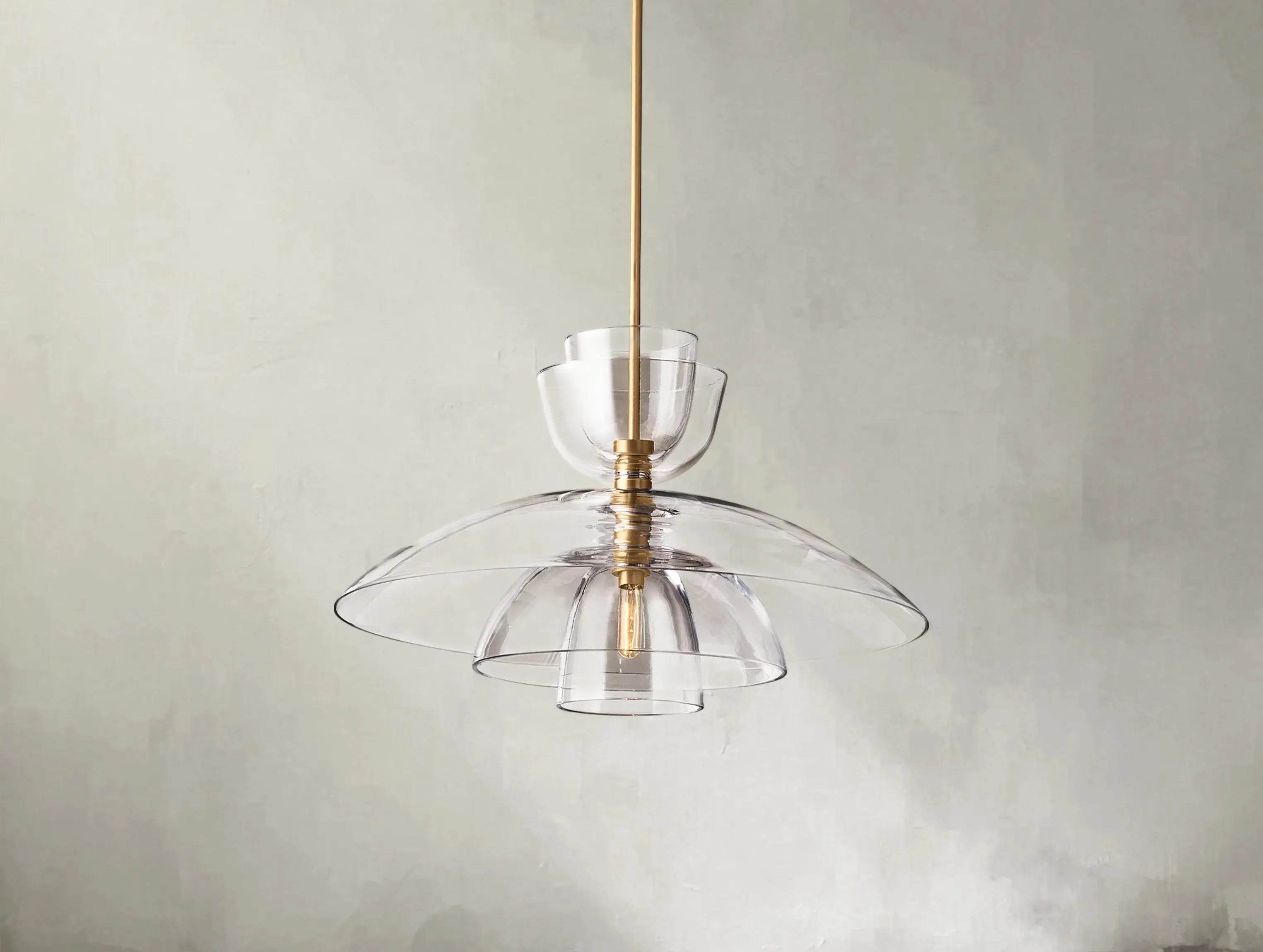 Inspired by late 19th-century Scandinavian design, the Blum Grand Pendant captures the quiet elegance of nature through glass. Layered like petals in bloom, each concentric dome is meticulously flame-polished by hand, creating smooth, luminous surfaces that echo the refined rhythm of early modernist form.