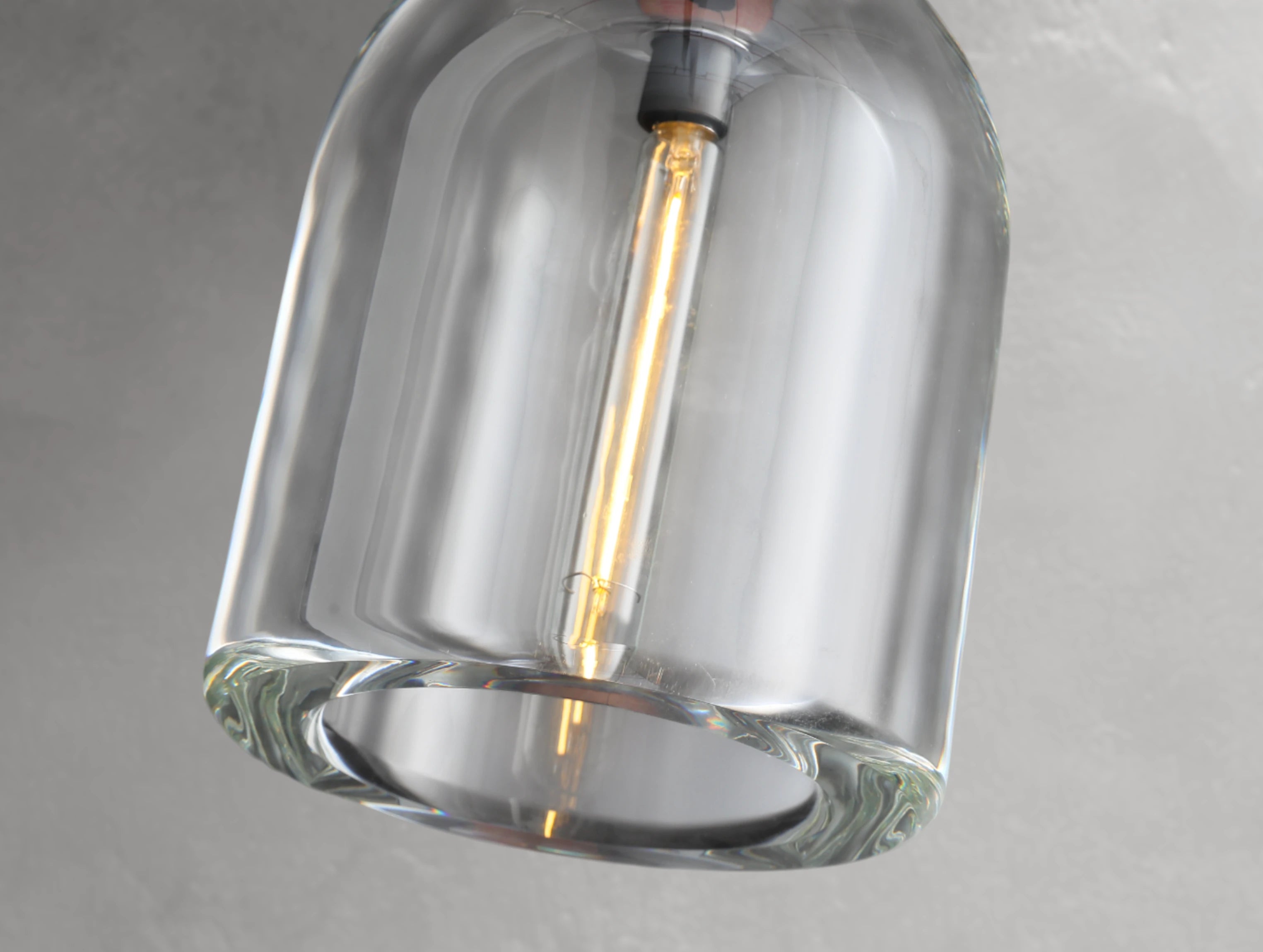 Inspired by 19th-century botanical vessels, the Borger Cloche Pendant is a study in timeless craftsmanship. Each shade is formed from a monumental block of custom-cast crystal, cooled over 25 days, then lathe-carved and hand-polished for exceptional clarity. Paired with a handcrafted solid brass frame, this pendant offers both sculptural beauty and luminous presence. Available in 5", 8", and 10".