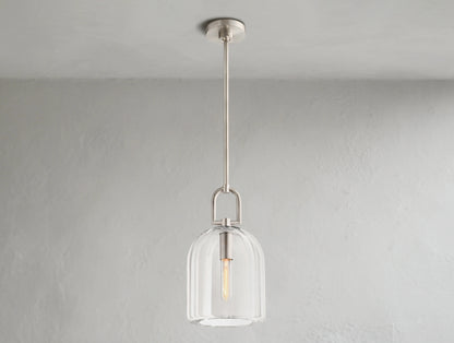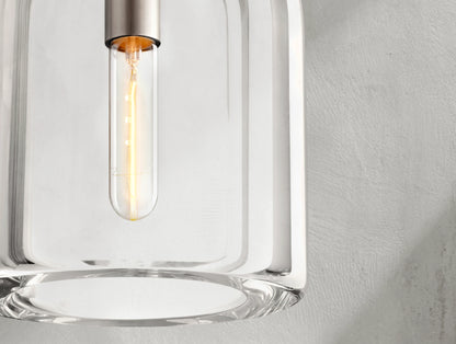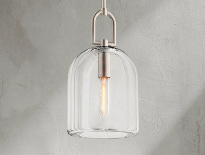 Inspired by 19th-century botanical vessels, the Borger Cloche Pendant is a study in timeless craftsmanship. Each shade is formed from a monumental block of custom-cast crystal, cooled over 25 days, then lathe-carved and hand-polished for exceptional clarity. Paired with a handcrafted solid brass frame, this pendant offers both sculptural beauty and luminous presence. Available in 5", 8", and 10".