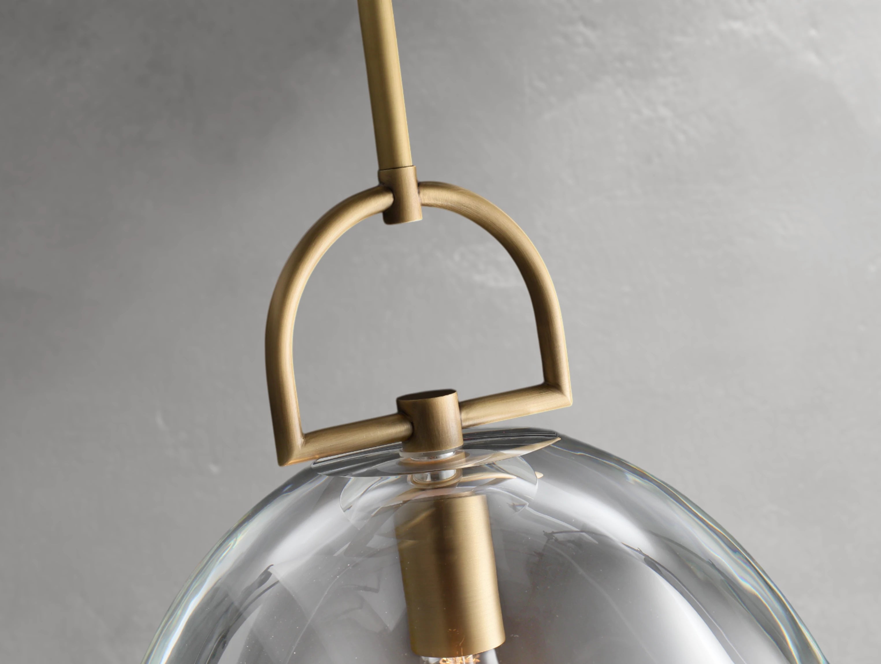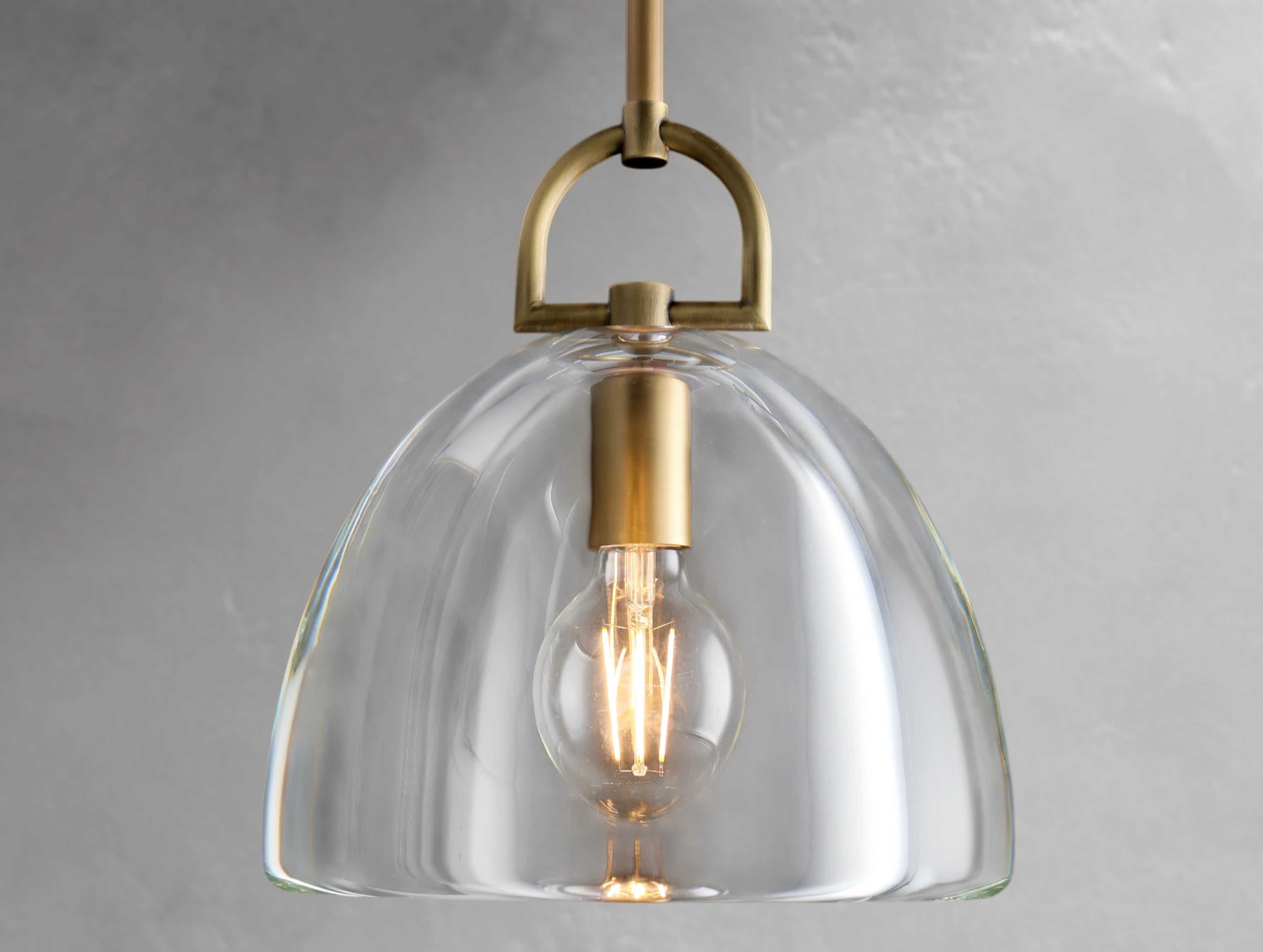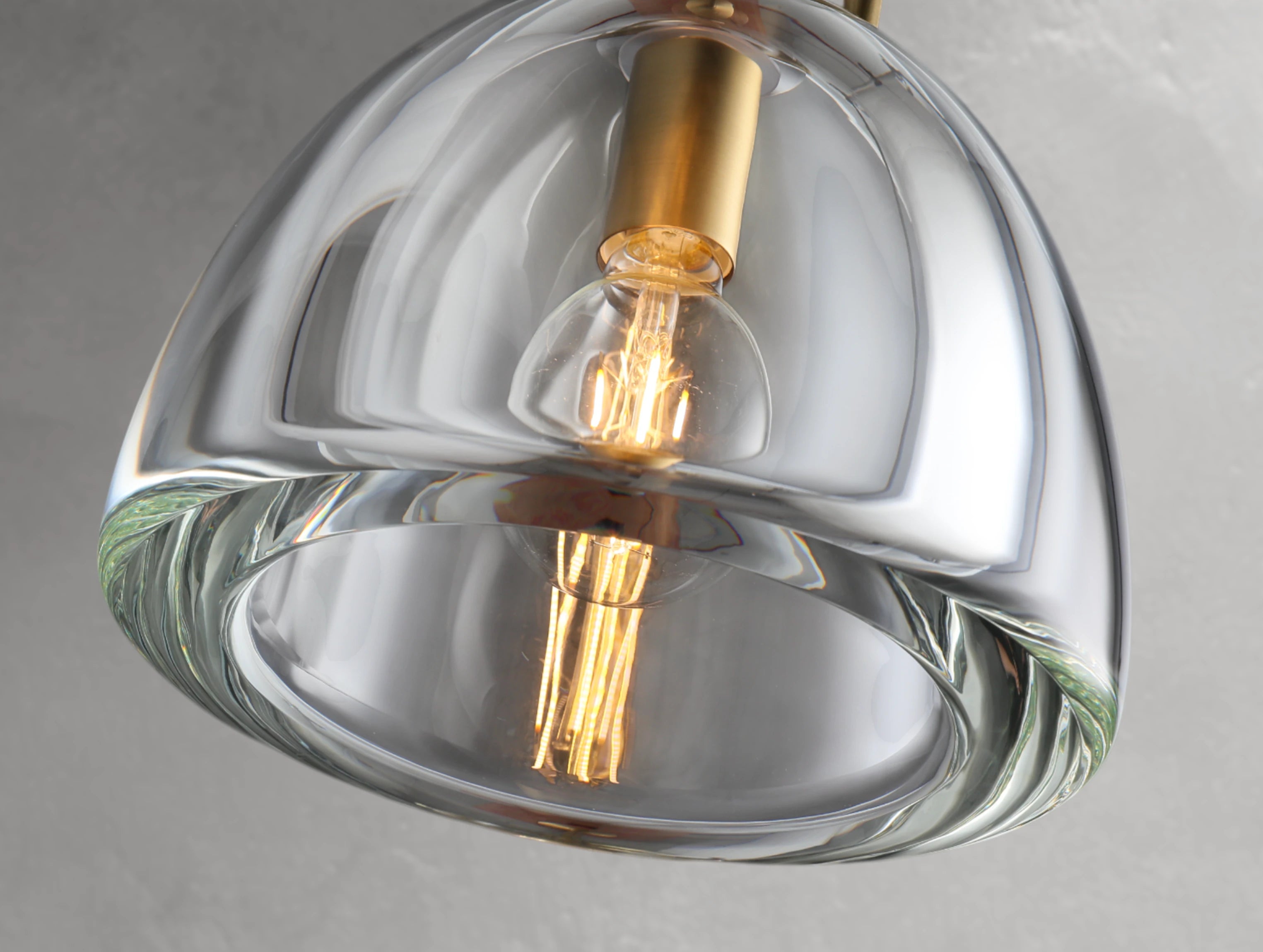 The Borger Dome Pendant draws inspiration from 19th-century botanical vessels, combining timeless form with extraordinary craftsmanship. Each shade is cut from a monumental block of custom-cast crystal, cooled for up to 25 days, then lathe-carved and hand-polished to achieve remarkable clarity. Finished with a handcrafted solid brass frame, this pendant balances sculptural presence and refined illumination.