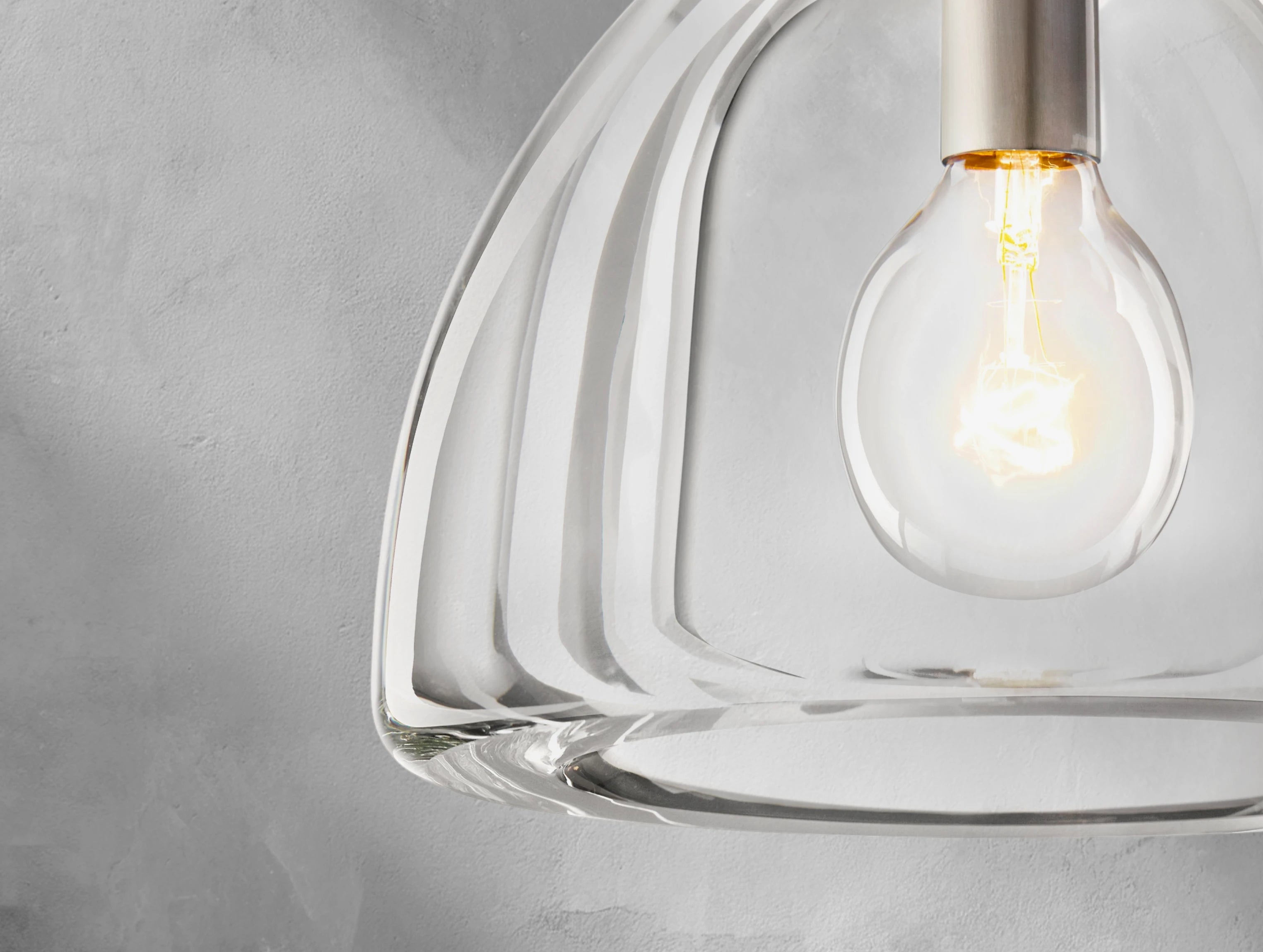 The Borger Dome Pendant draws inspiration from 19th-century botanical vessels, combining timeless form with extraordinary craftsmanship. Each shade is cut from a monumental block of custom-cast crystal, cooled for up to 25 days, then lathe-carved and hand-polished to achieve remarkable clarity. Finished with a handcrafted solid brass frame, this pendant balances sculptural presence and refined illumination.