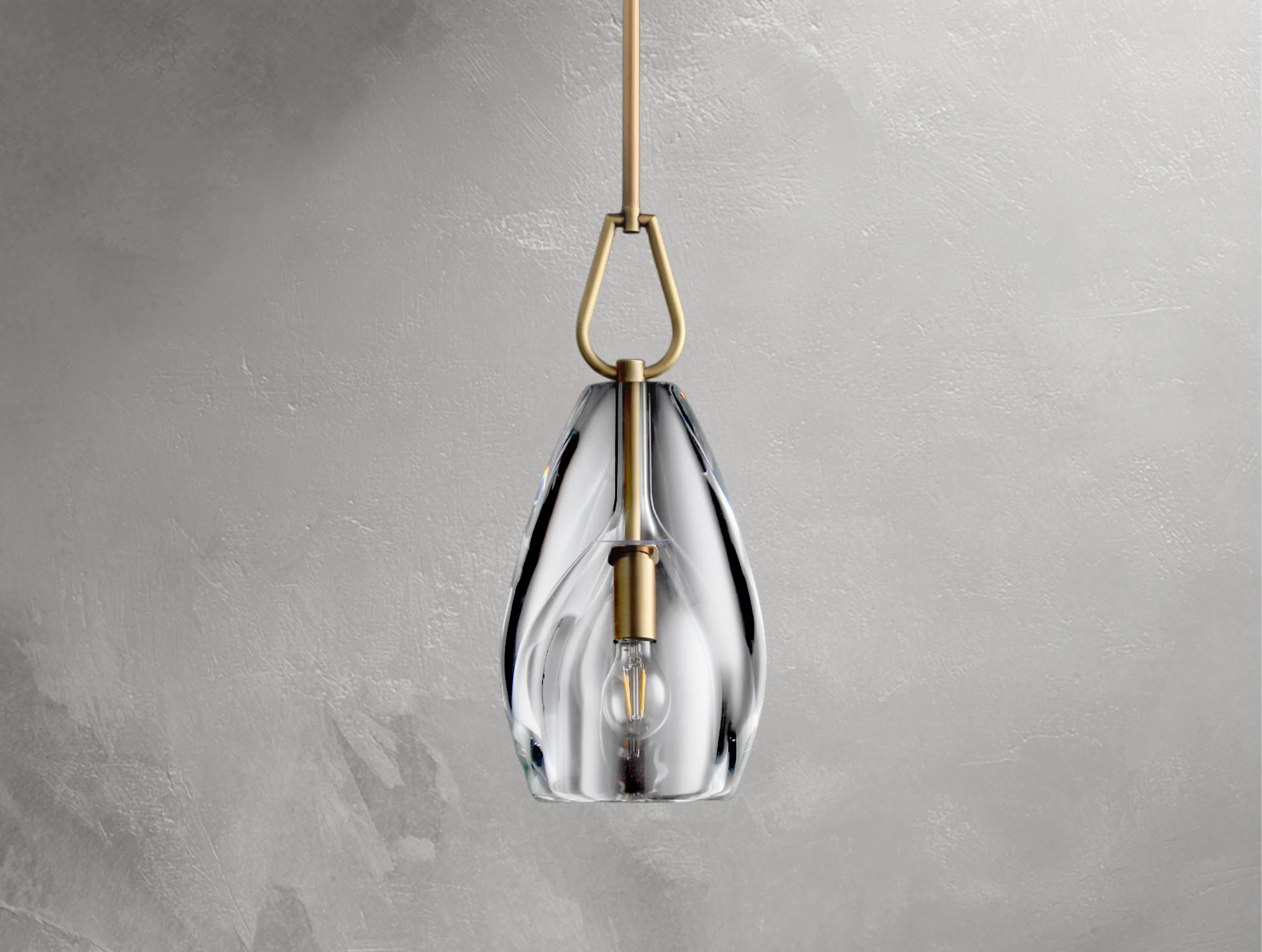 The Borger Flute Pendant captures timeless elegance with its refined silhouette and masterful craftsmanship. Each shade is carved from a monumental block of custom-cast crystal, cooled for up to 25 days, then lathe-turned and hand-polished to achieve remarkable clarity. Paired with a handcrafted solid brass frame, this pendant adds a touch of sculptural beauty and luminous depth to any room. Available in 6", 8", and 9".