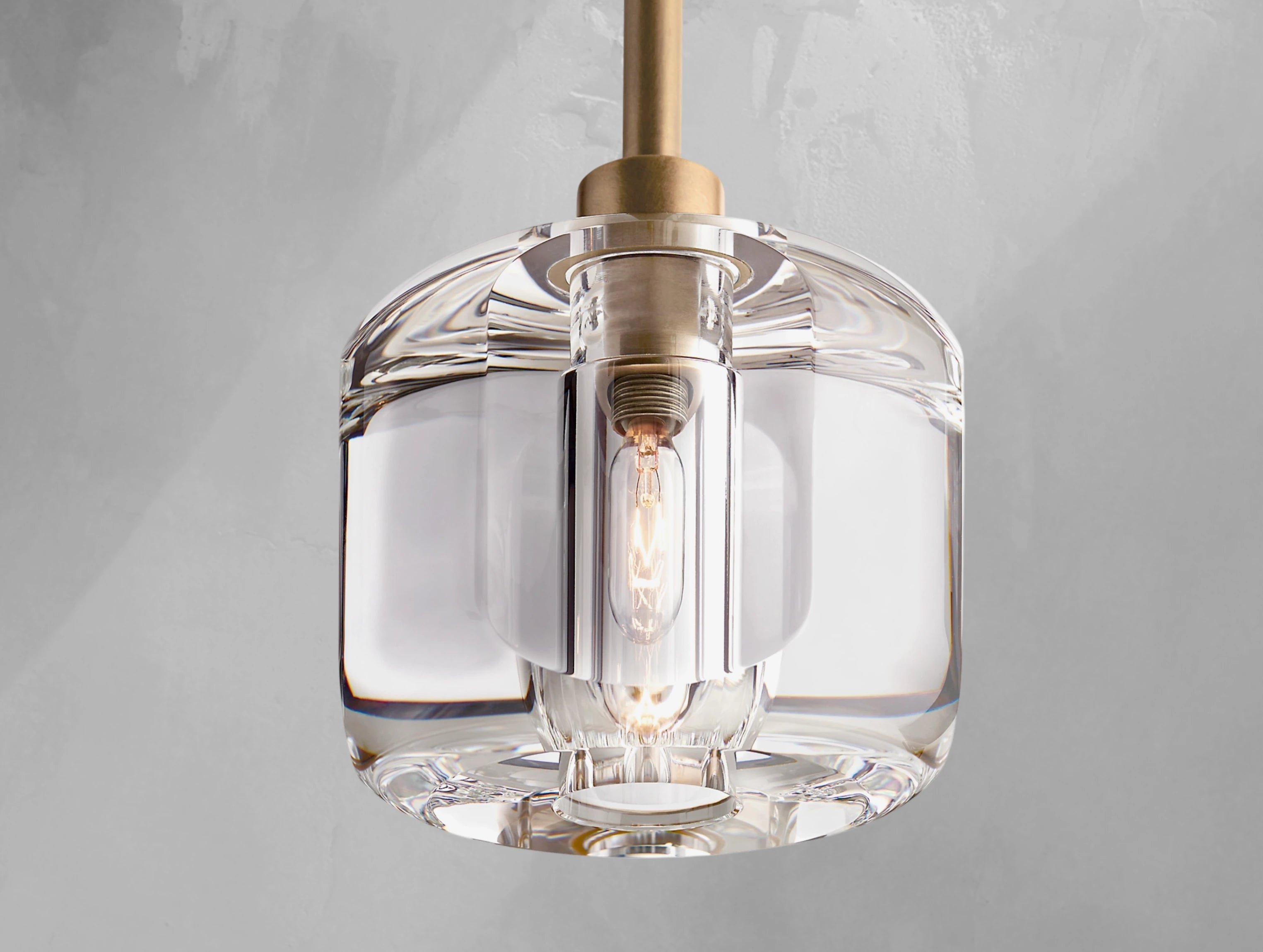 The Demanette Pendant distills Ardenel’s crystal artistry into its most refined form. Suspended in a signature double-metal frame, a single K9 crystal panel—hand-polished and oval-faceted—refracts light with quiet brilliance. Perfect on its own or installed in multiples, this compact pendant brings elegant glow to kitchen islands, bedside corners, or hallway vignettes.