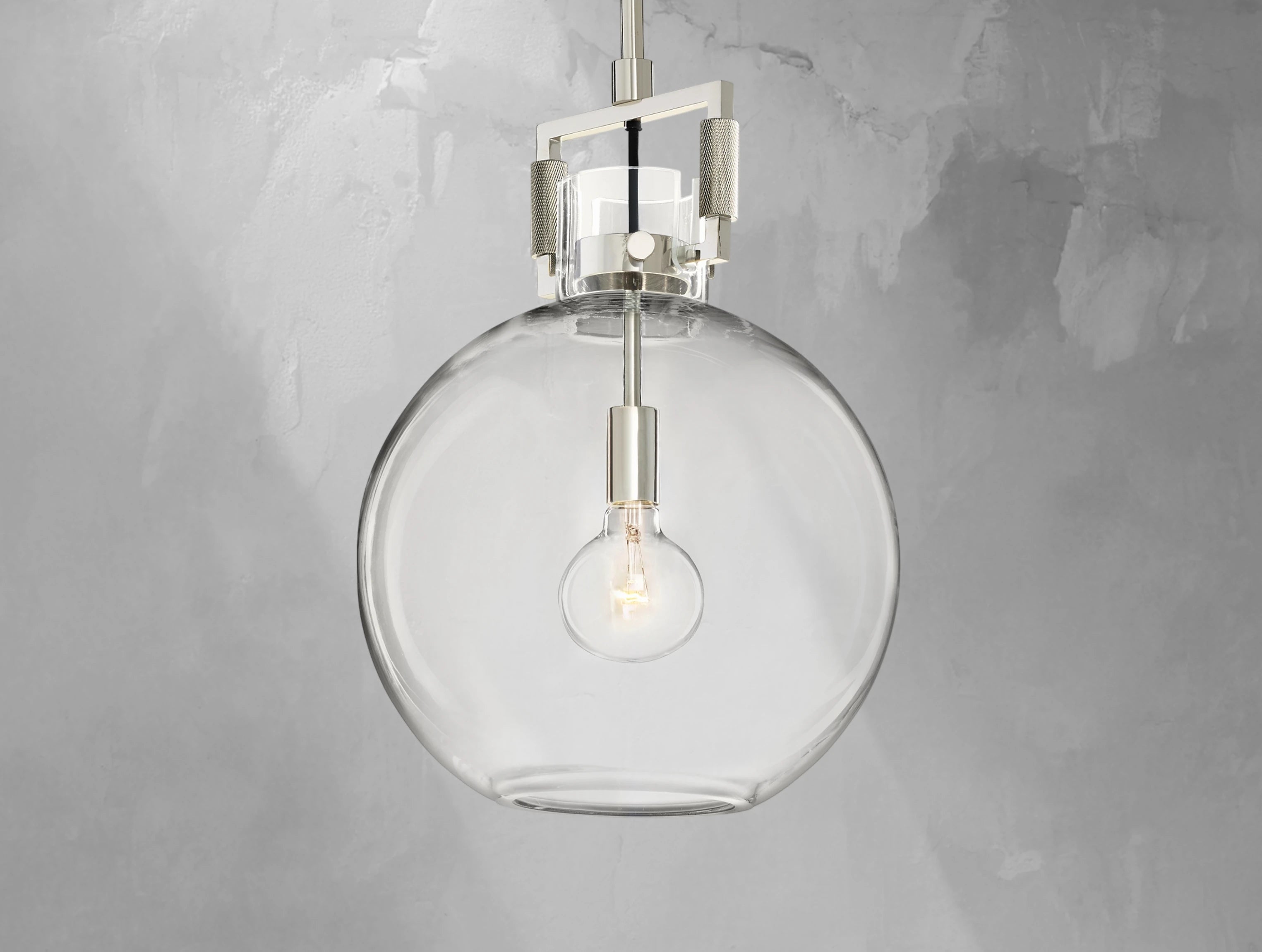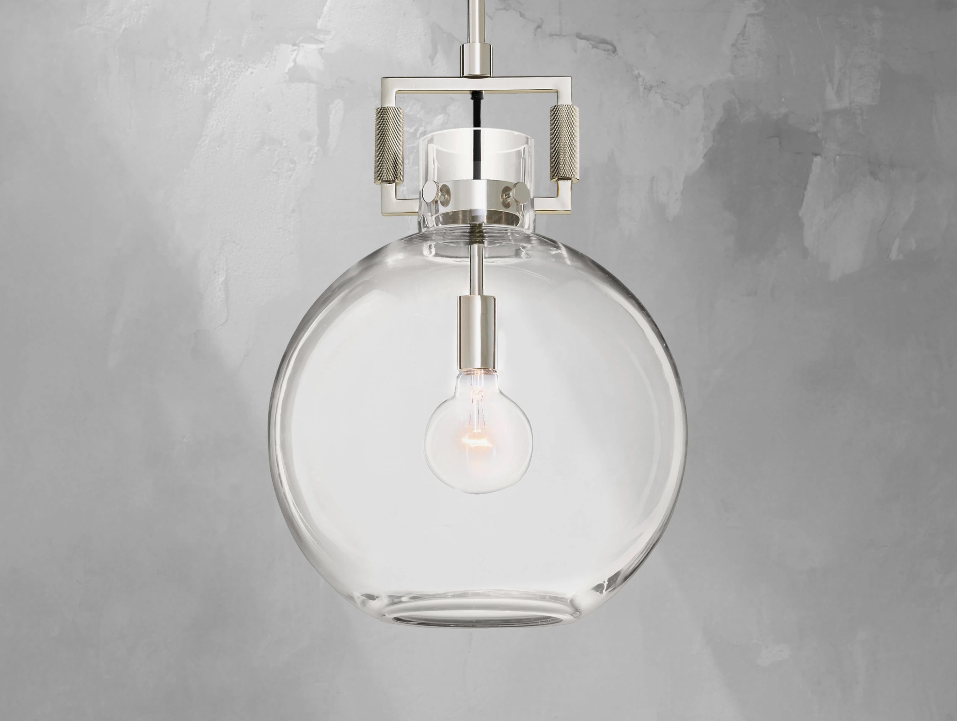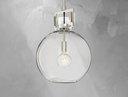 A sculptural take on industrial design, the Mechanic Globe Pendant plays with contrasts—solid and transparent, heavy and light. Its bold metal yoke reveals mechanical inspiration, while the clear, mouthblown glass globe offers a weightless counterpoint. Inside, a slender Edison bulb adds visual drama with glowing filaments. Meticulously crafted, each piece is subtly unique, making it ideal for kitchens, vanities, or hallways where form and function meet.