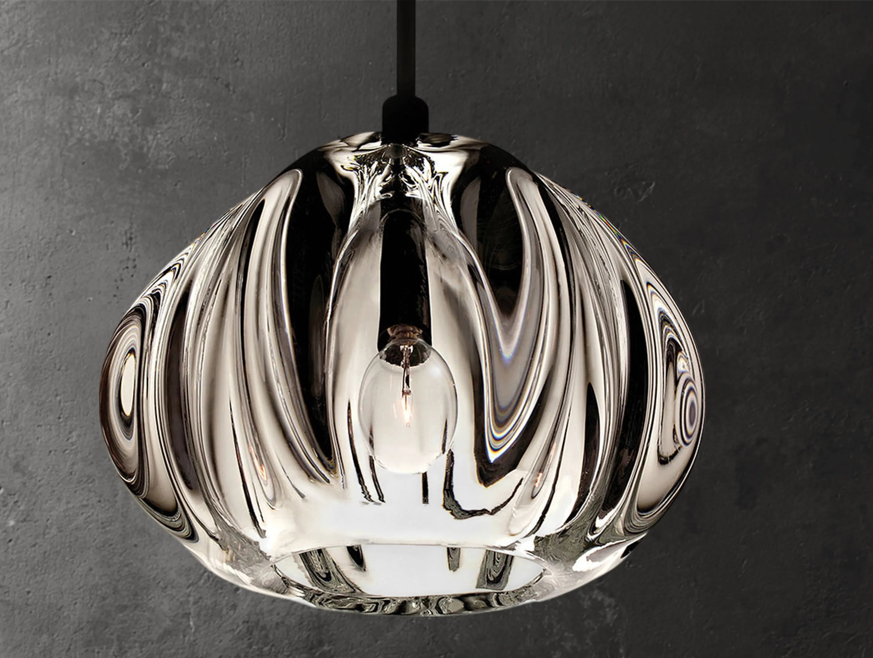 Hand-formed from molten crystal, the Pumpkin pendant glows with warmth and texture. Its curved, ribbed shape casts lively reflections—turning any space into a soft, glowing centerpiece.