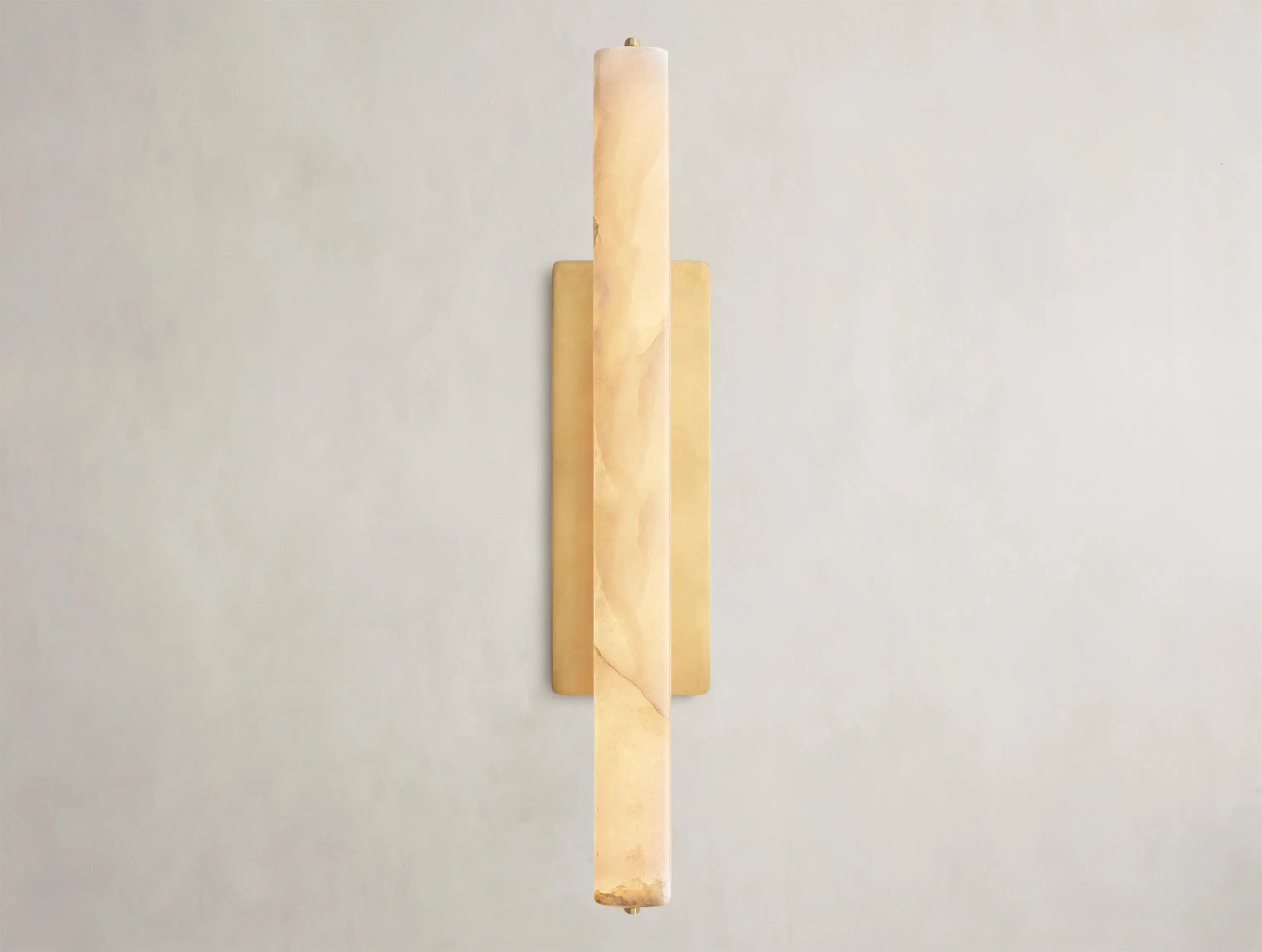 Inspired by 1960s Italian minimalism, the Ardubon Alabaster Sconce by Ardenel blends sculptural restraint with a warm, ethereal glow. A prism of natural Spanish alabaster is mounted on a handcrafted solid brass frame, radiating a candle-like light through the soft, translucent stone. Designed for versatility, it can be mounted vertically or horizontally — a refined lighting piece that elevates hallways, powder rooms, and intimate interiors.