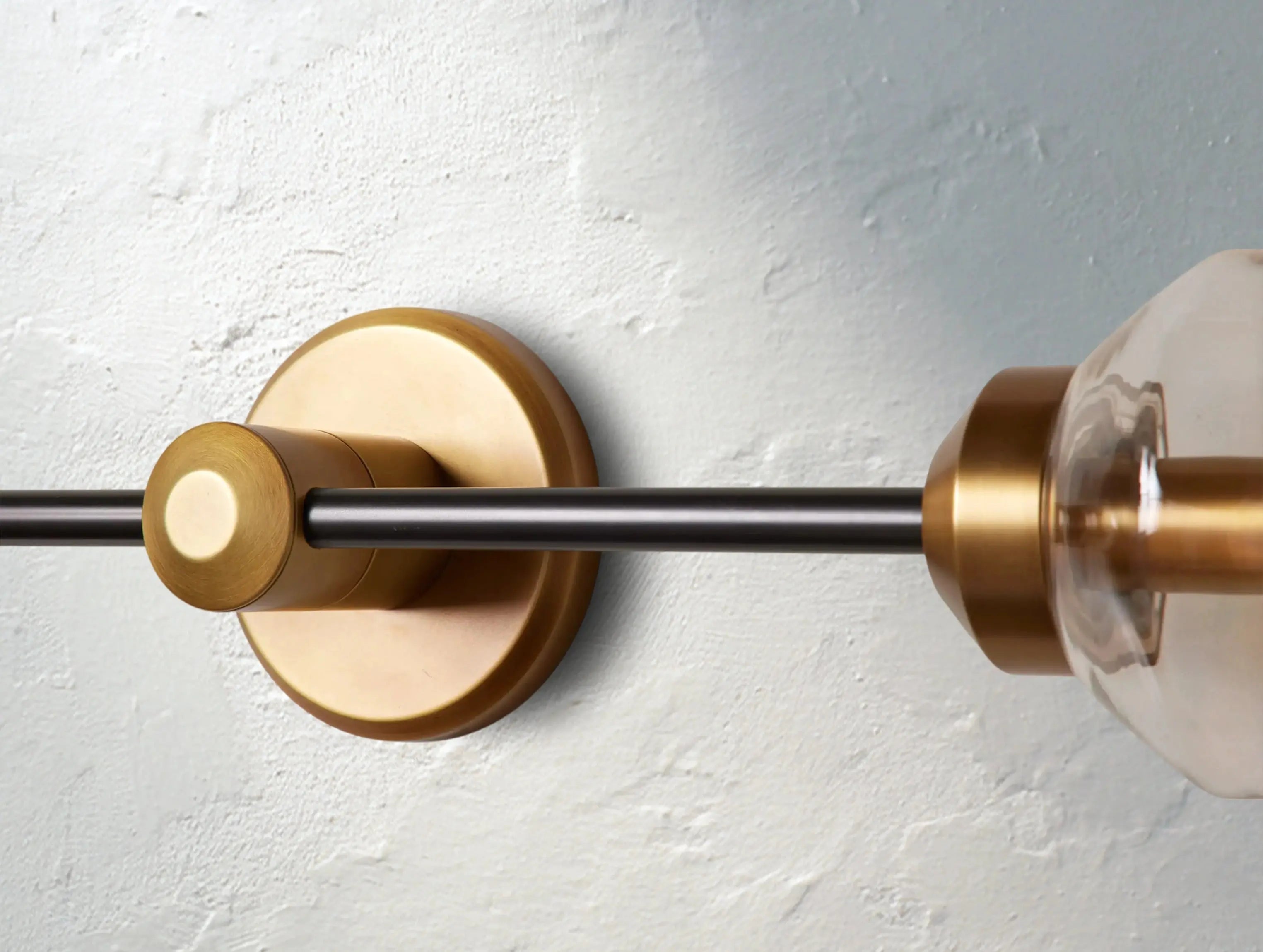 • Mouth-blown glass diffusers with brass accents