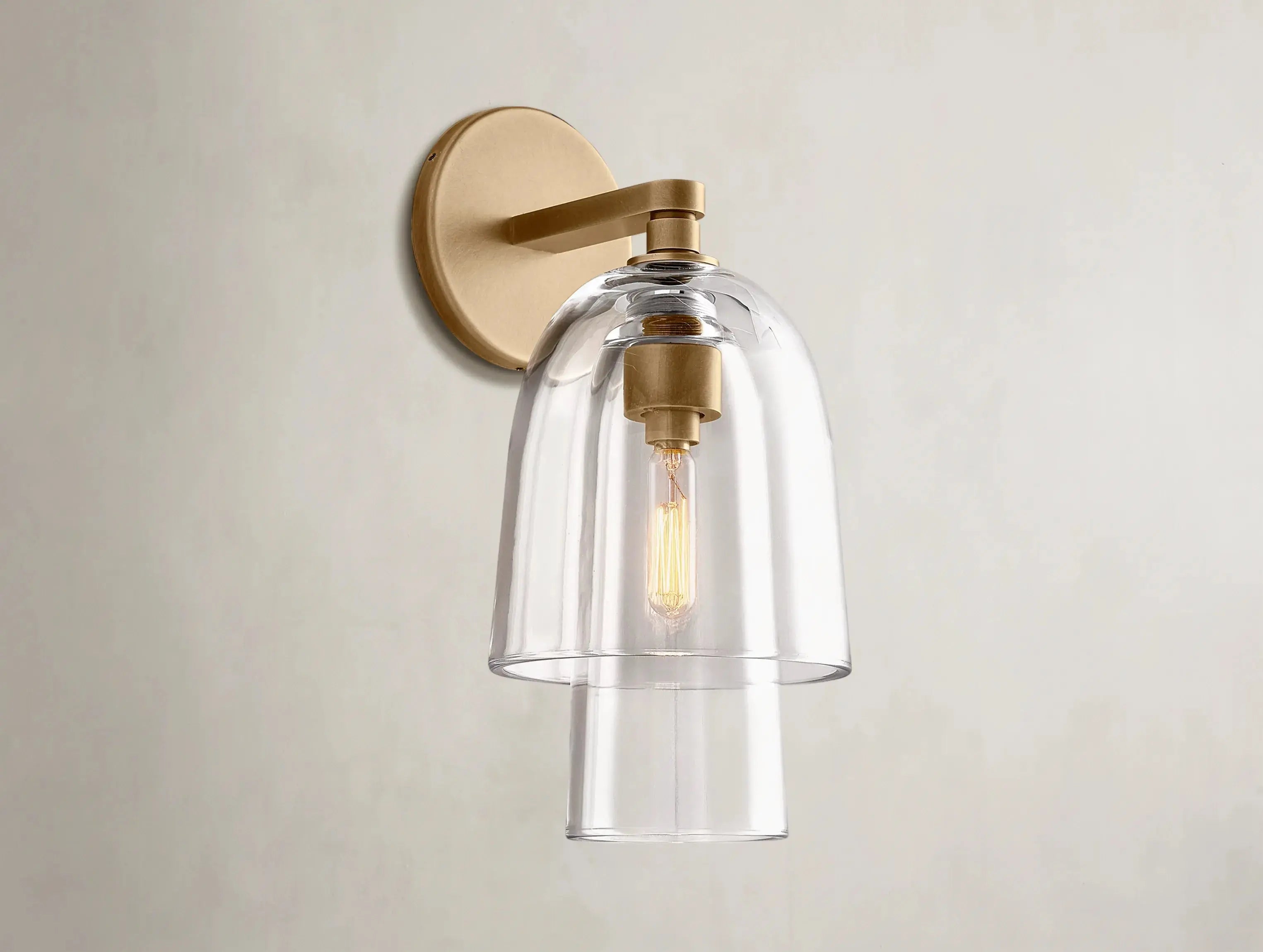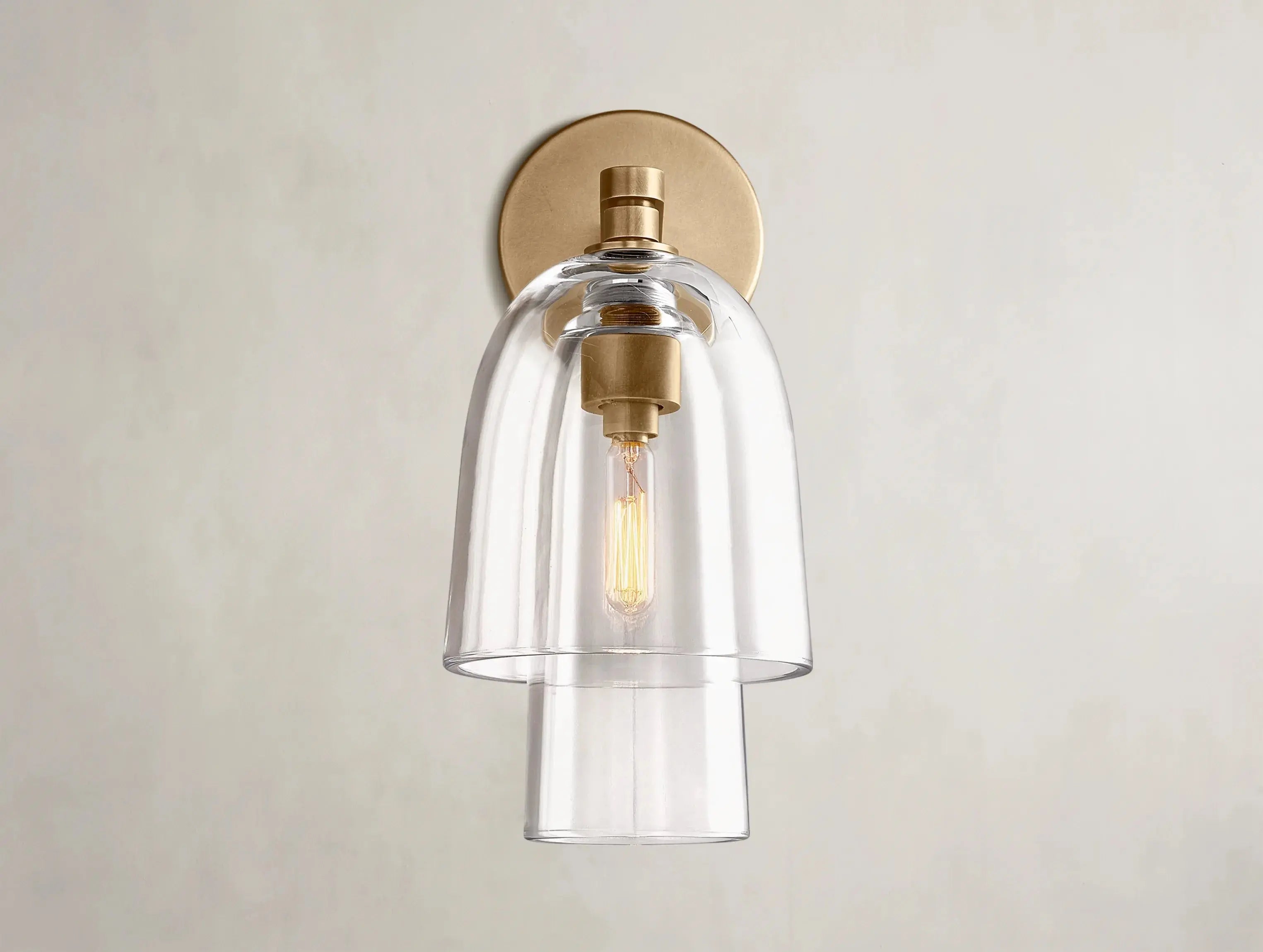 Drawing from late 19th-century Scandinavian design, the Blum Glass Flute Sconce by Ardenel captures the elegance of nature in bloom. Its hand-flame-polished glass shade recalls the graceful curve of a flower’s petal or a slender flute. Layered in concentric harmony and mounted on a minimalist steel base, it brings a soft radiance and sculptural rhythm to hallways, baths, or bedside spaces.