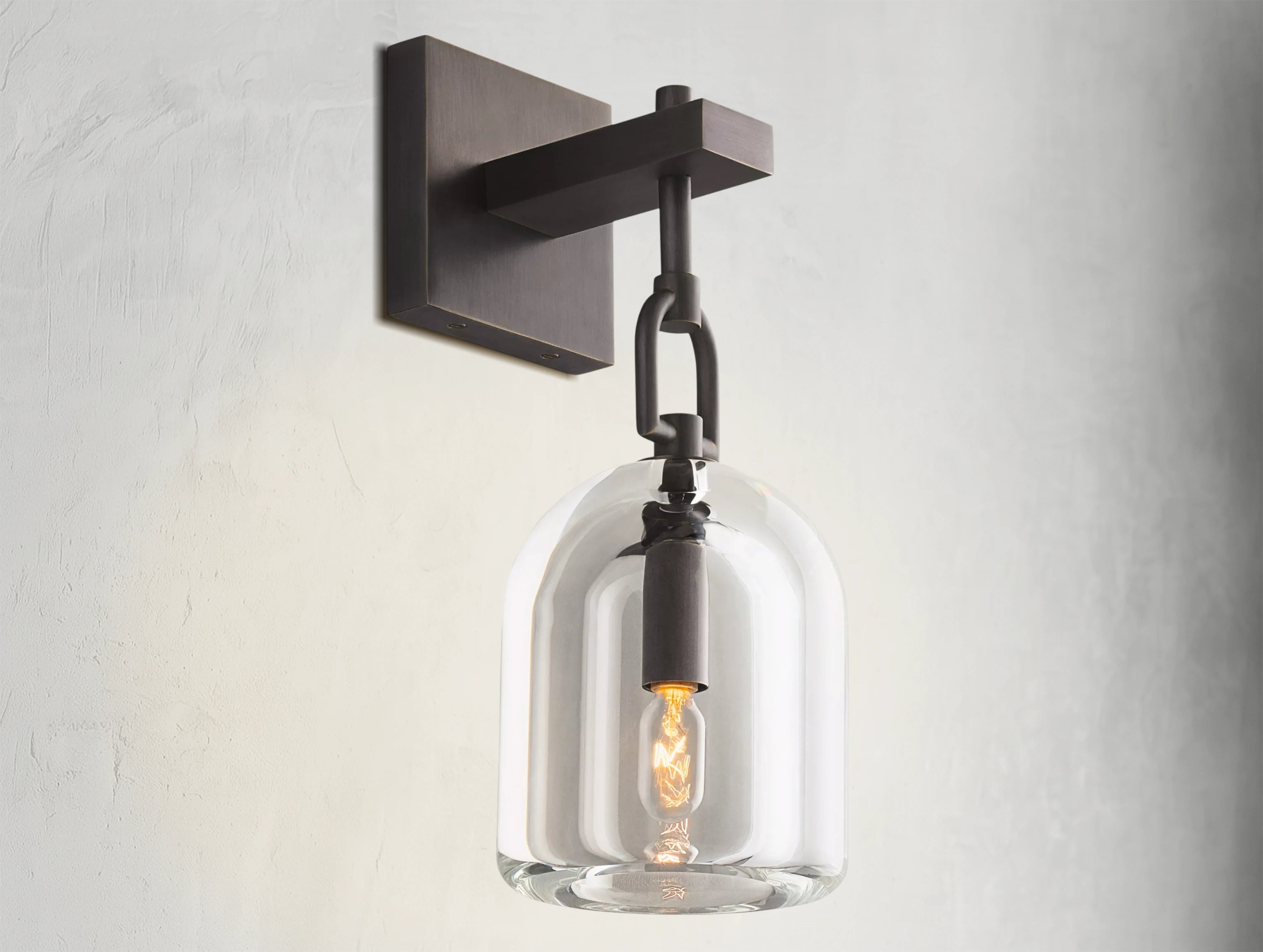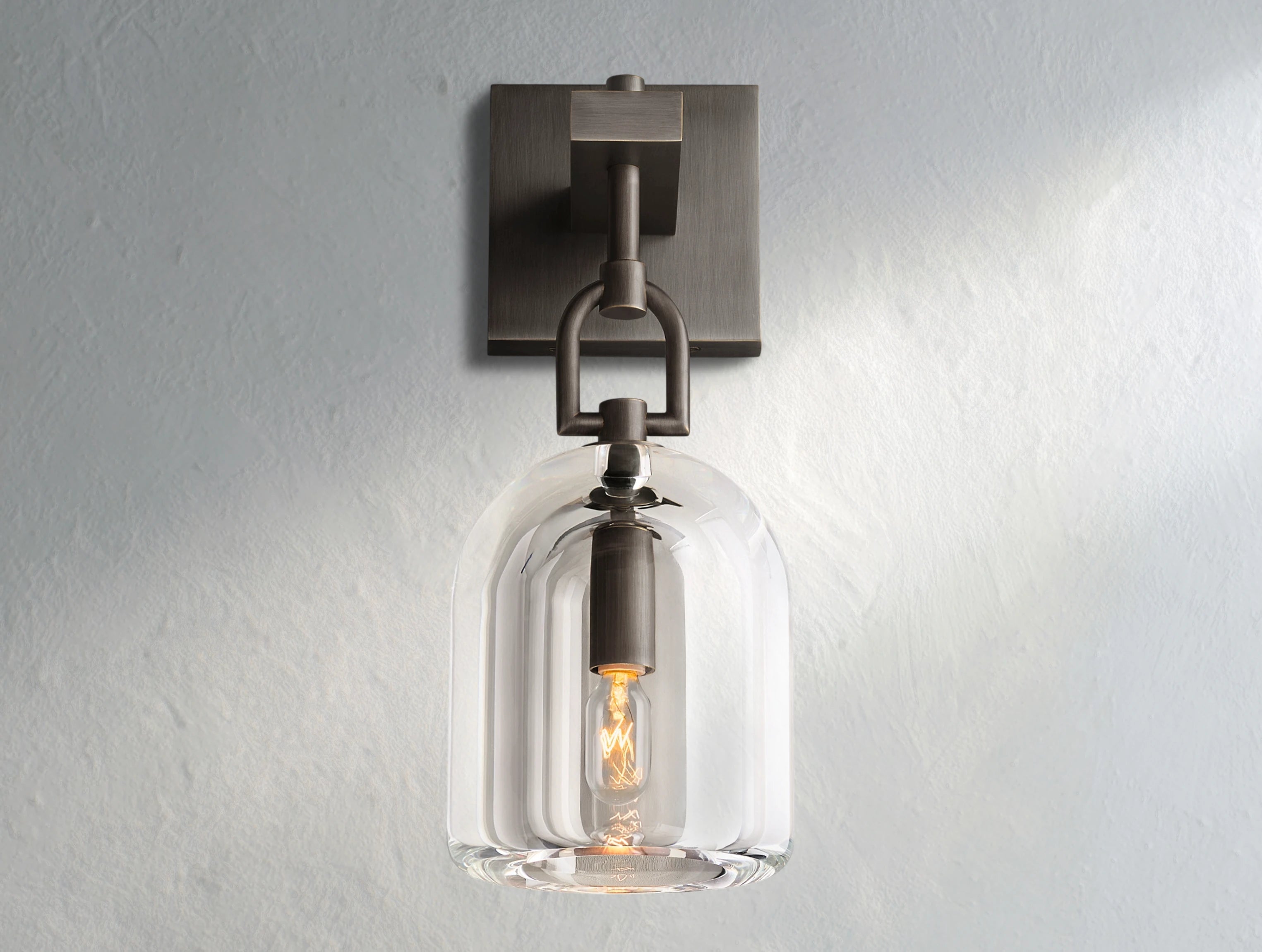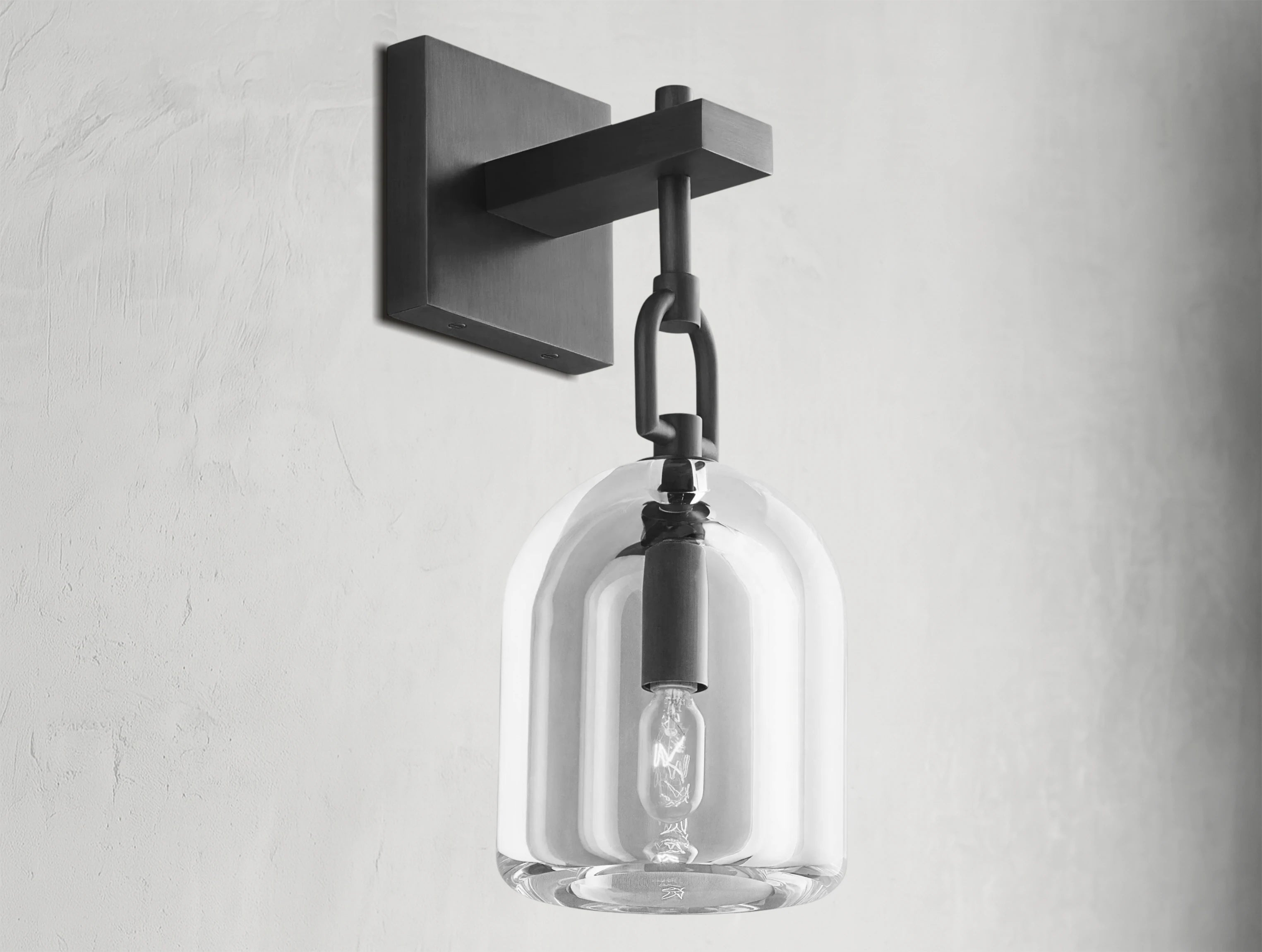 The Borger Cloche Sconce highlights the beauty of crystal through timeless craftsmanship. Each shade is cut from a monumental block of crystal, cooled, lathe-carved, and hand-polished to achieve exceptional clarity. Framed in solid brass, this wall fixture creates a refined glow, perfect for hallways, bedrooms, or intimate living spaces.