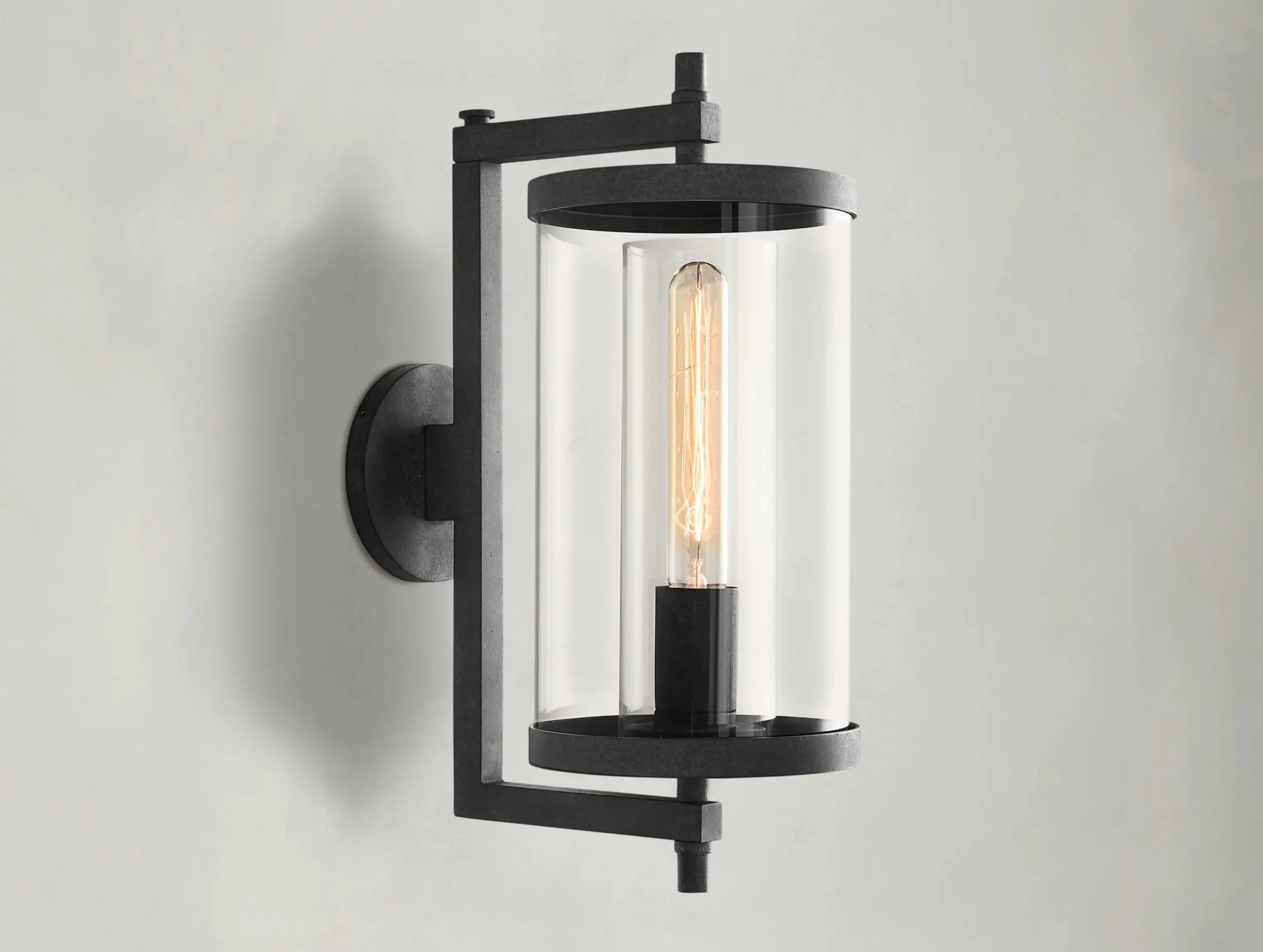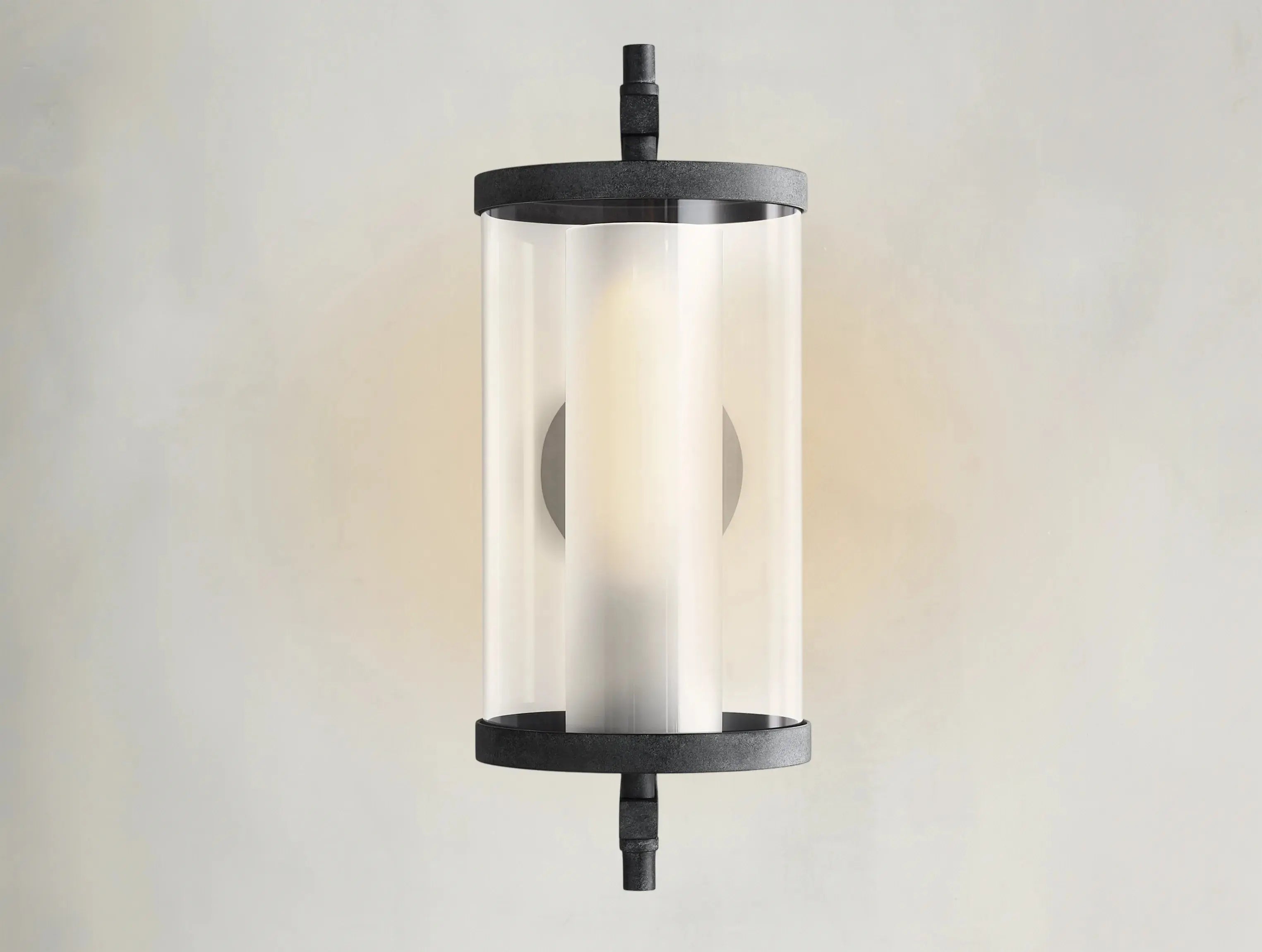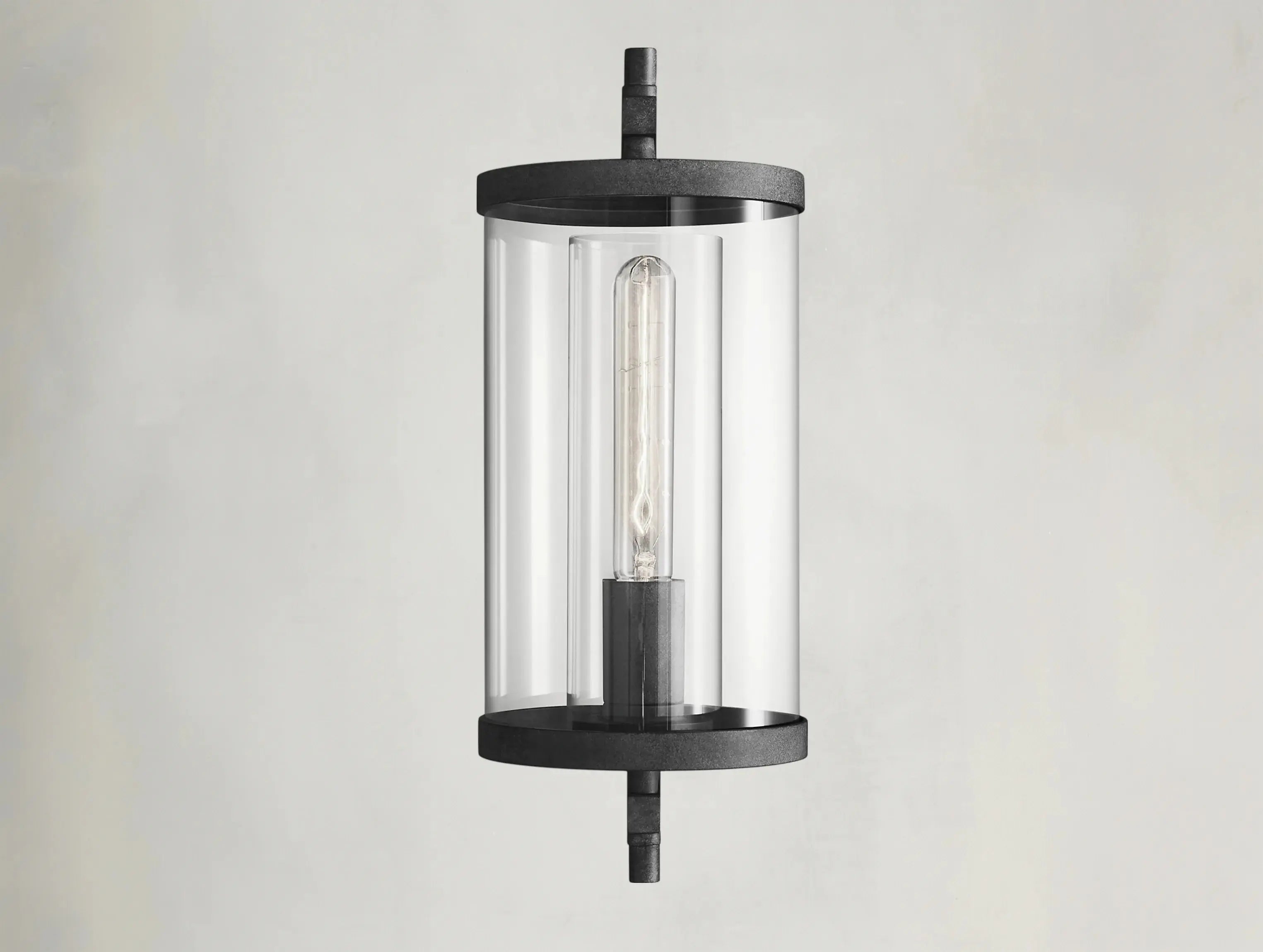 Geometry meets grace. The Evaux Round Sconce by Ardenel presents a delicate interplay of circles and lines, floating light within a crystal-clear glass cylinder. Handcrafted from solid and sand-cast brass, the sconce evokes the form of a suspended pillar candle—its bulb faintly glowing inside a clear or frosted inner shade. Mounted on a refined crossbar, Evaux brings architectural clarity to both indoor and outdoor environments.