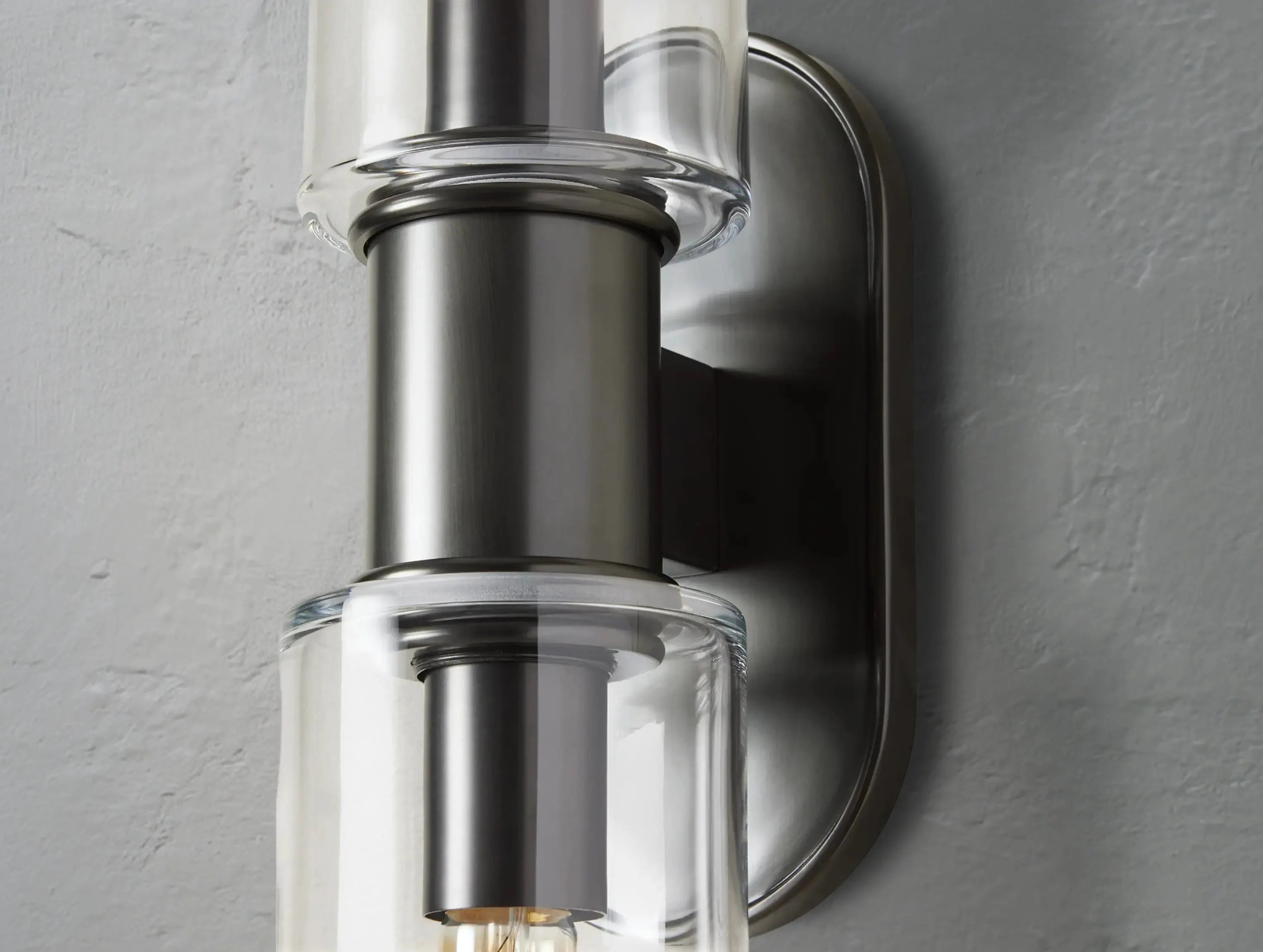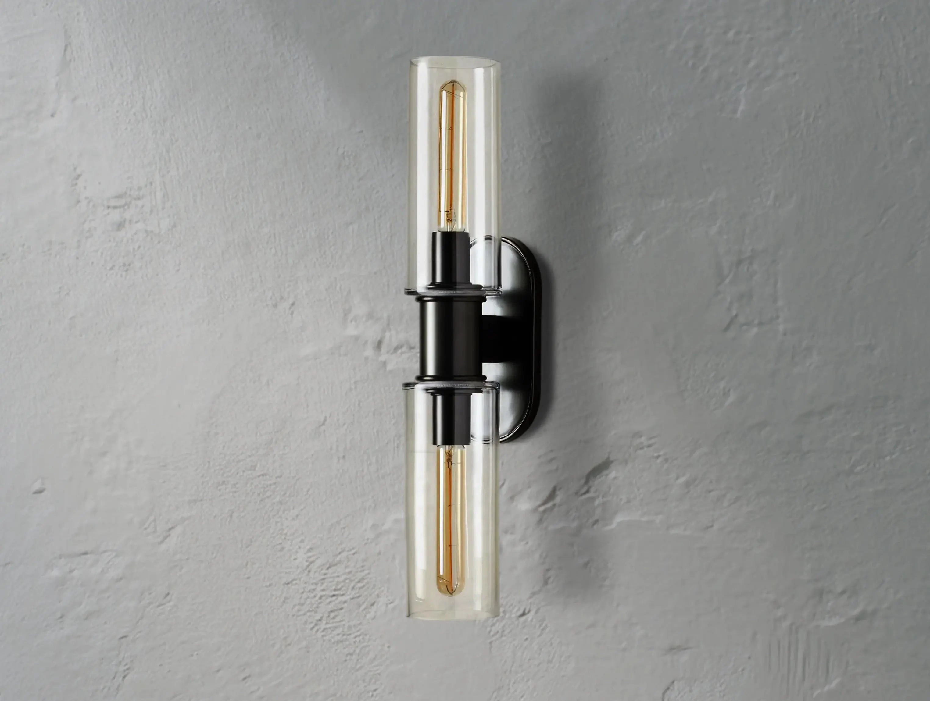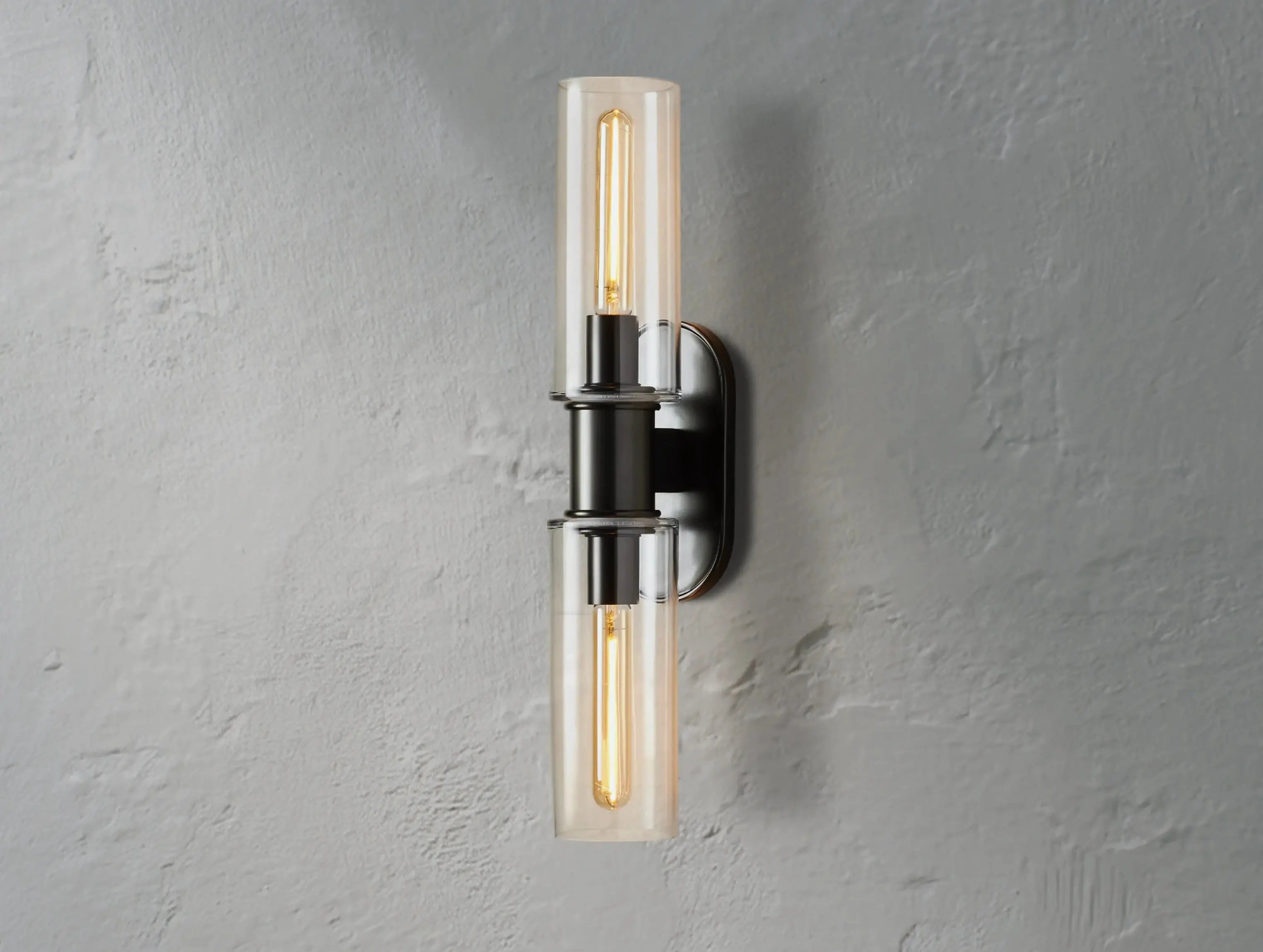 Refined and versatile, the Horlin Double Sconce in Clear features arched metal detailing and transparent glass cloches that showcase your bulbs with clarity. Mount it vertically or horizontally for a tailored look in bathrooms, vanities, or hallways.
